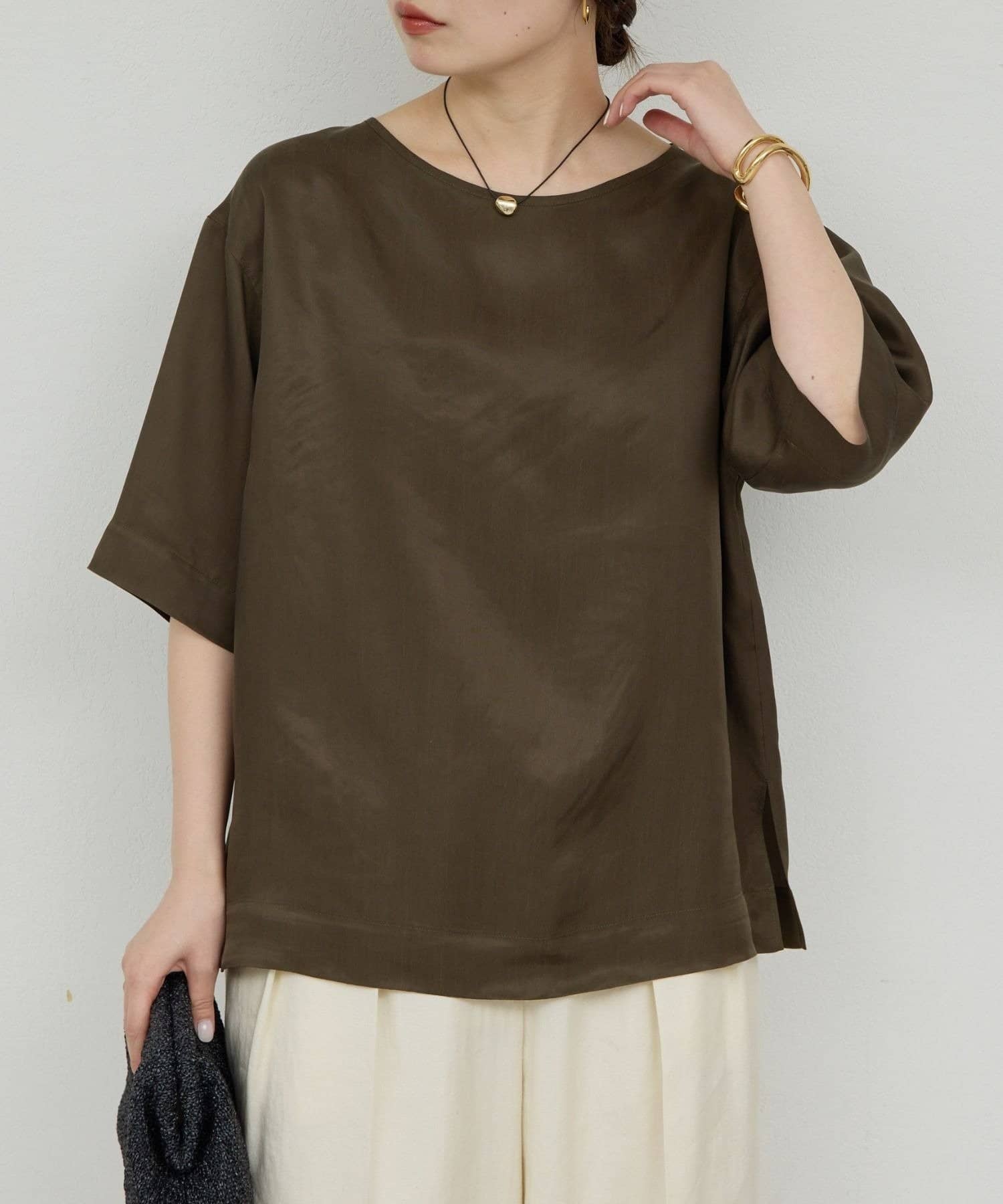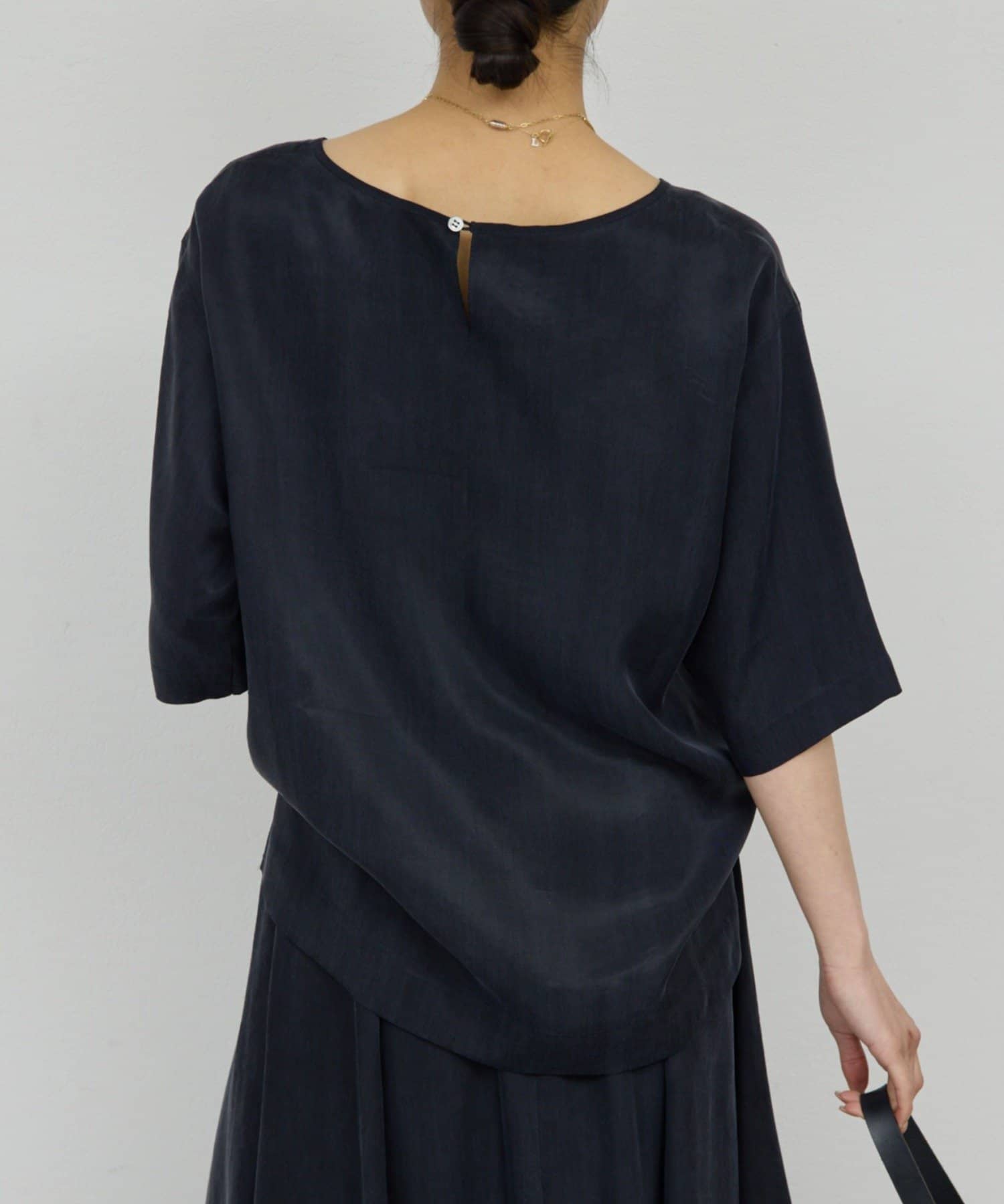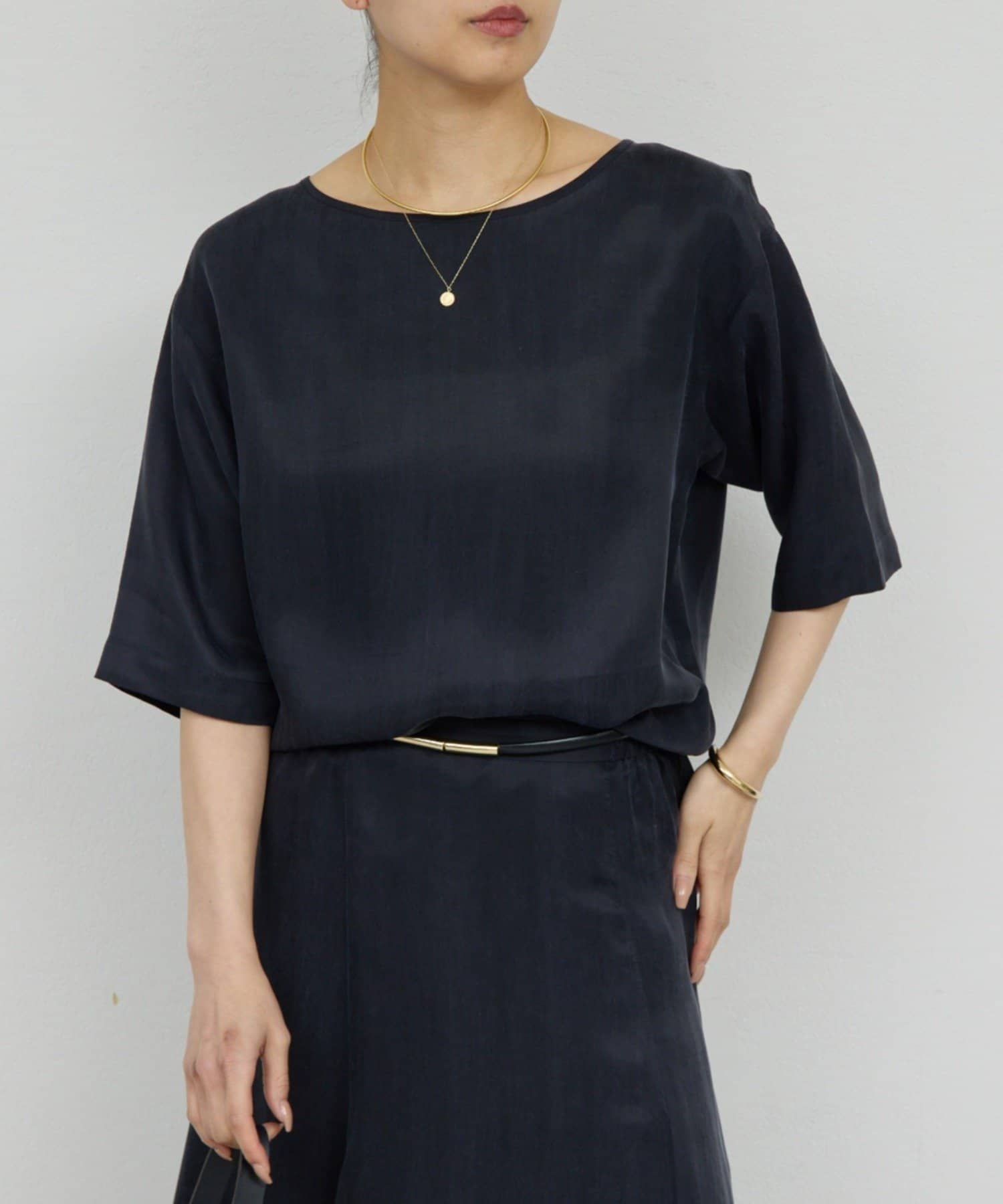 ●上品なツヤと落ち感を備えたキュプラ素材のブラウス。