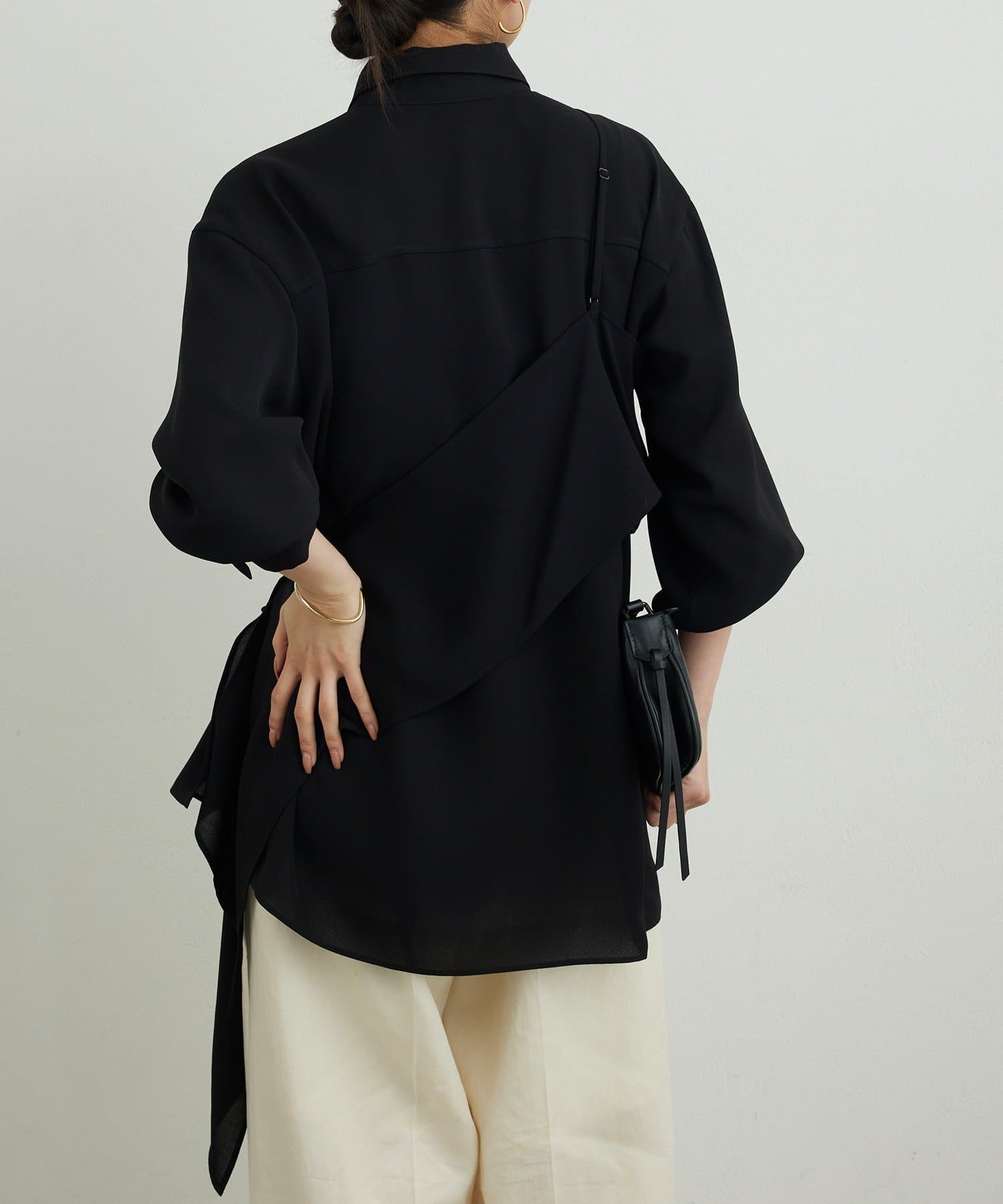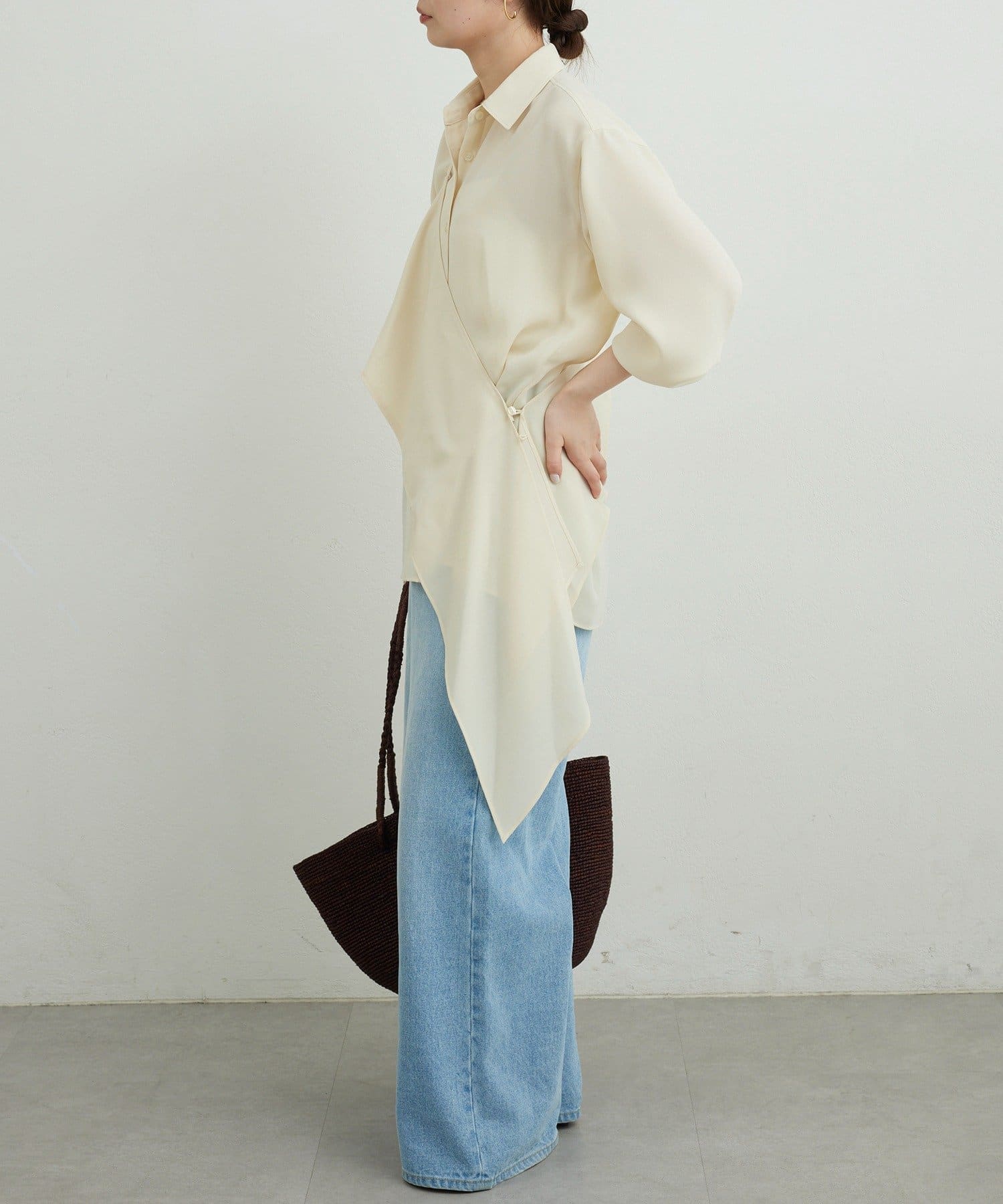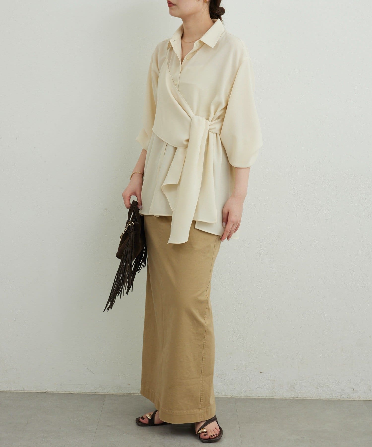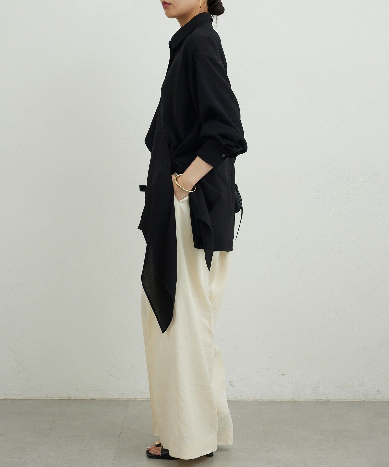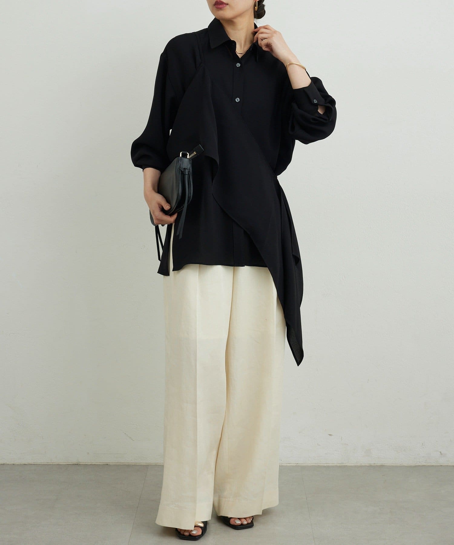 ●女性らしい優美な印象を与える、落ち感あるシルエット。