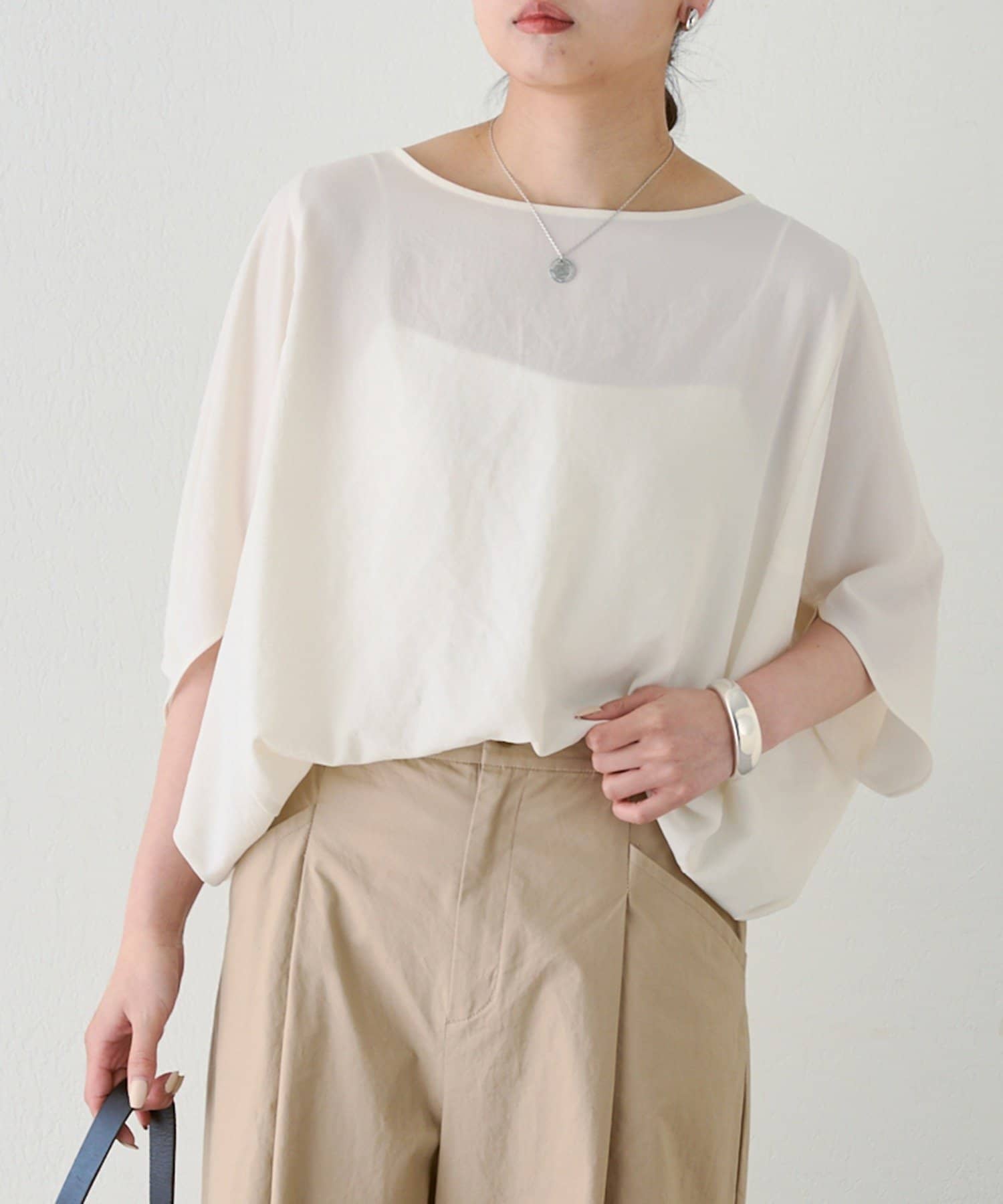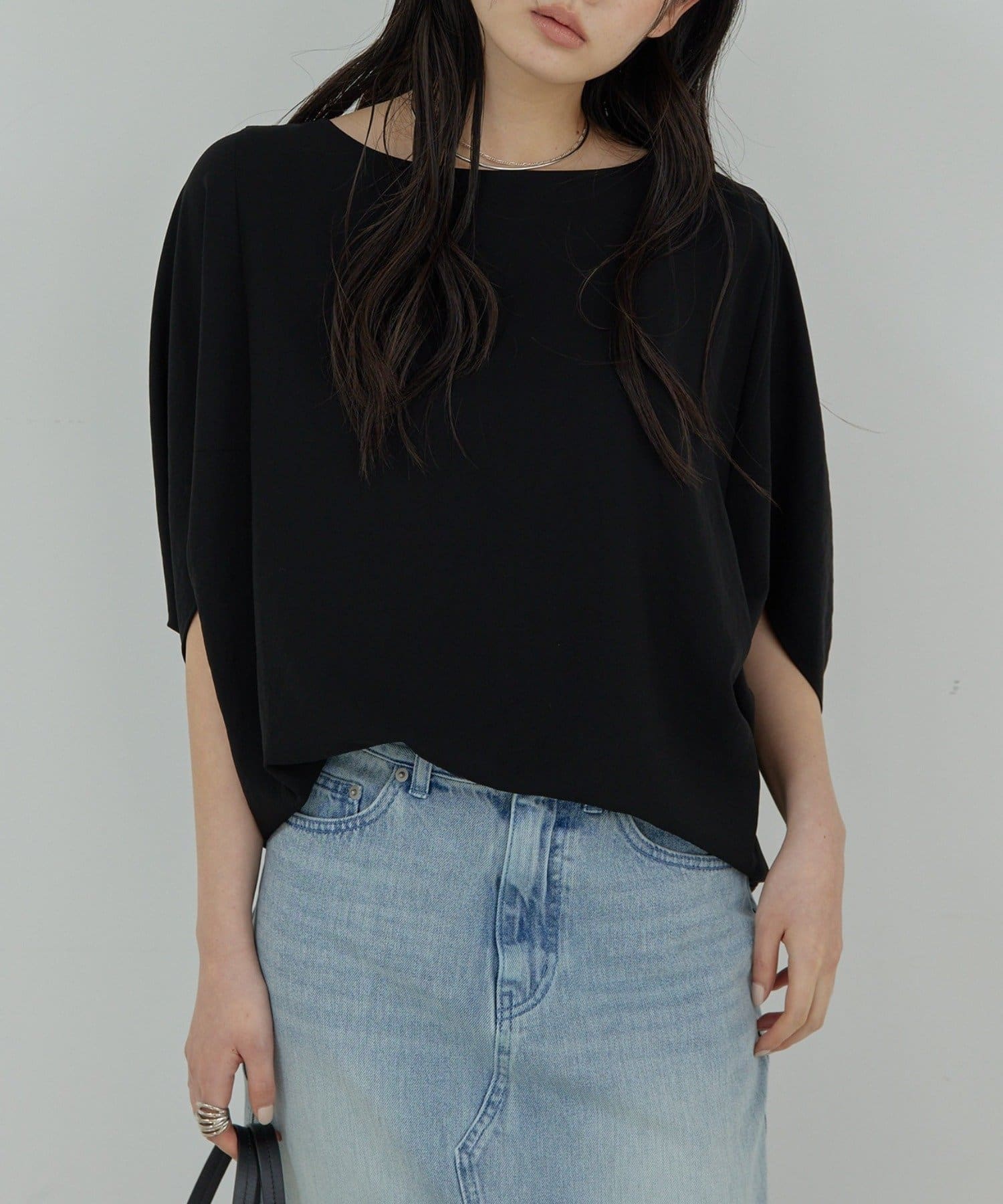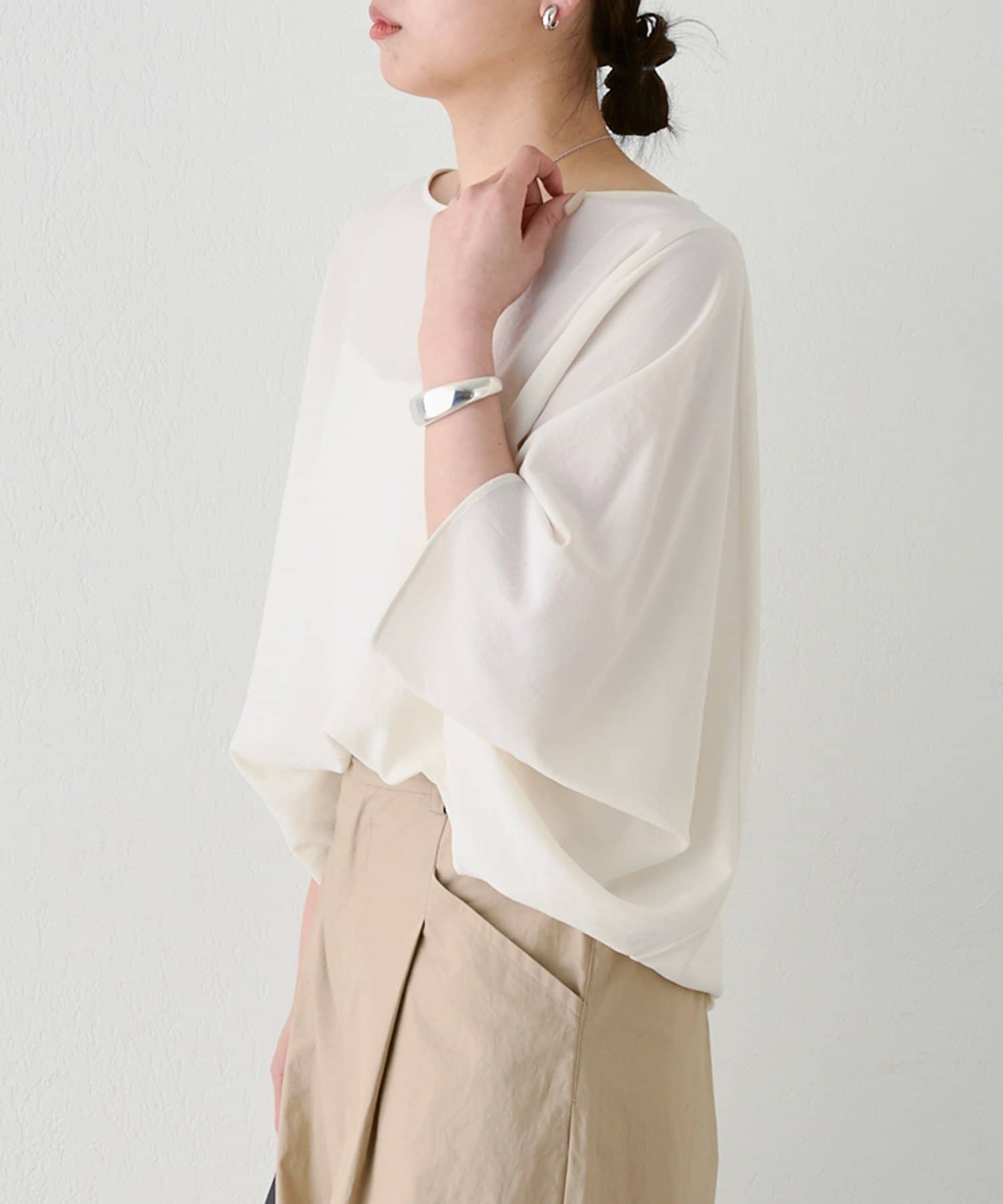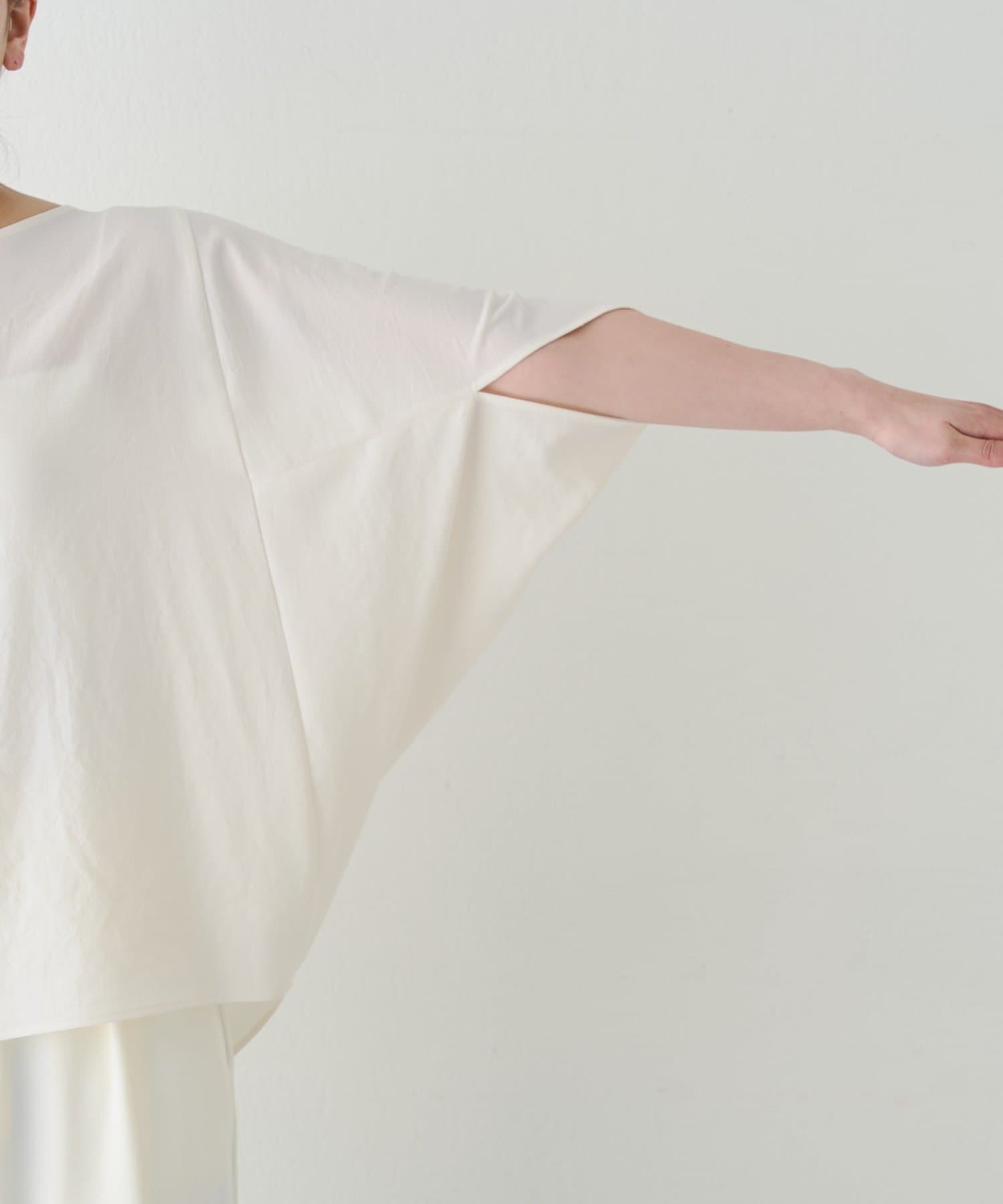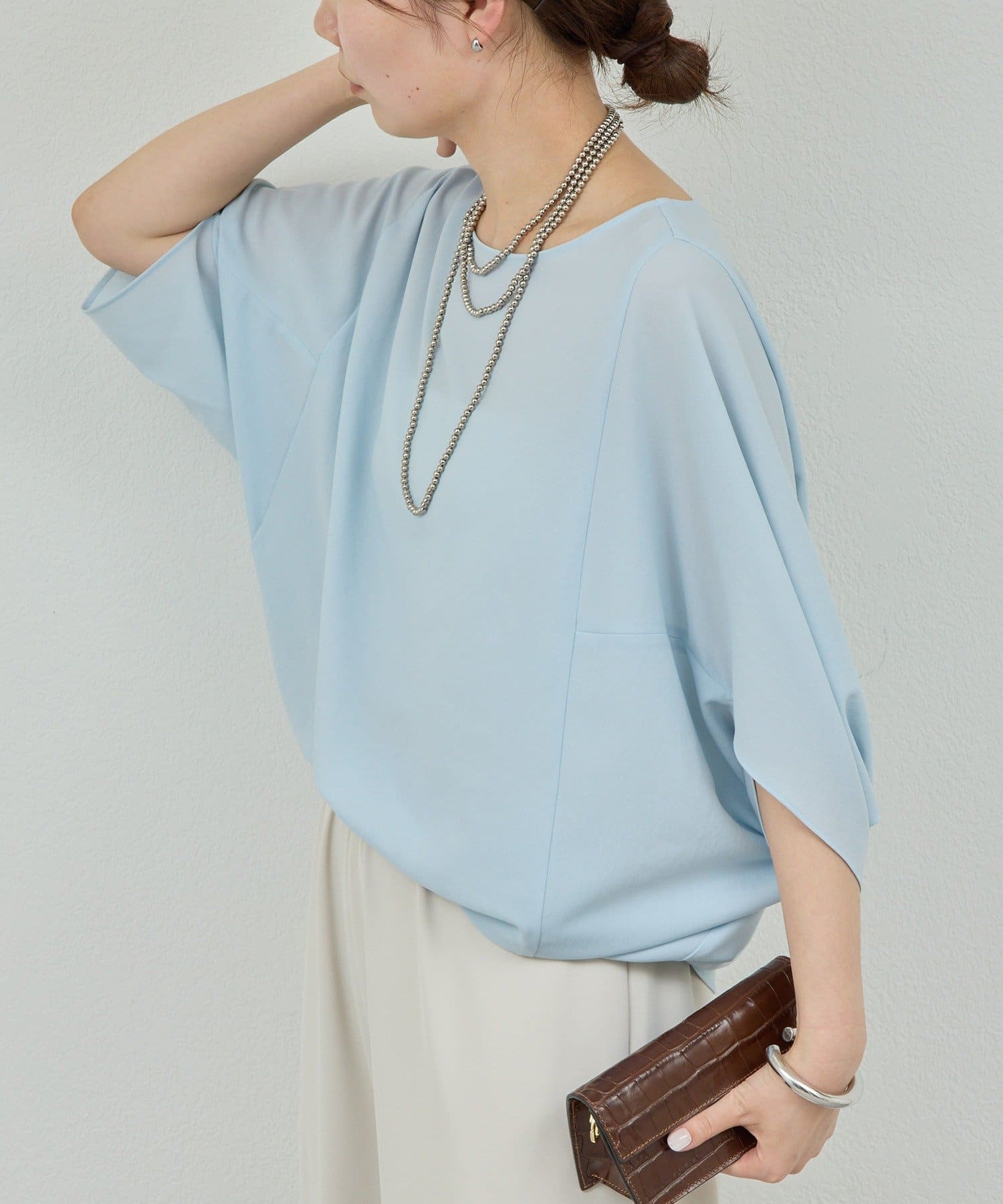 ●自然と二の腕をカバーする五分丈のドルマンスリーブ。