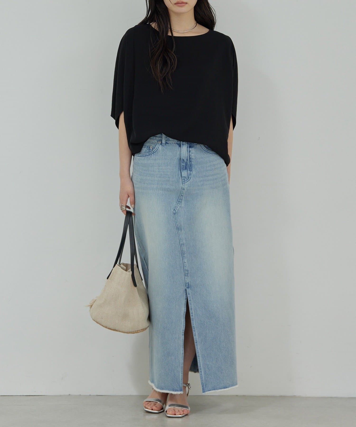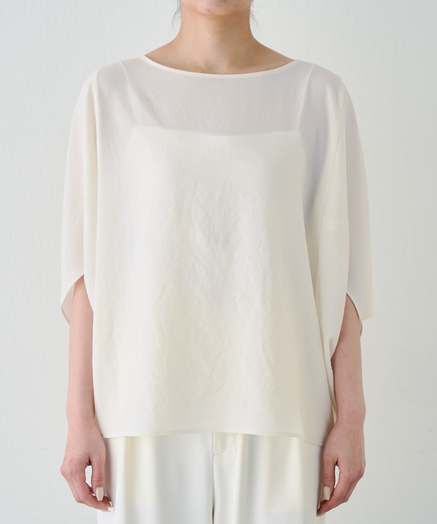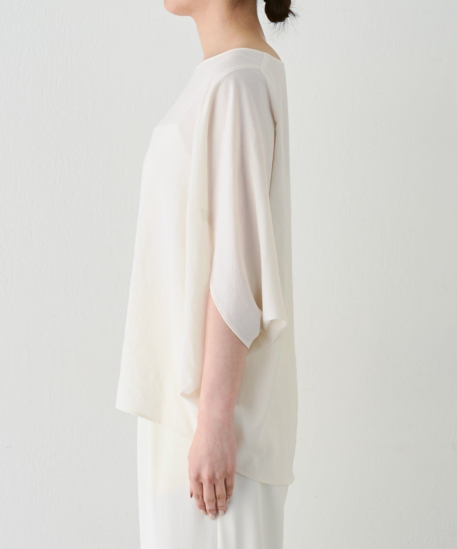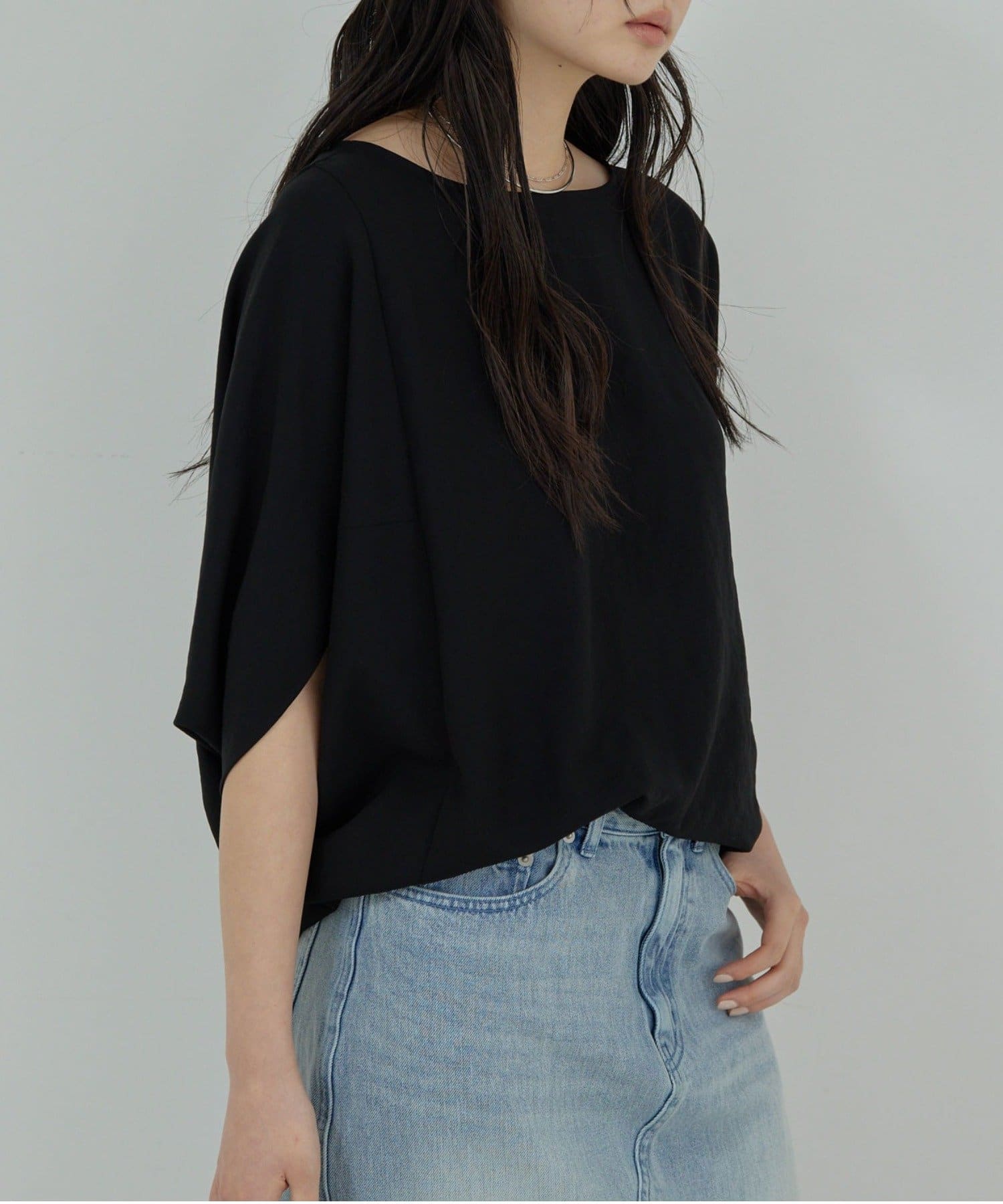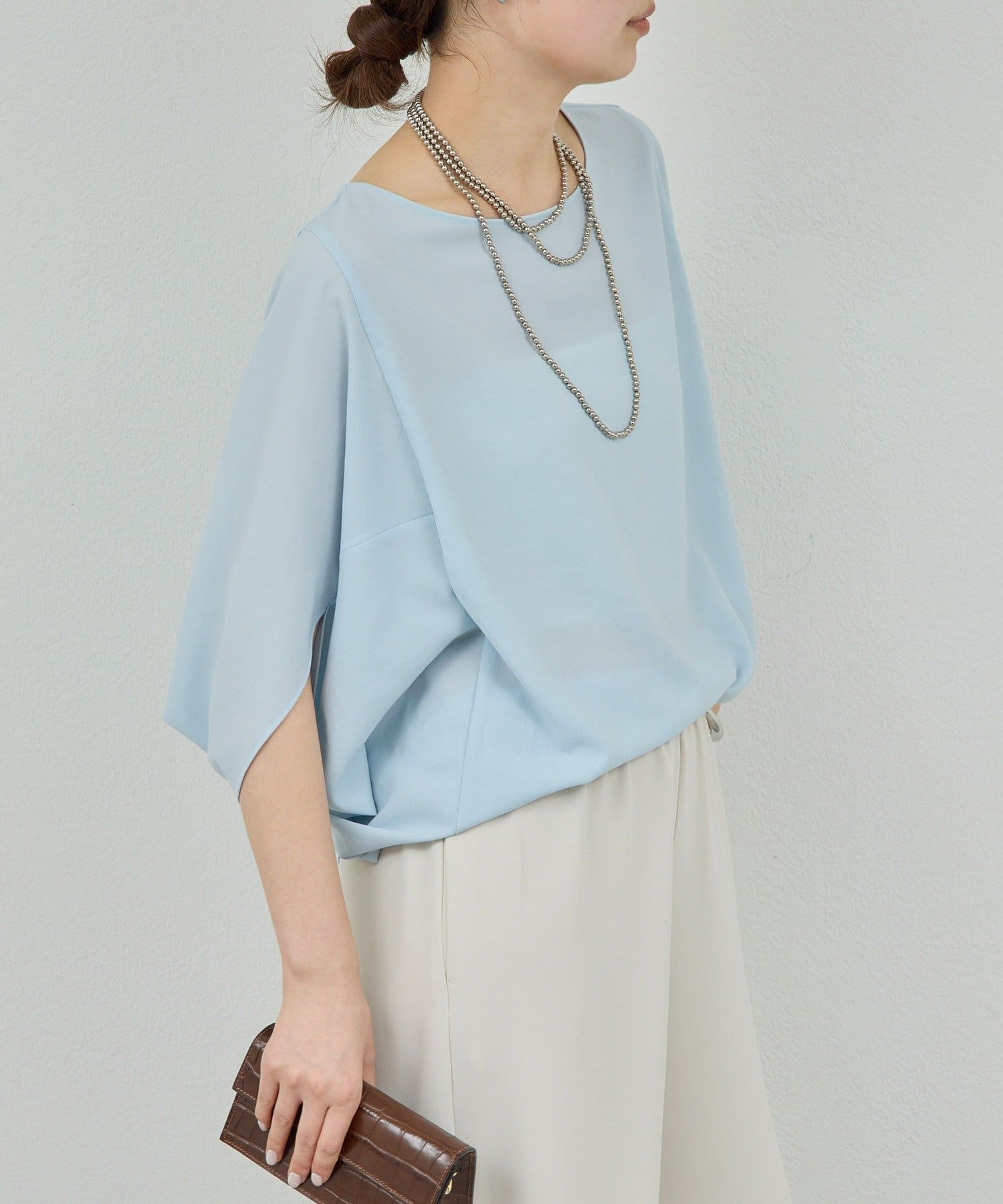 ●自然と二の腕をカバーする五分丈のドルマンスリーブ。
