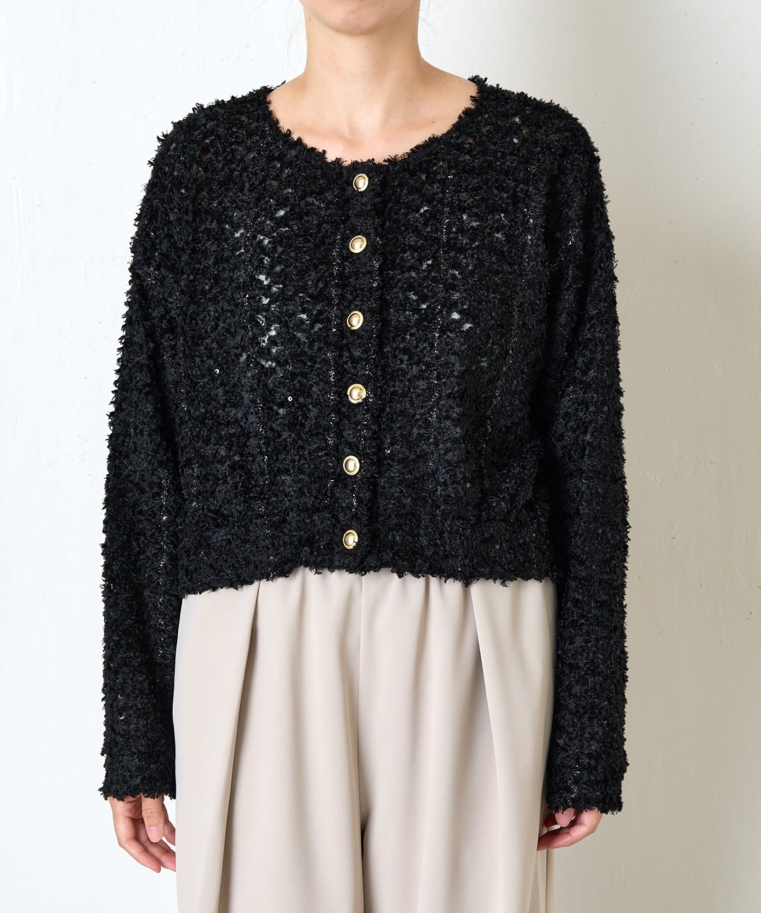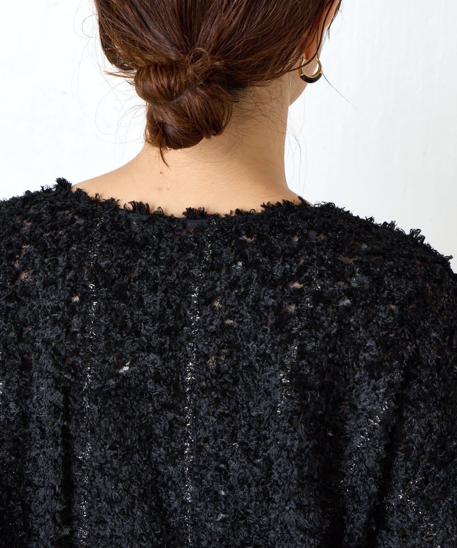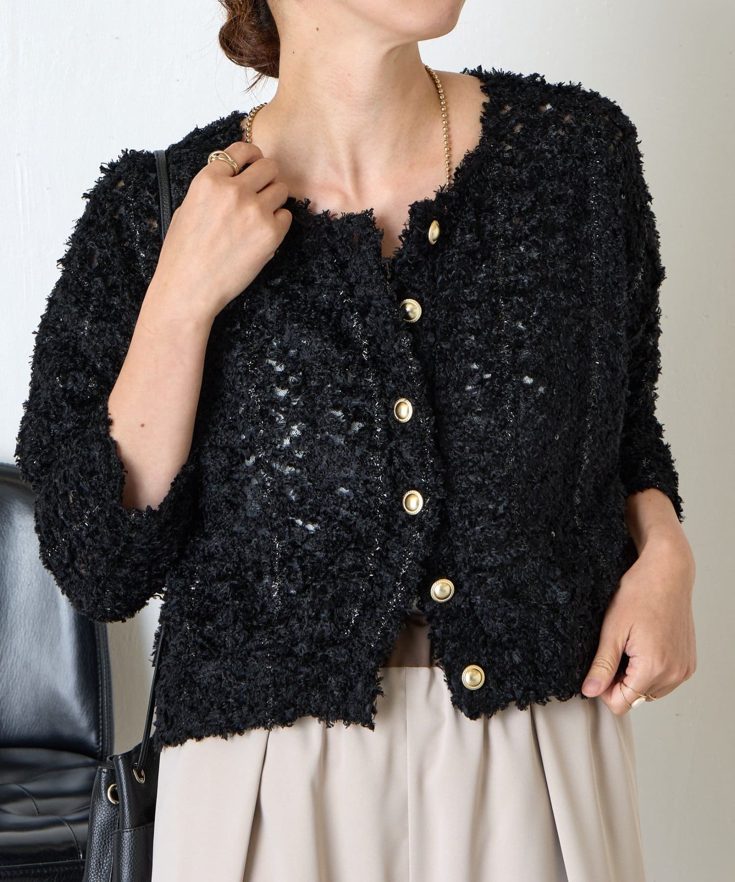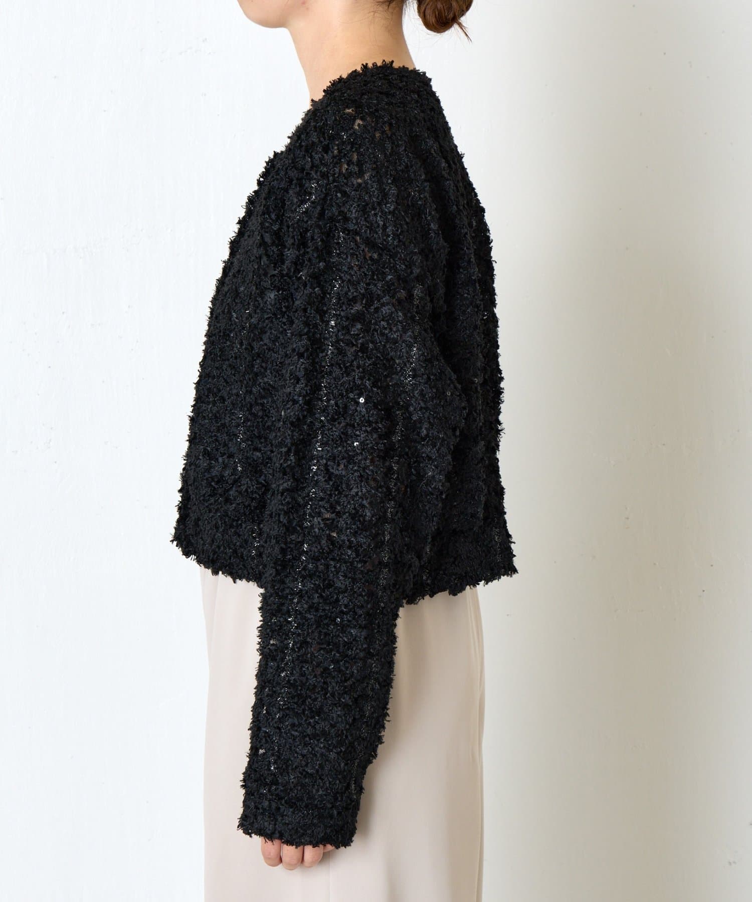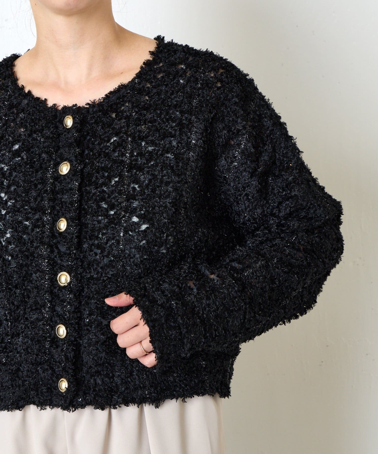 ・素材感のあるレース刺繍が華やかなジャケット。