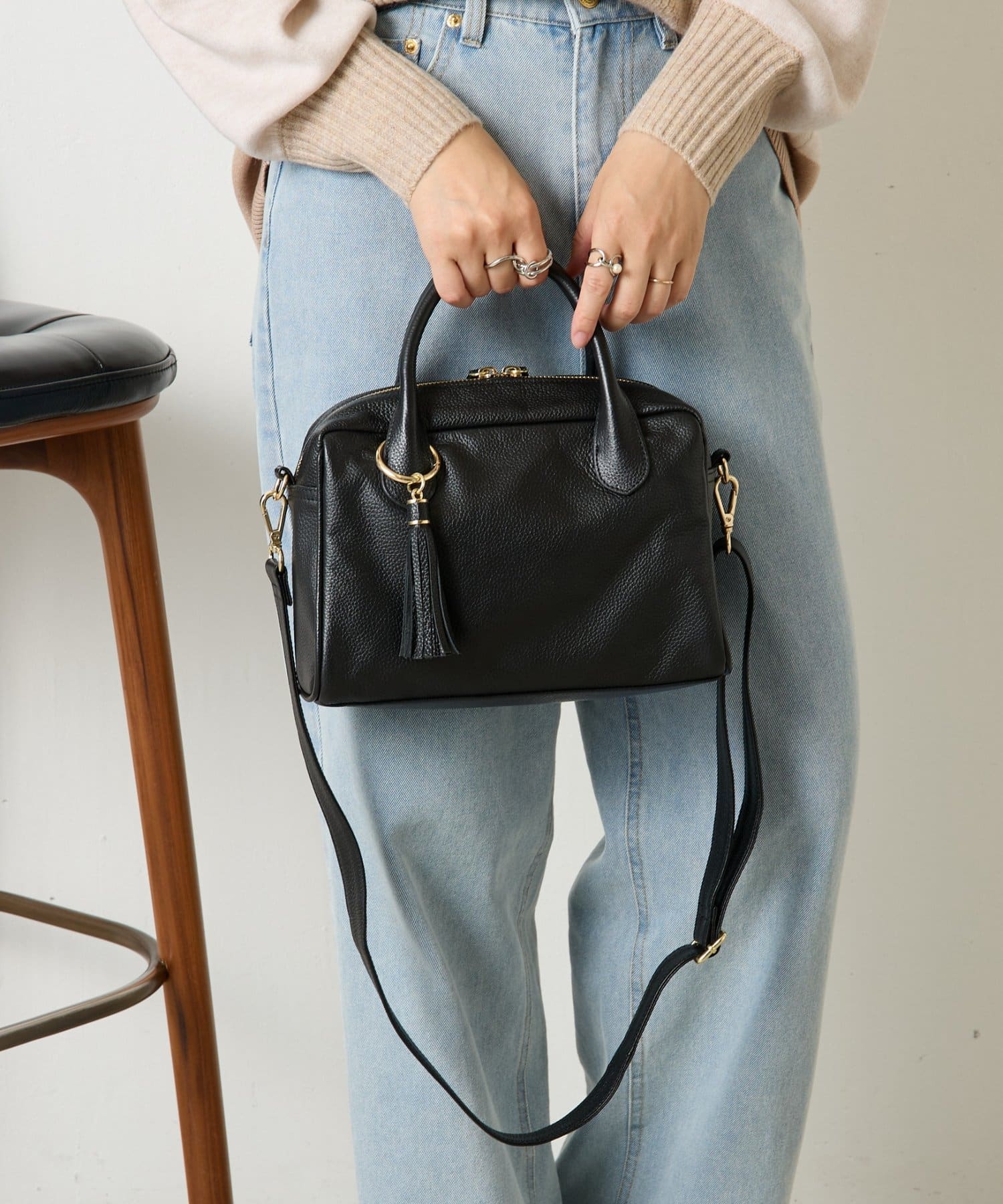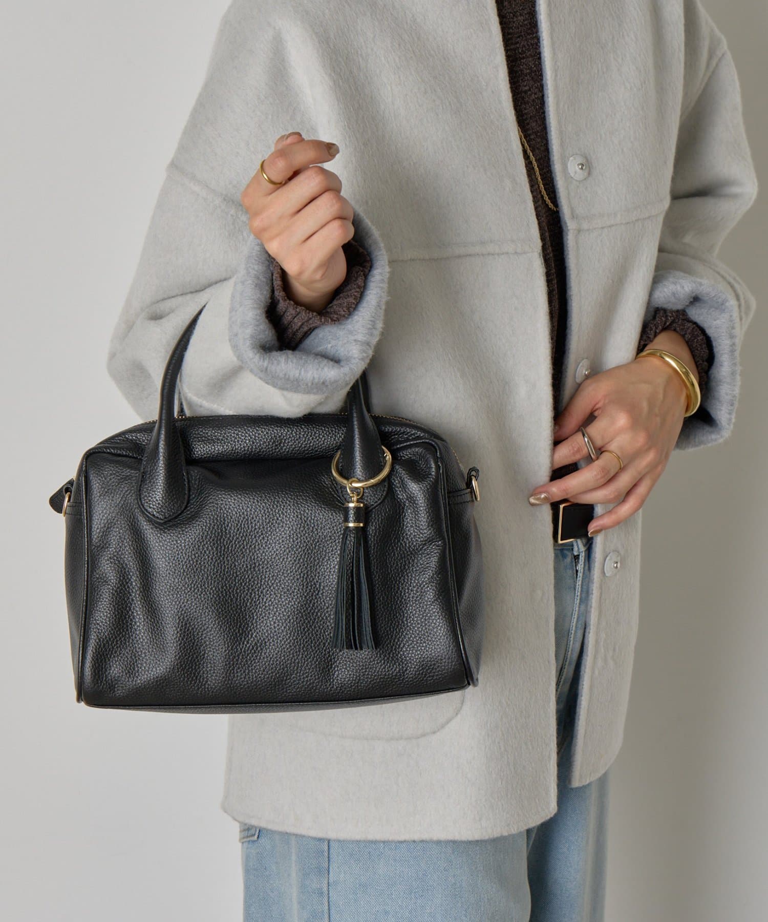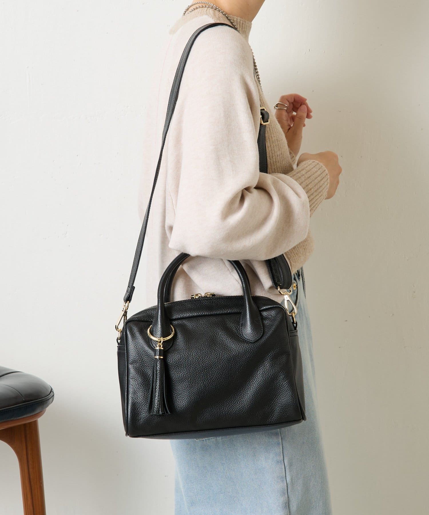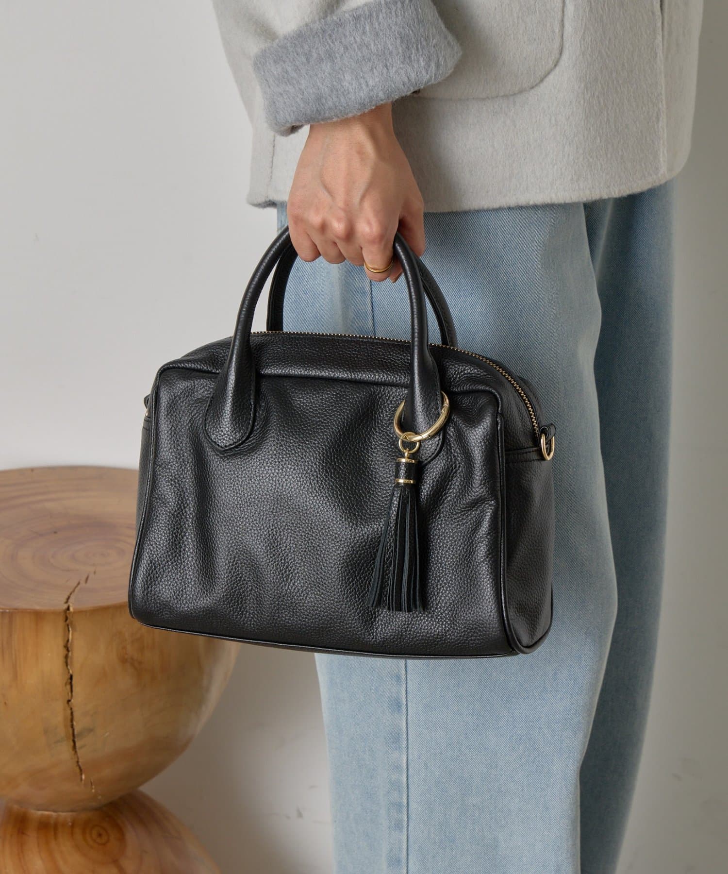 • Jena espace merveilleux(ジェナ エスパスメルヴェイユ) 【本革/軽量400g】タッセル本革ボストンバッグ
