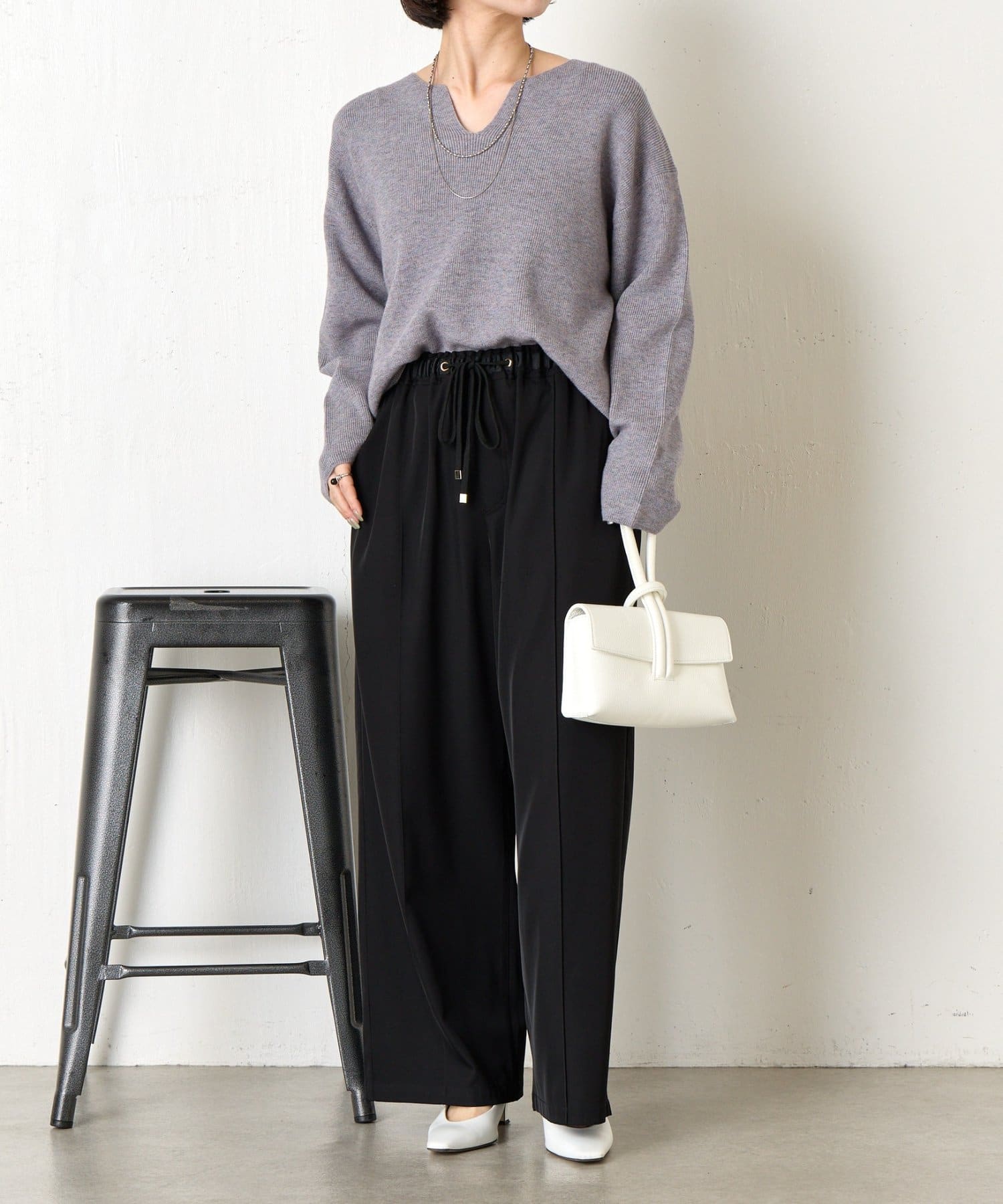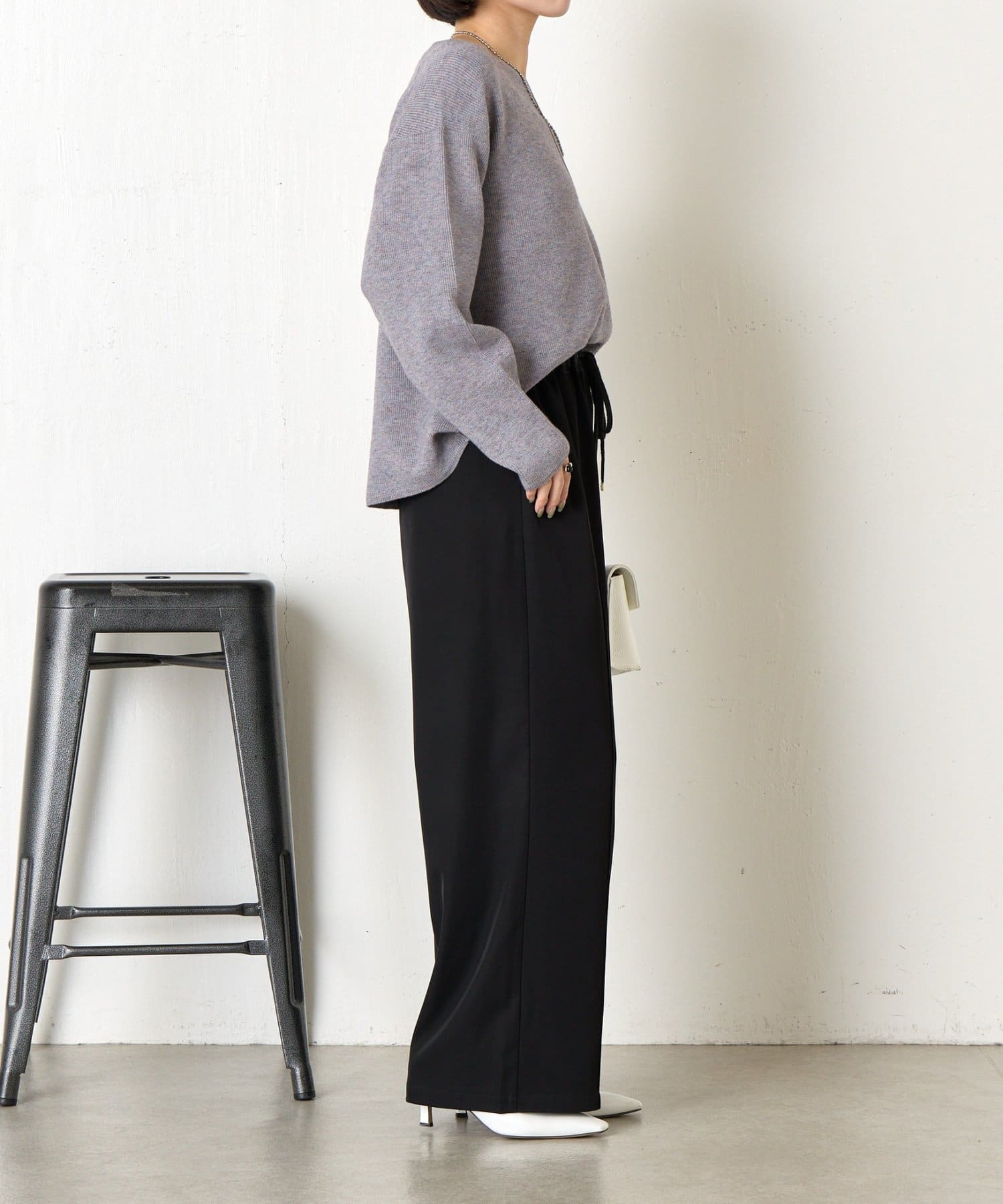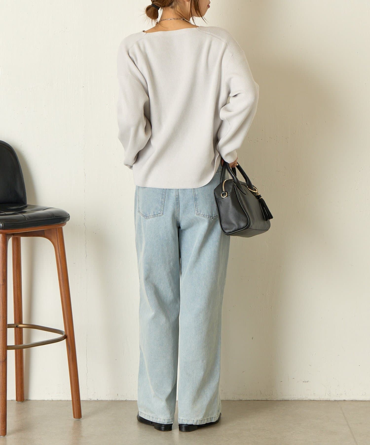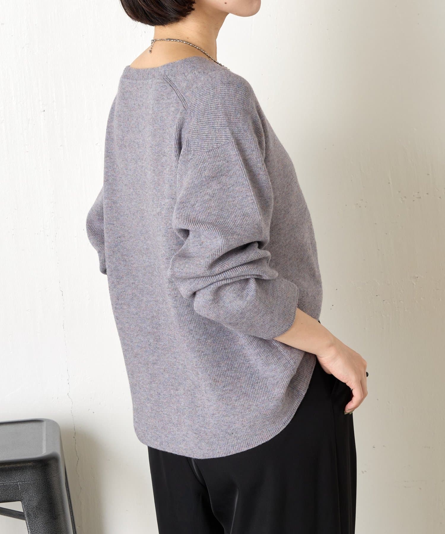 ・絶妙な厚さの生地感と、首元のキーネックデザインががすっきり見えの秘訣!