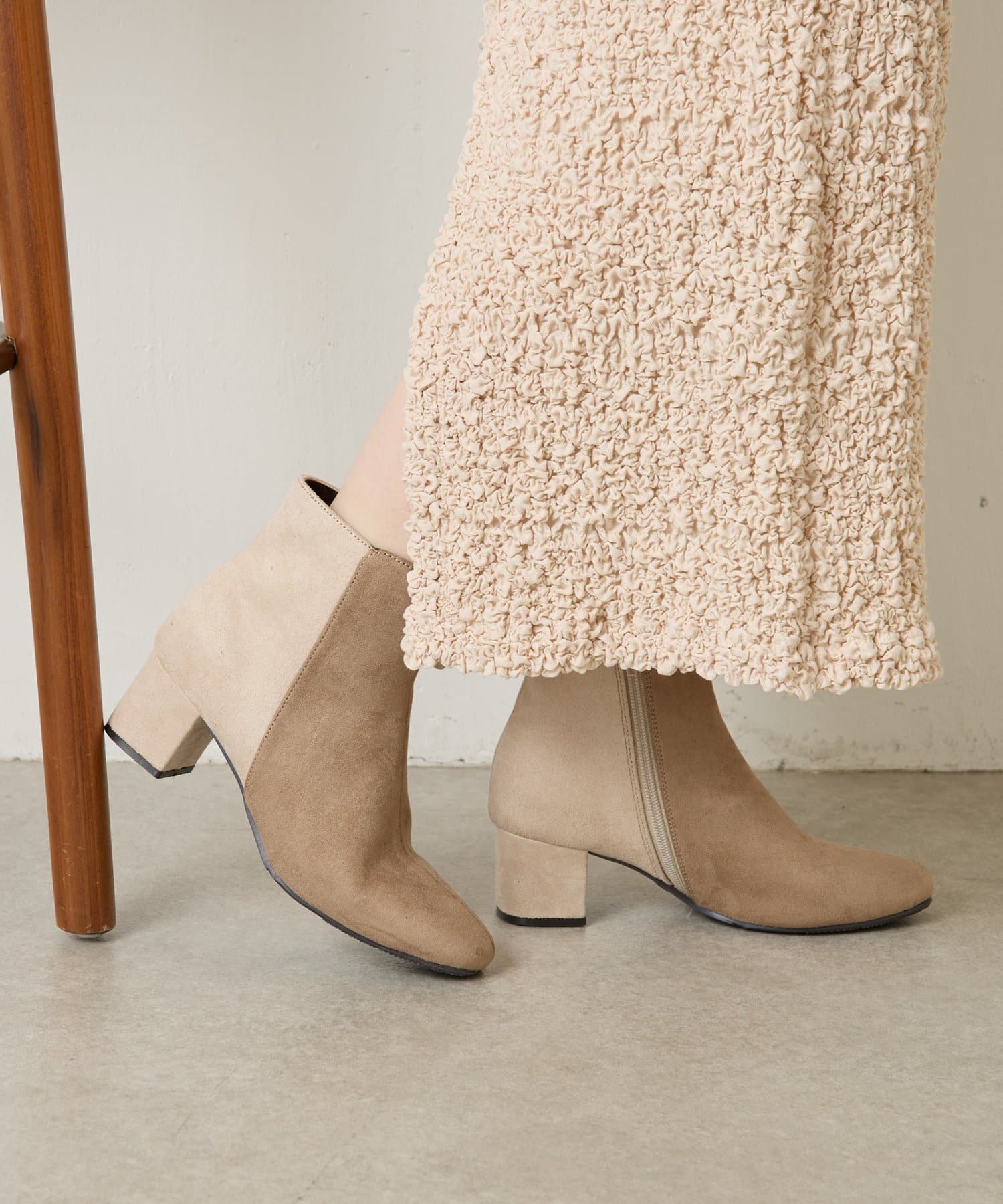 ・スエード調の生地でさりげないバイカラーで個性が光る、とっておきの1足です。