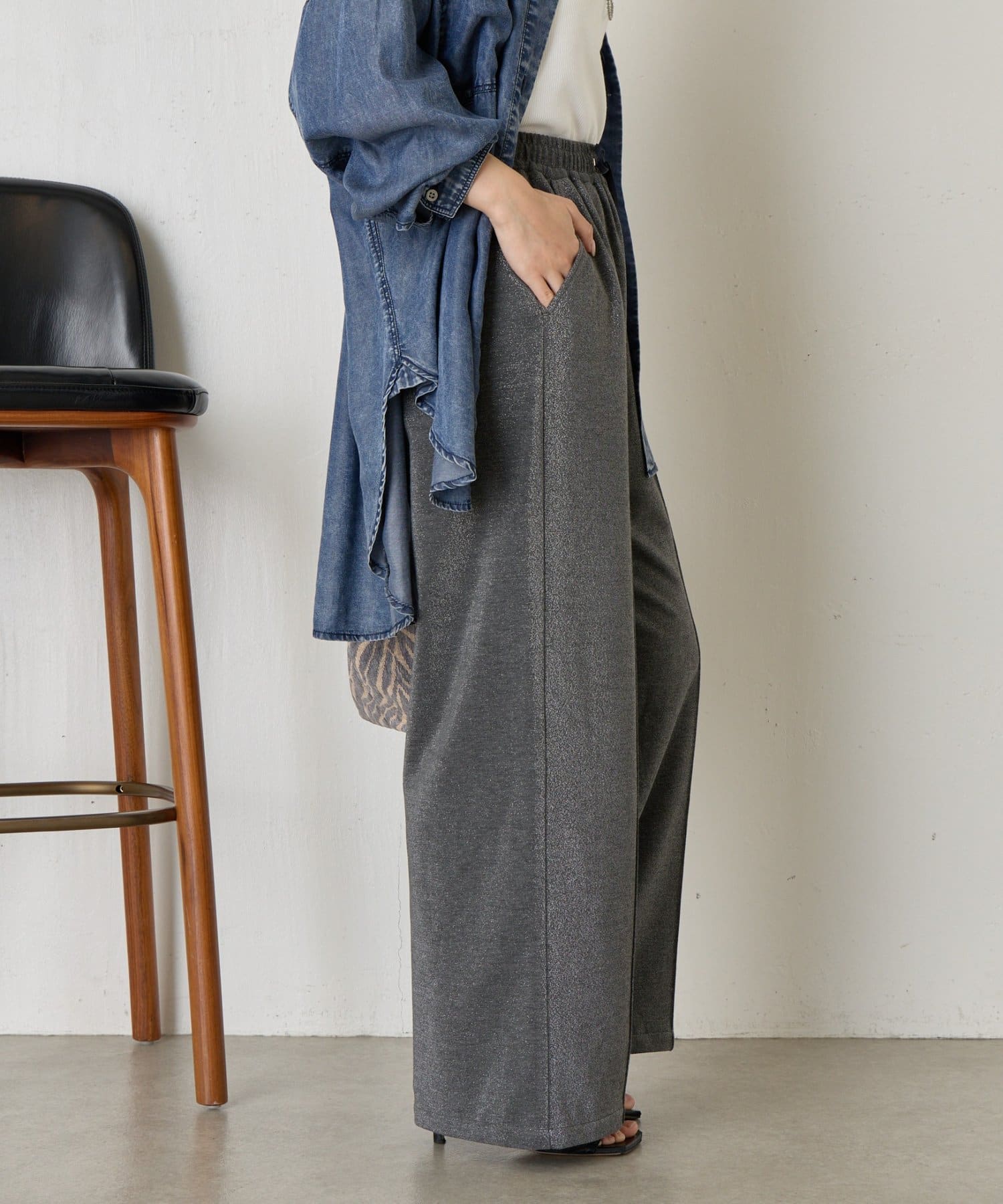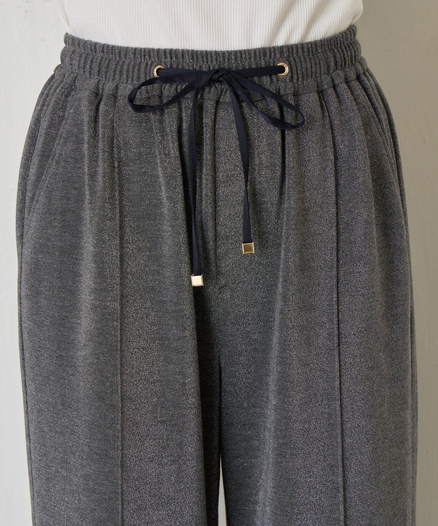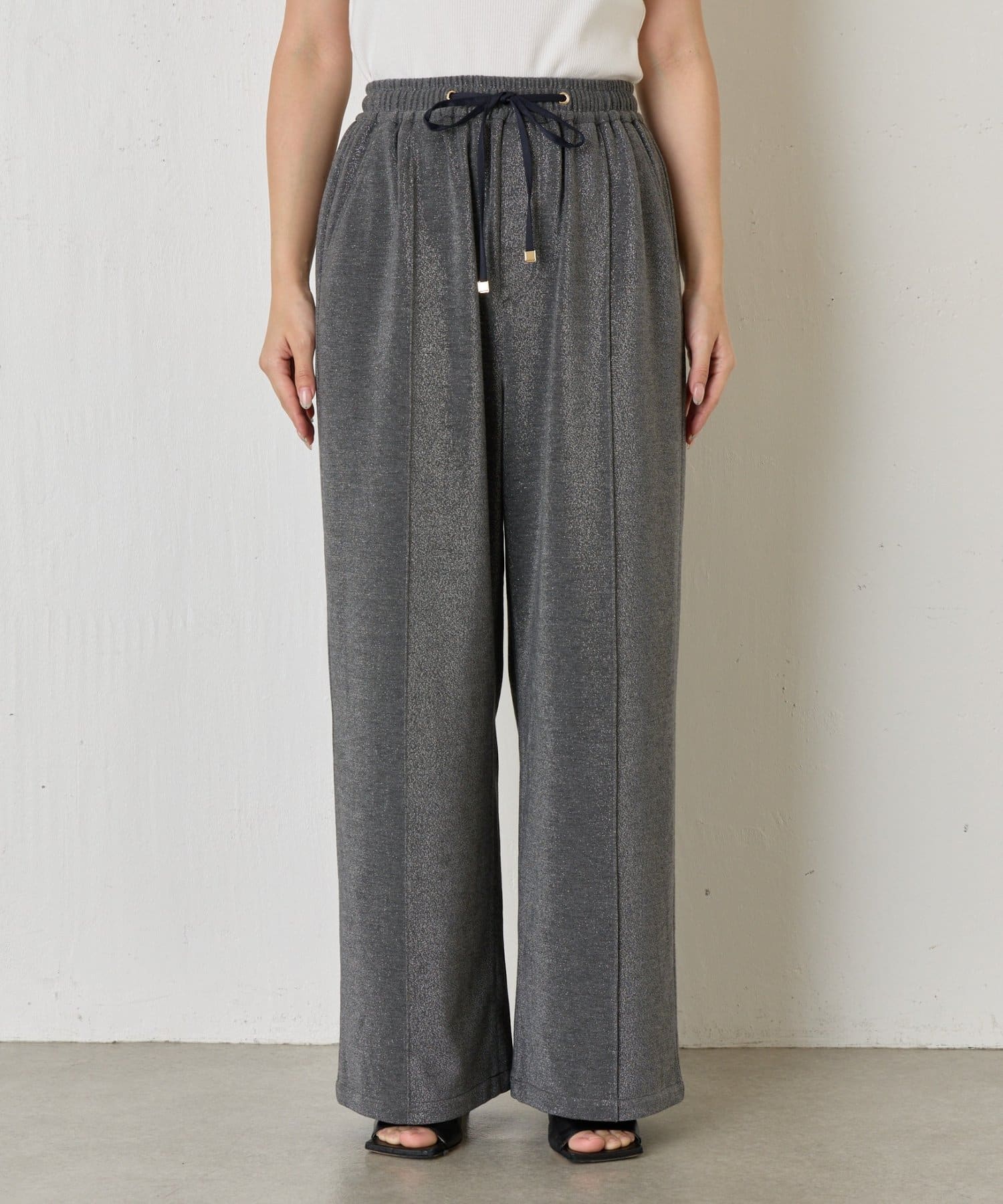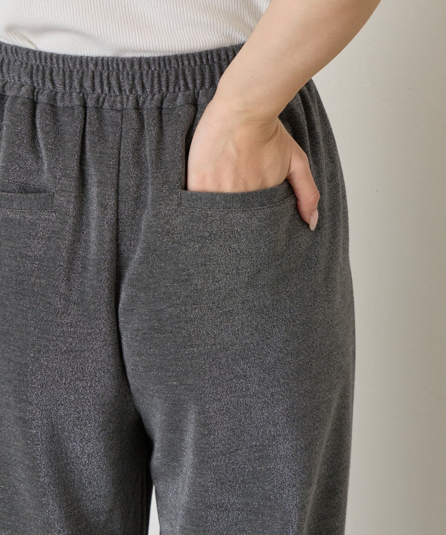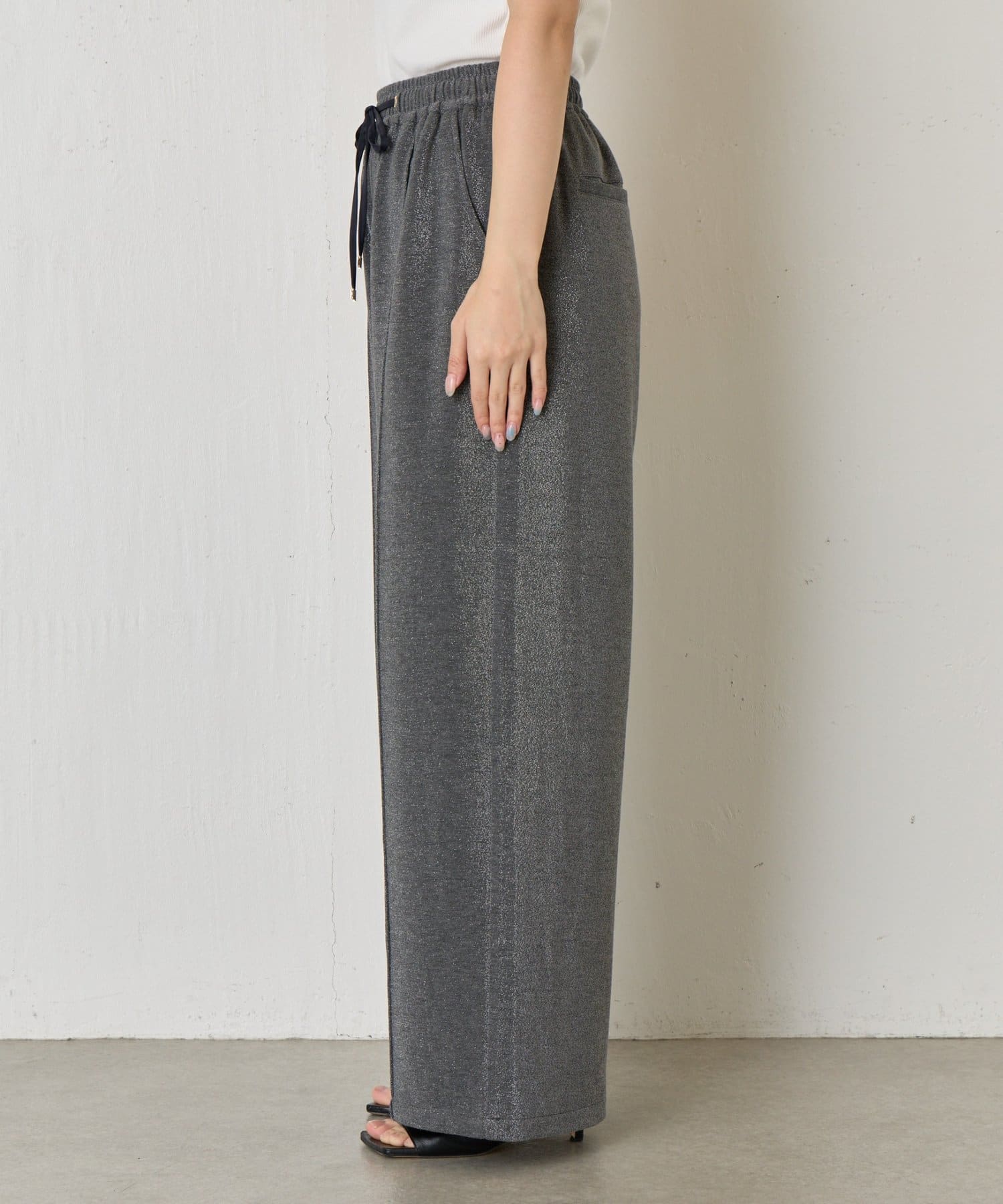 ・細かいラメが生地に織り込まれたこなれ感のある大人のあリラックスパンツ。