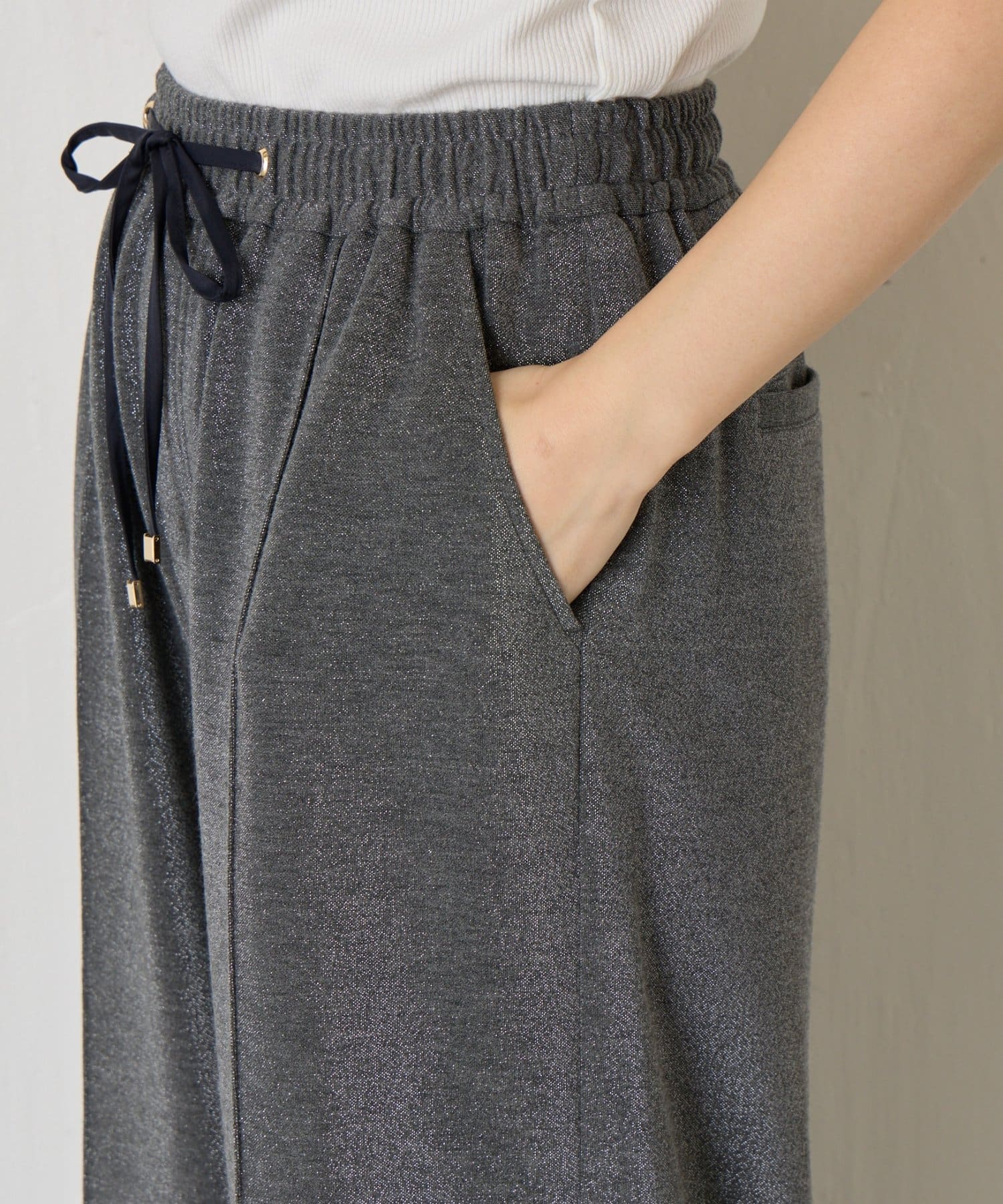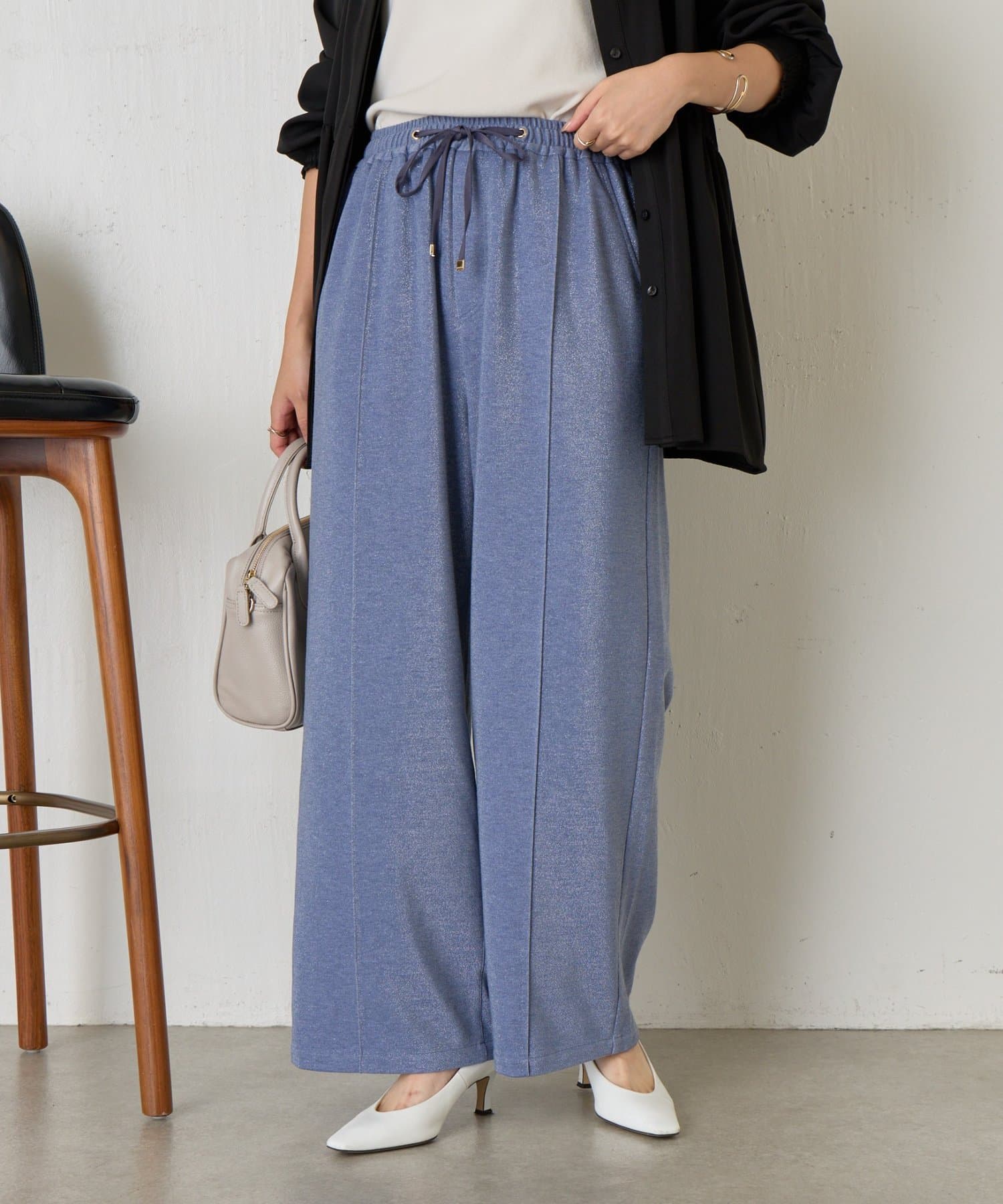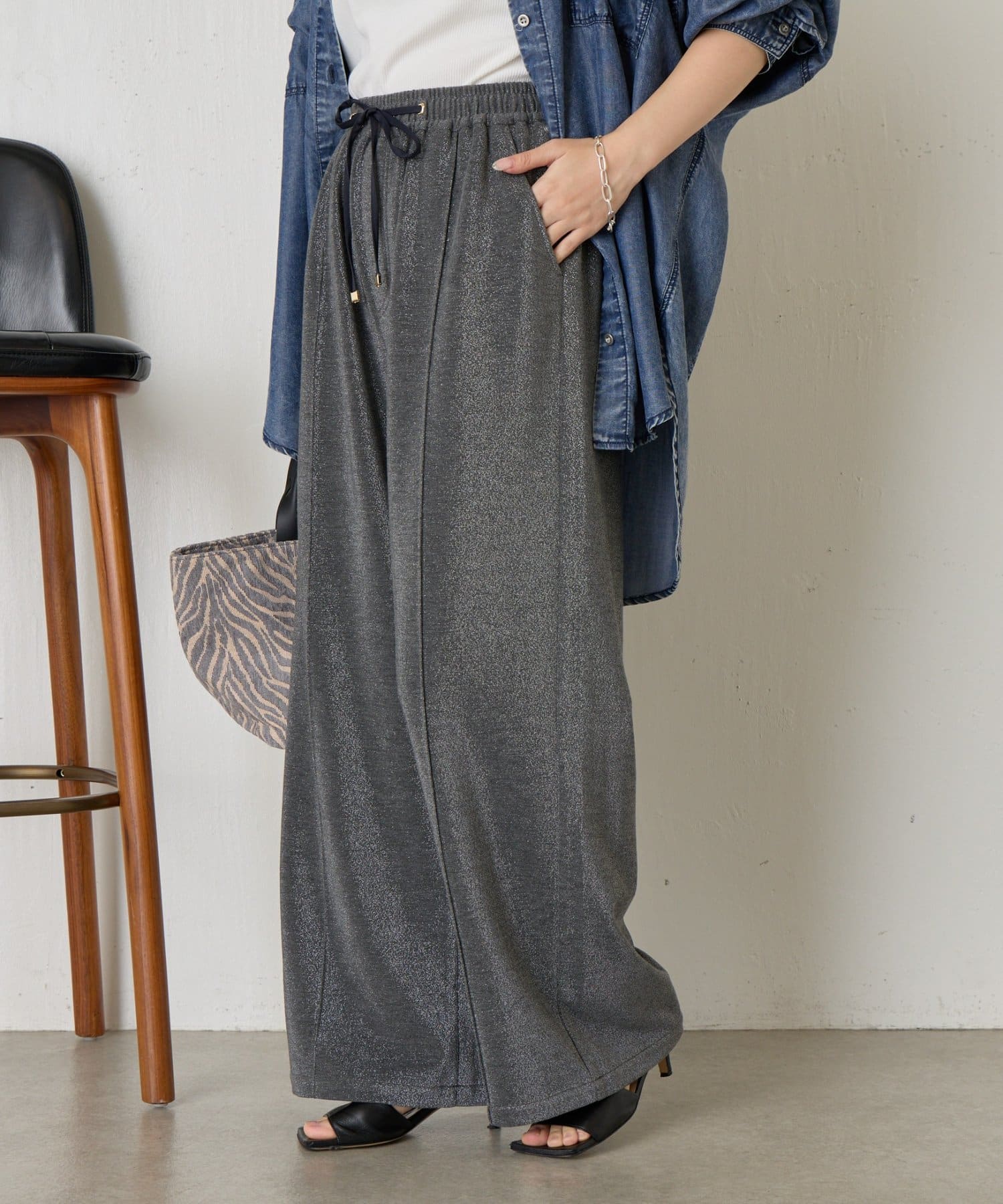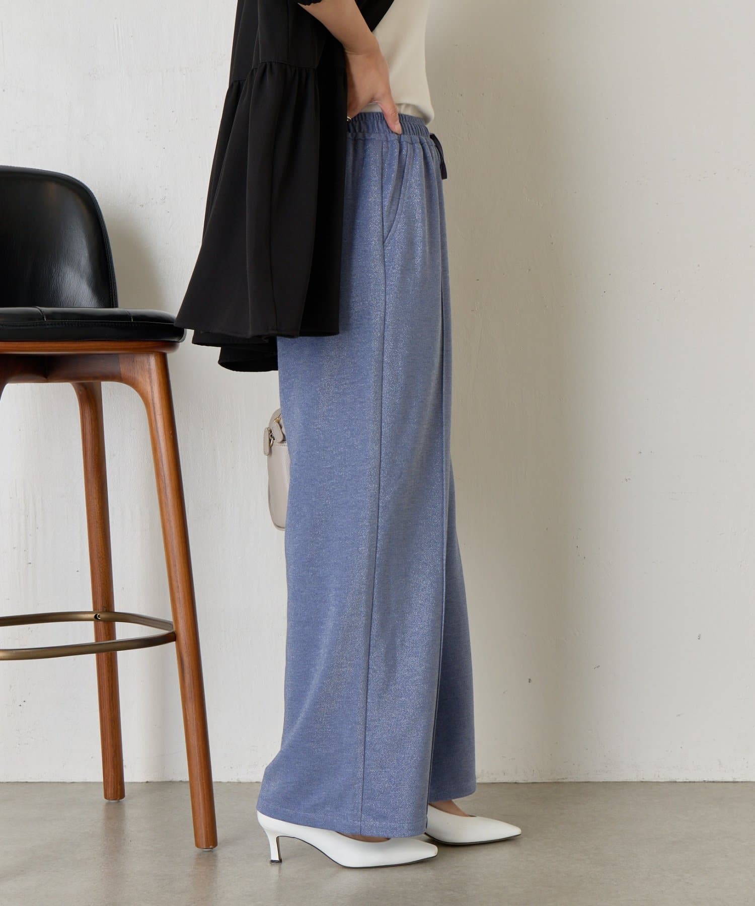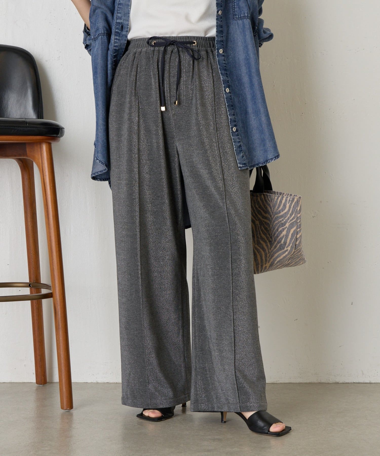 ・細かいラメが生地に織り込まれたこなれ感のある大人のあリラックスパンツ。