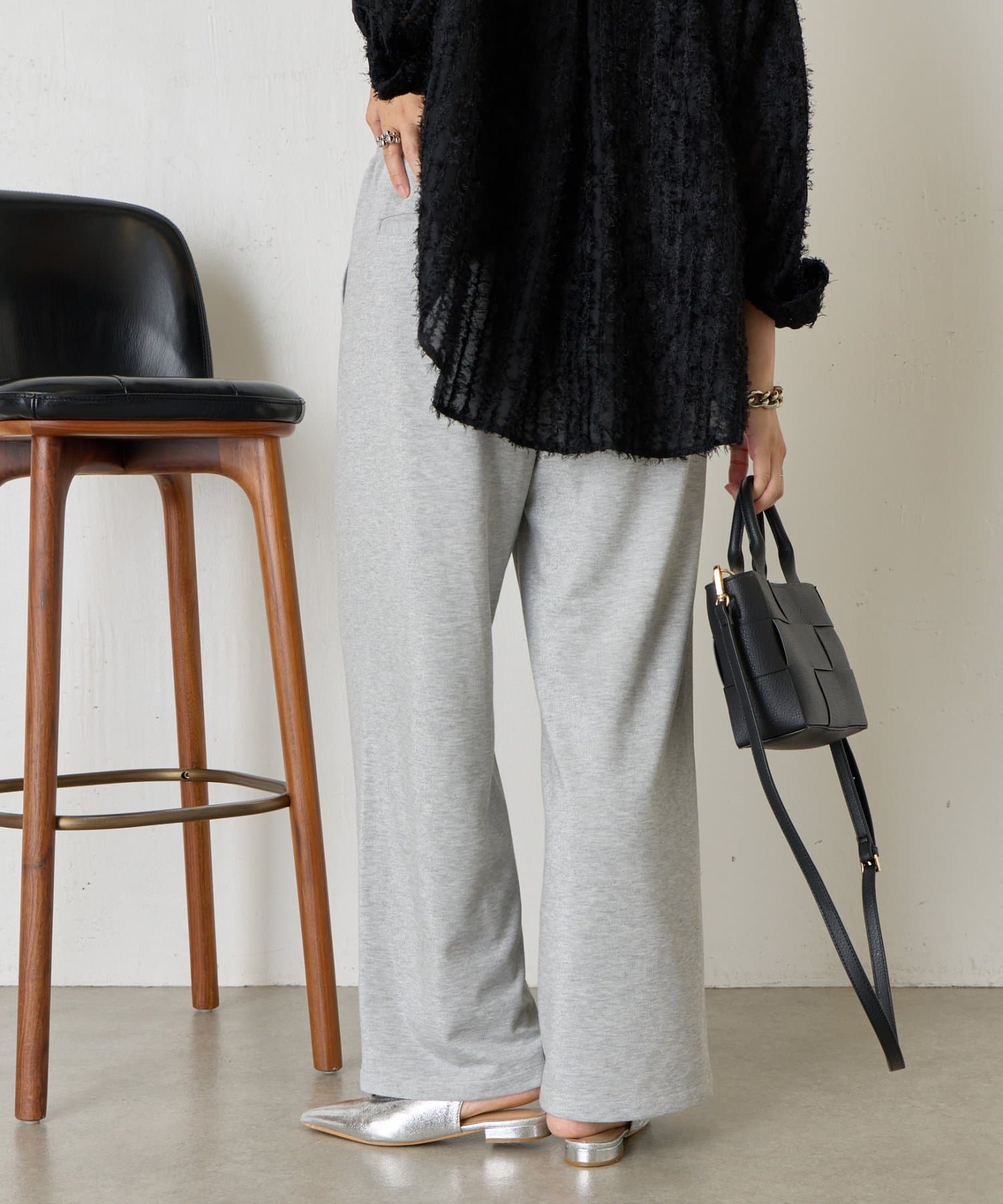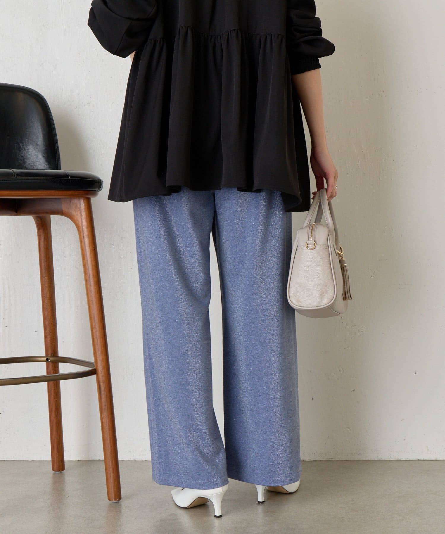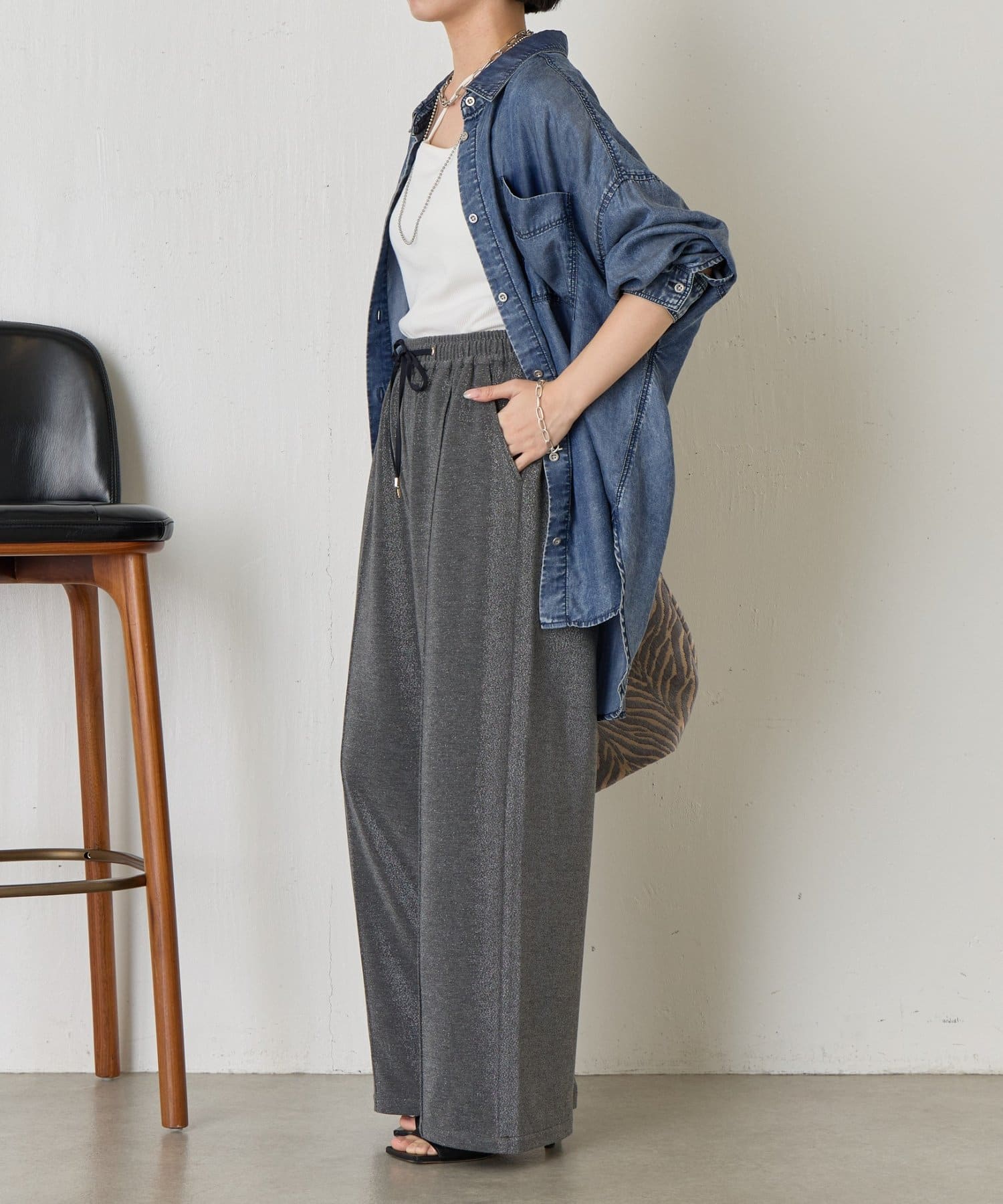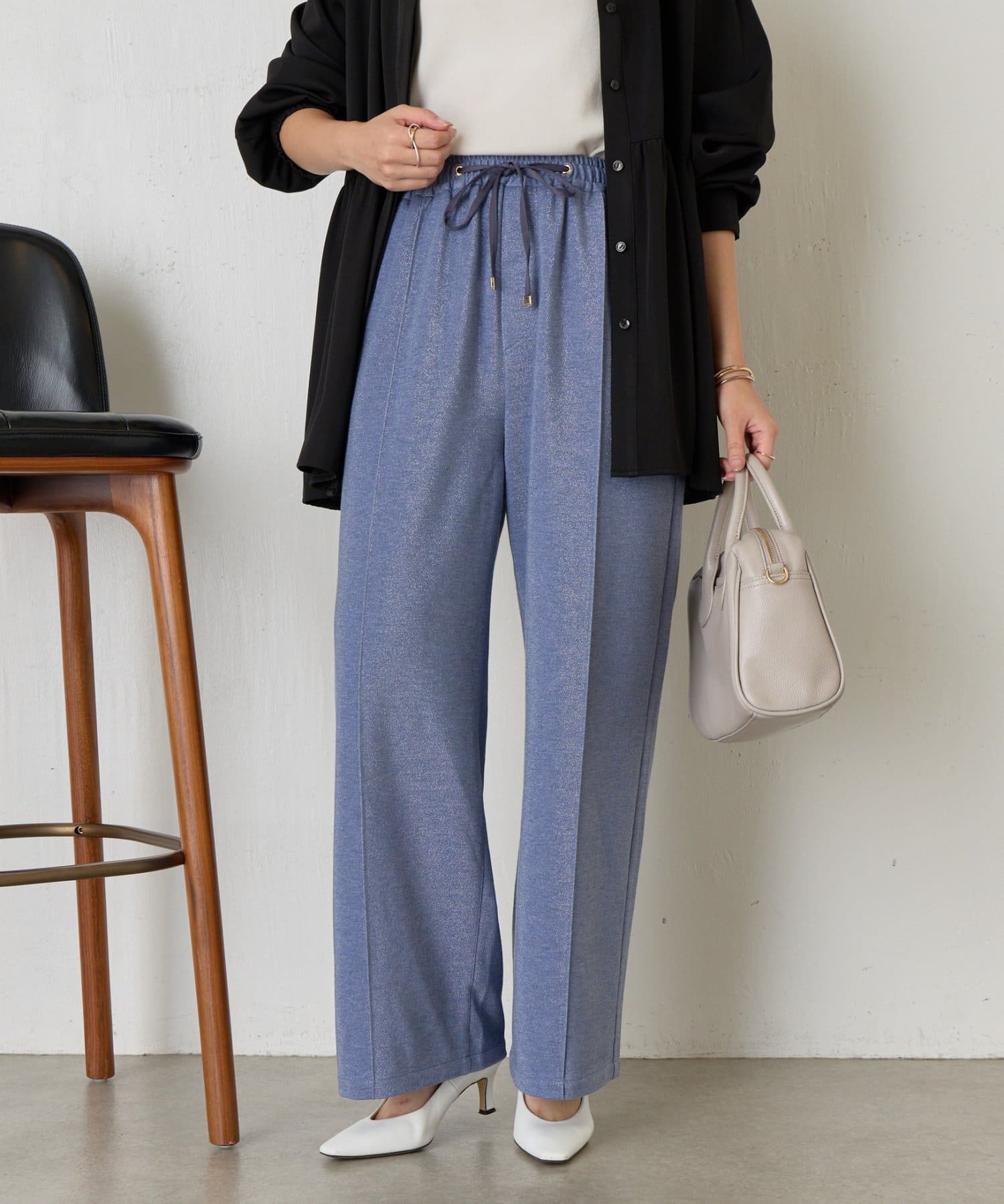 ・細かいラメが生地に織り込まれたこなれ感のある大人のあリラックスパンツ。