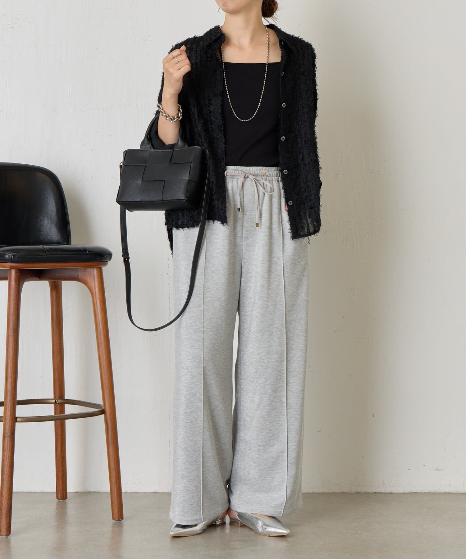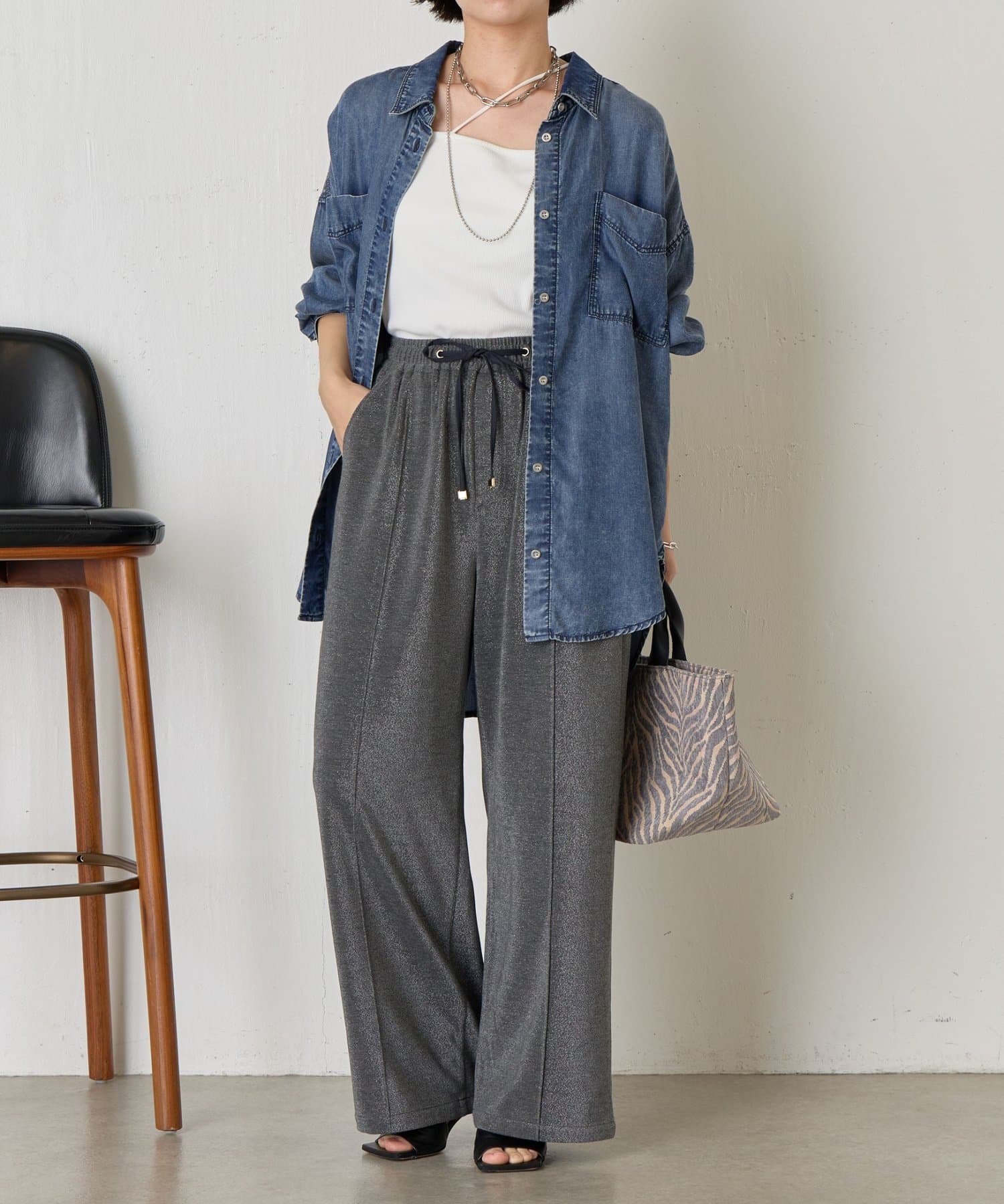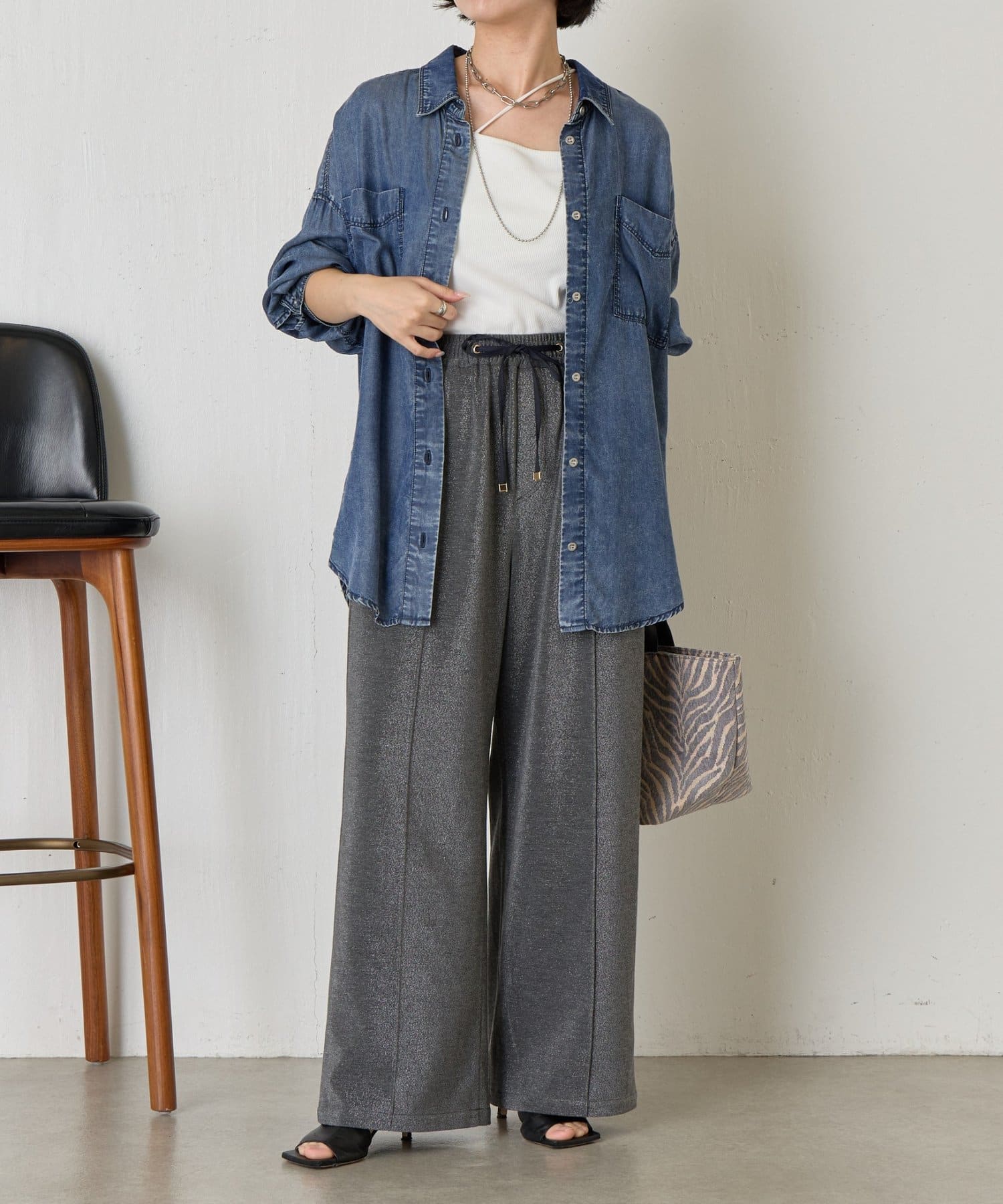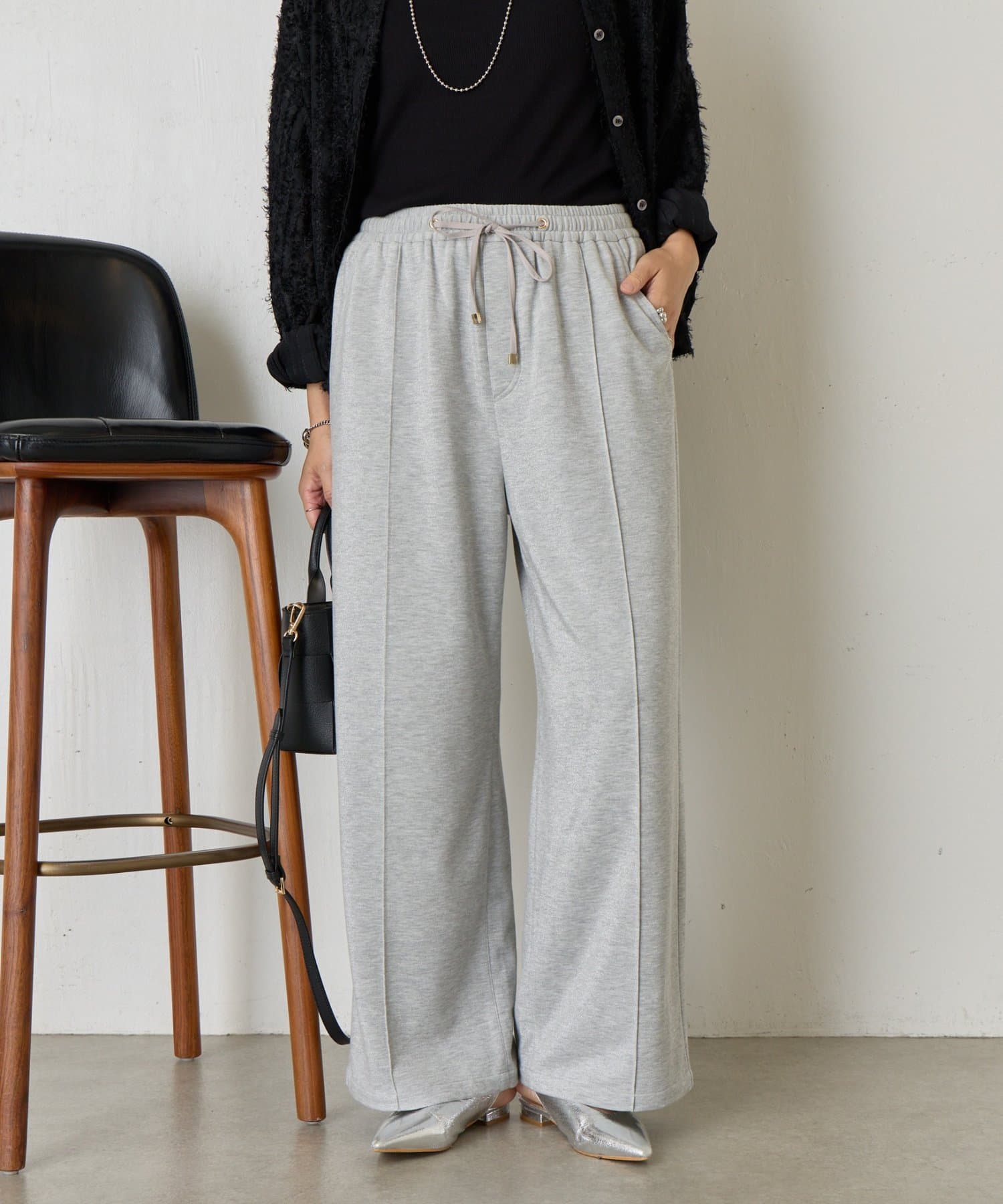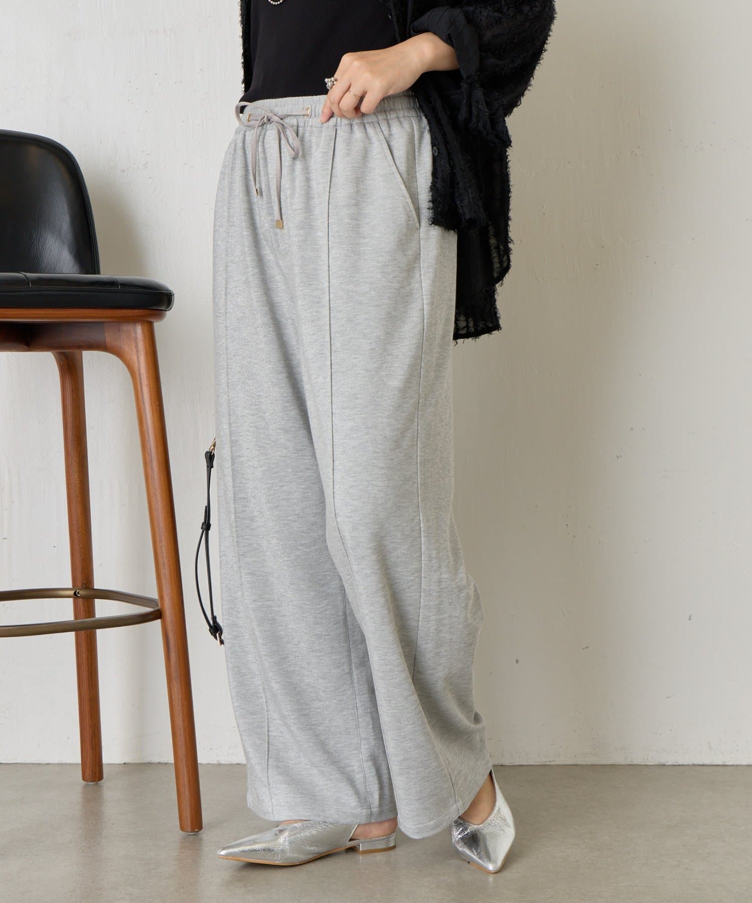 ・細かいラメが生地に織り込まれたこなれ感のある大人のあリラックスパンツ。
