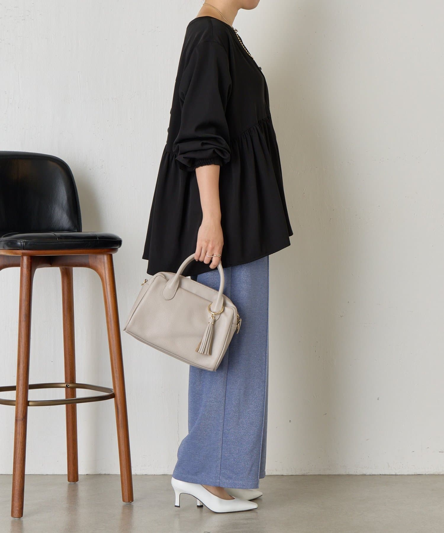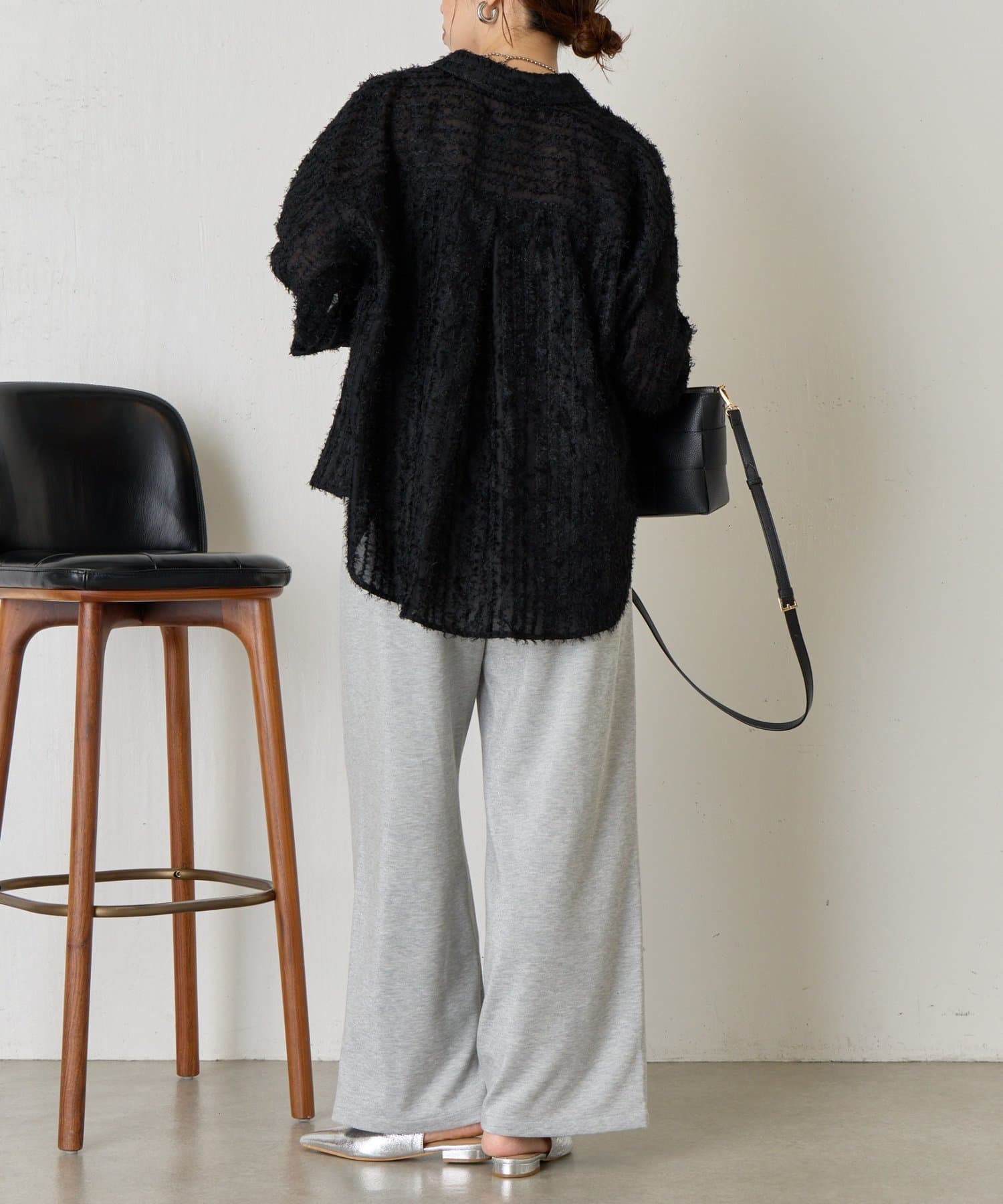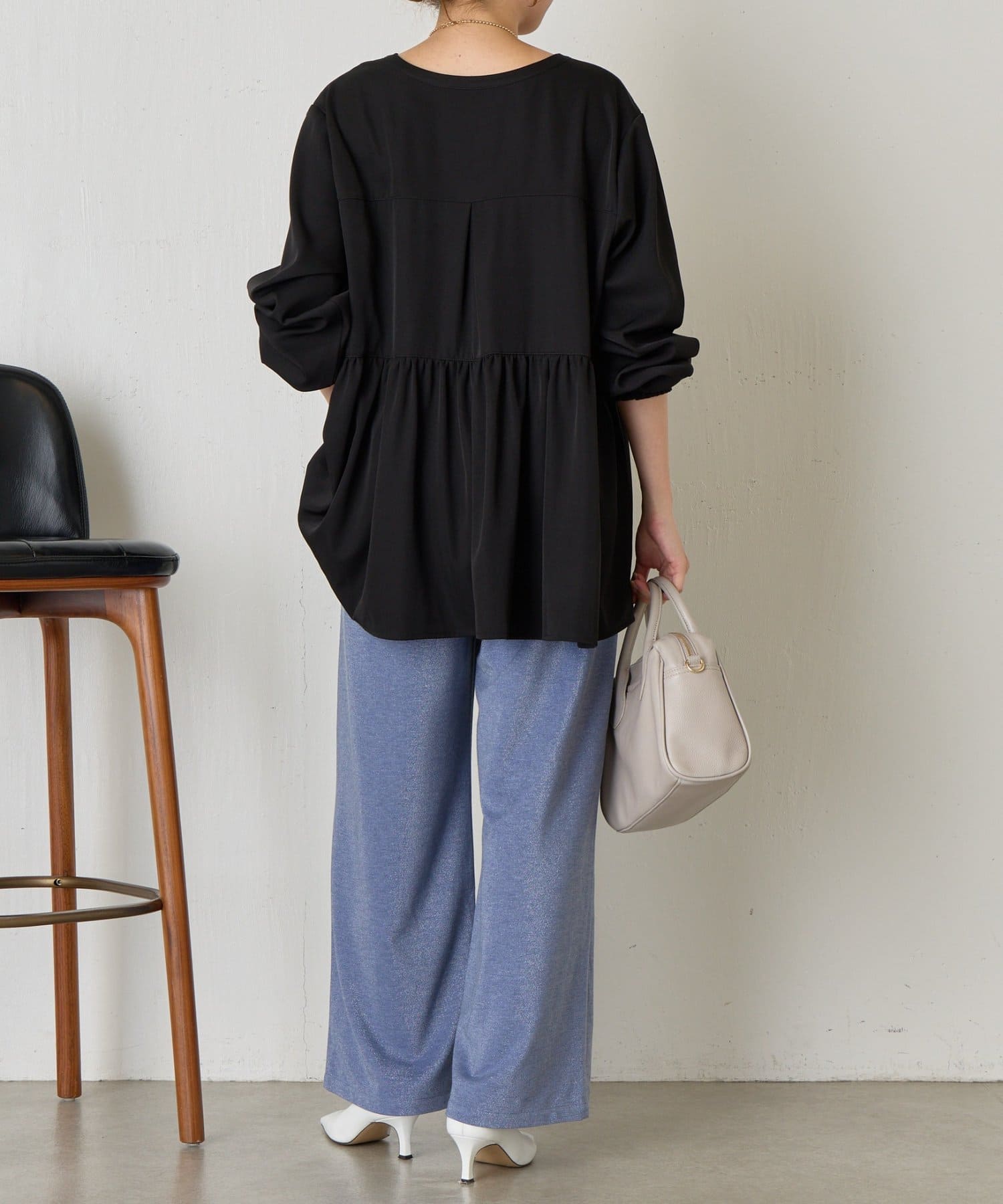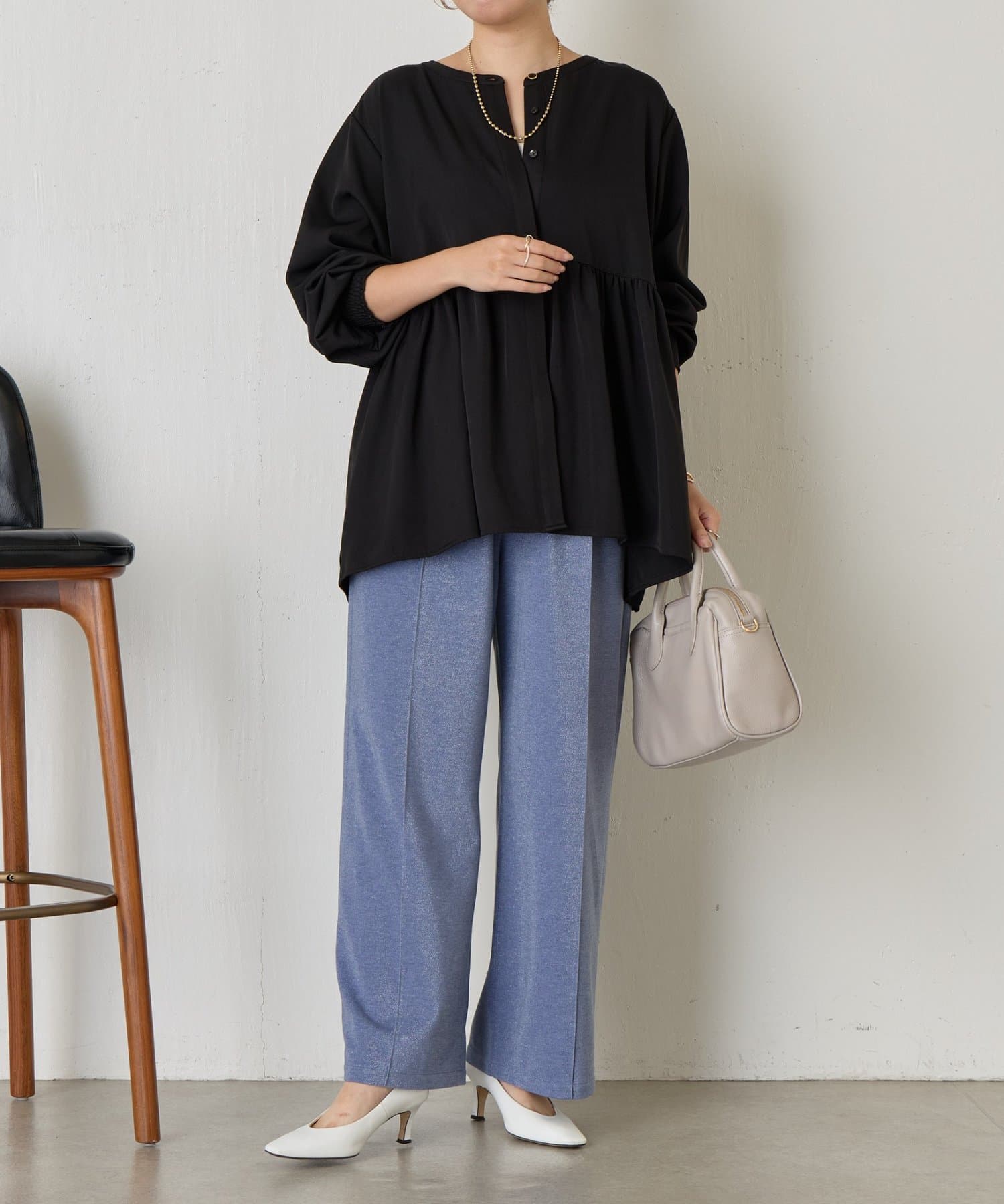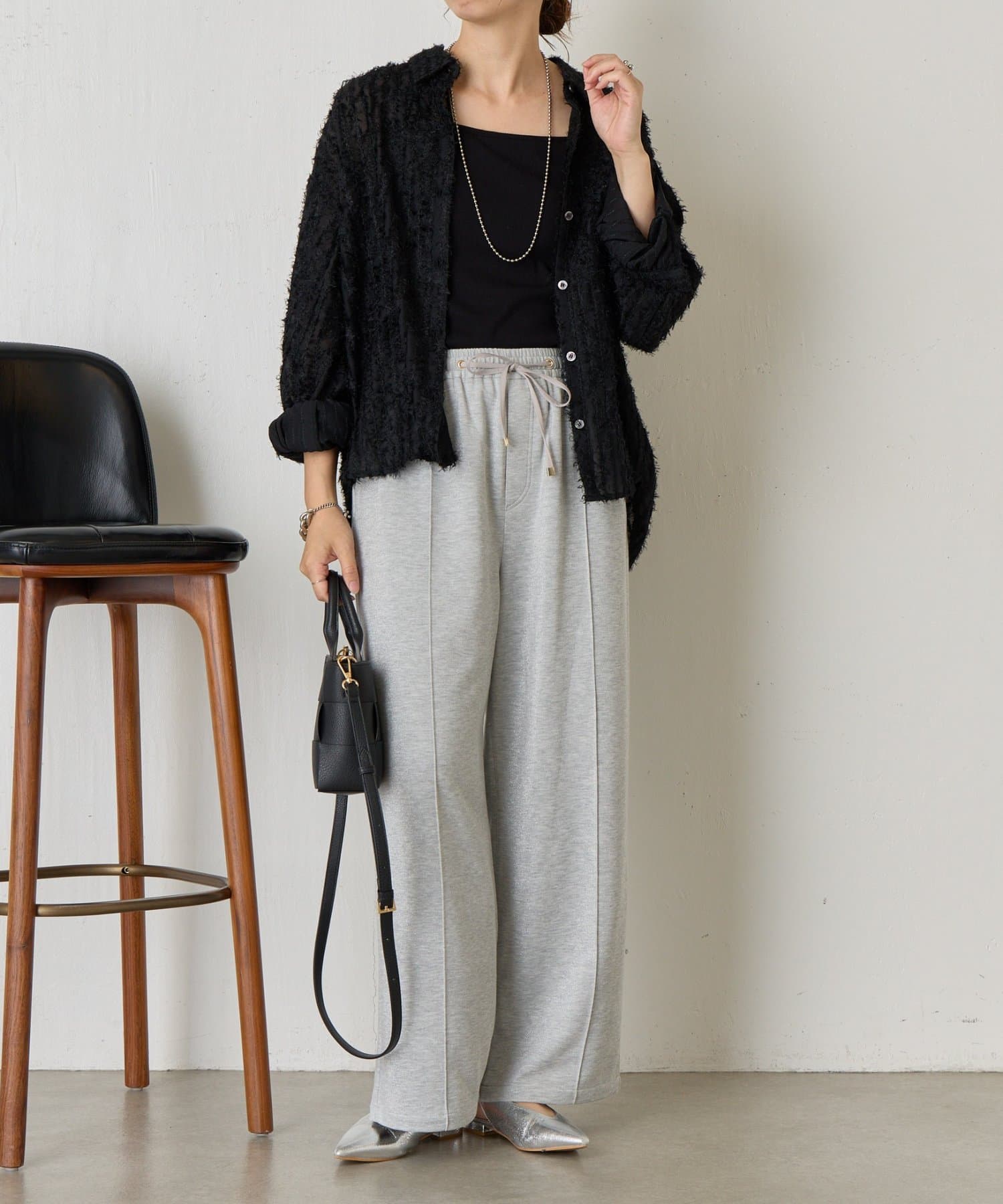 ・細かいラメが生地に織り込まれたこなれ感のある大人のあリラックスパンツ。