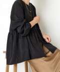 ・きれいめな印象ながら、ウエストギャザーでふんわりとした立体感が楽しめる1枚。