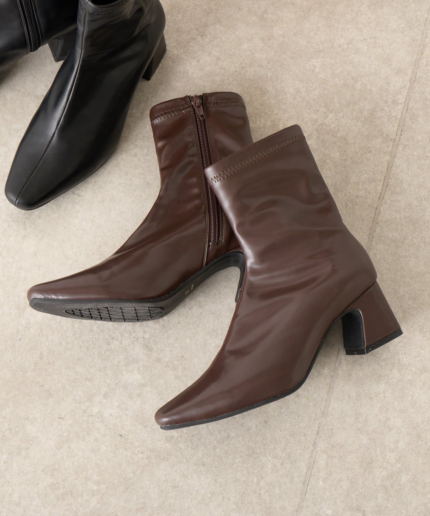 ・フィット感抜群のストレッチ素材で、美しいシルエットを叶えるショートブーツ。