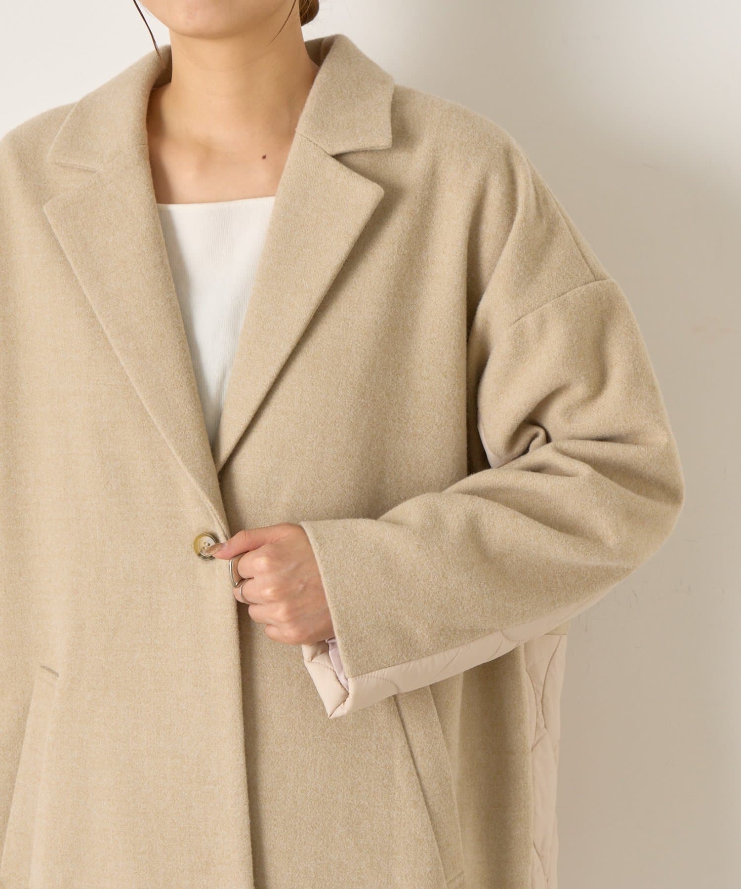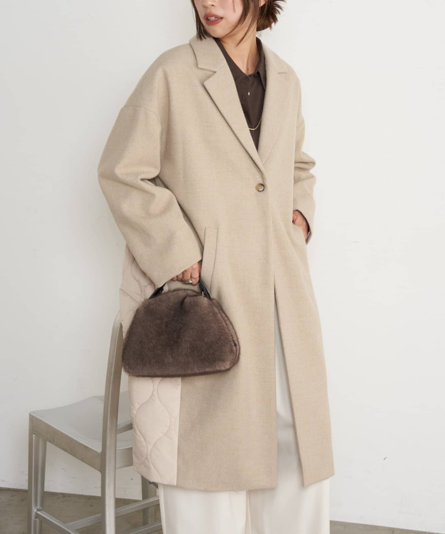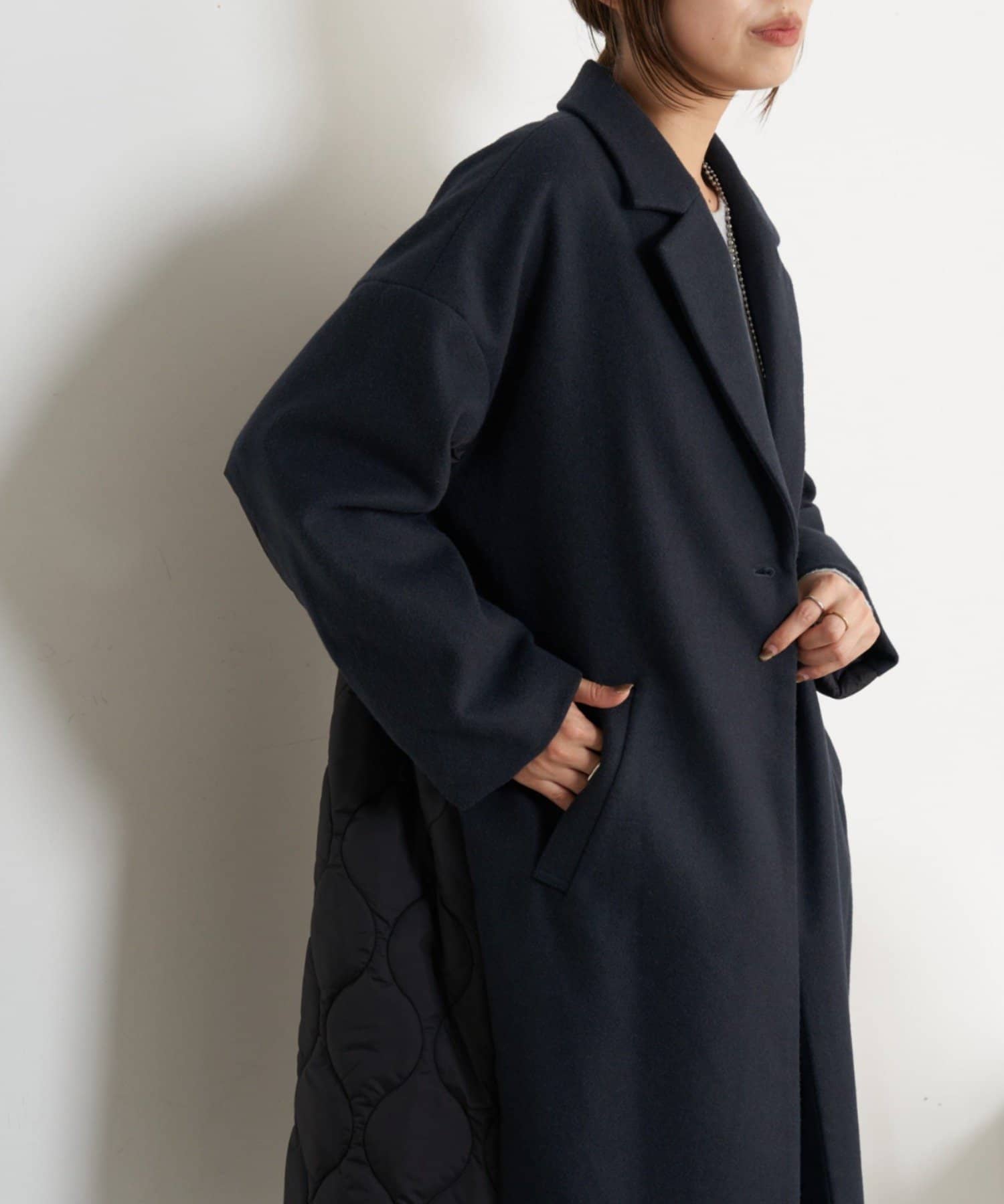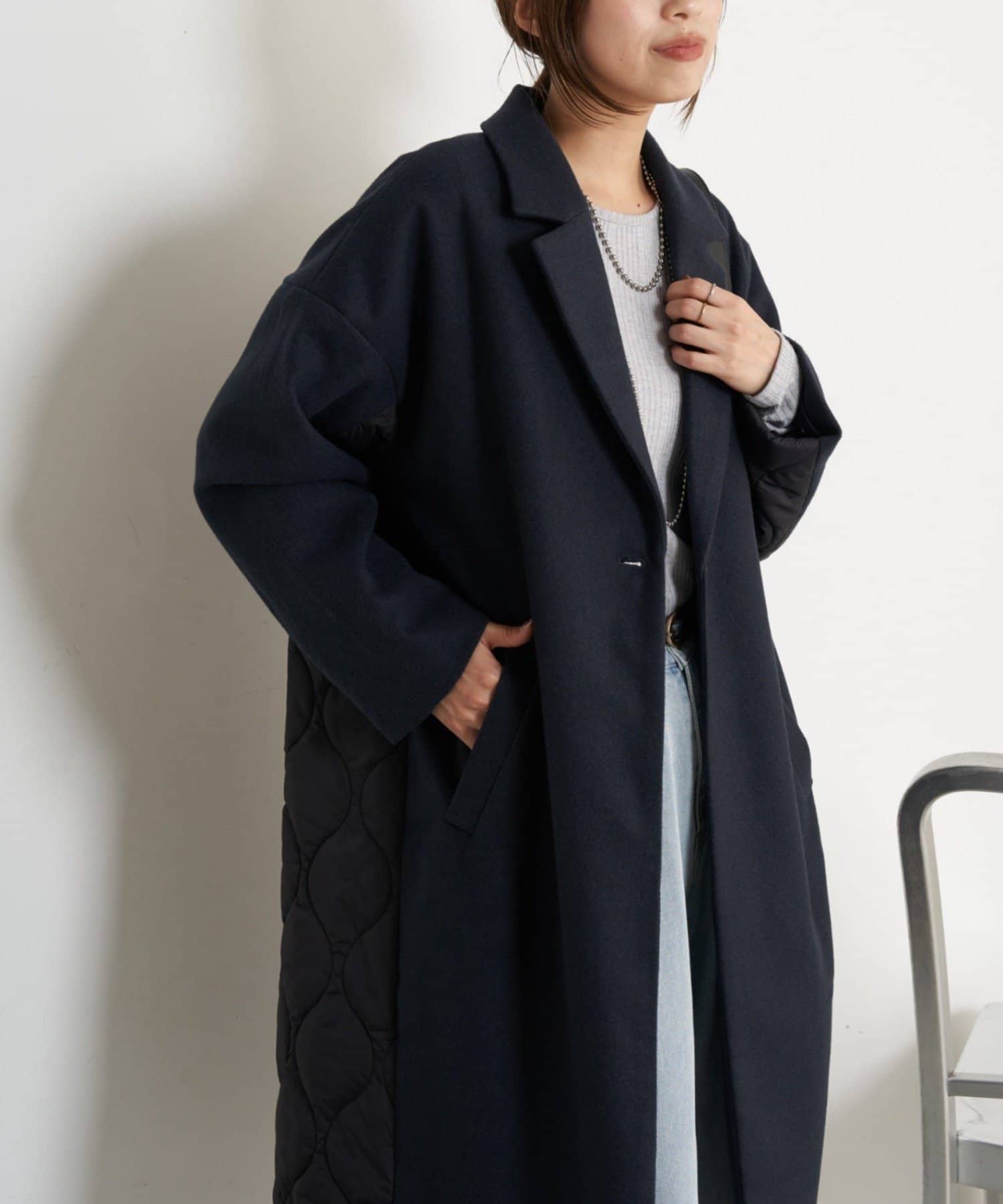 キルティング切替ロングコート