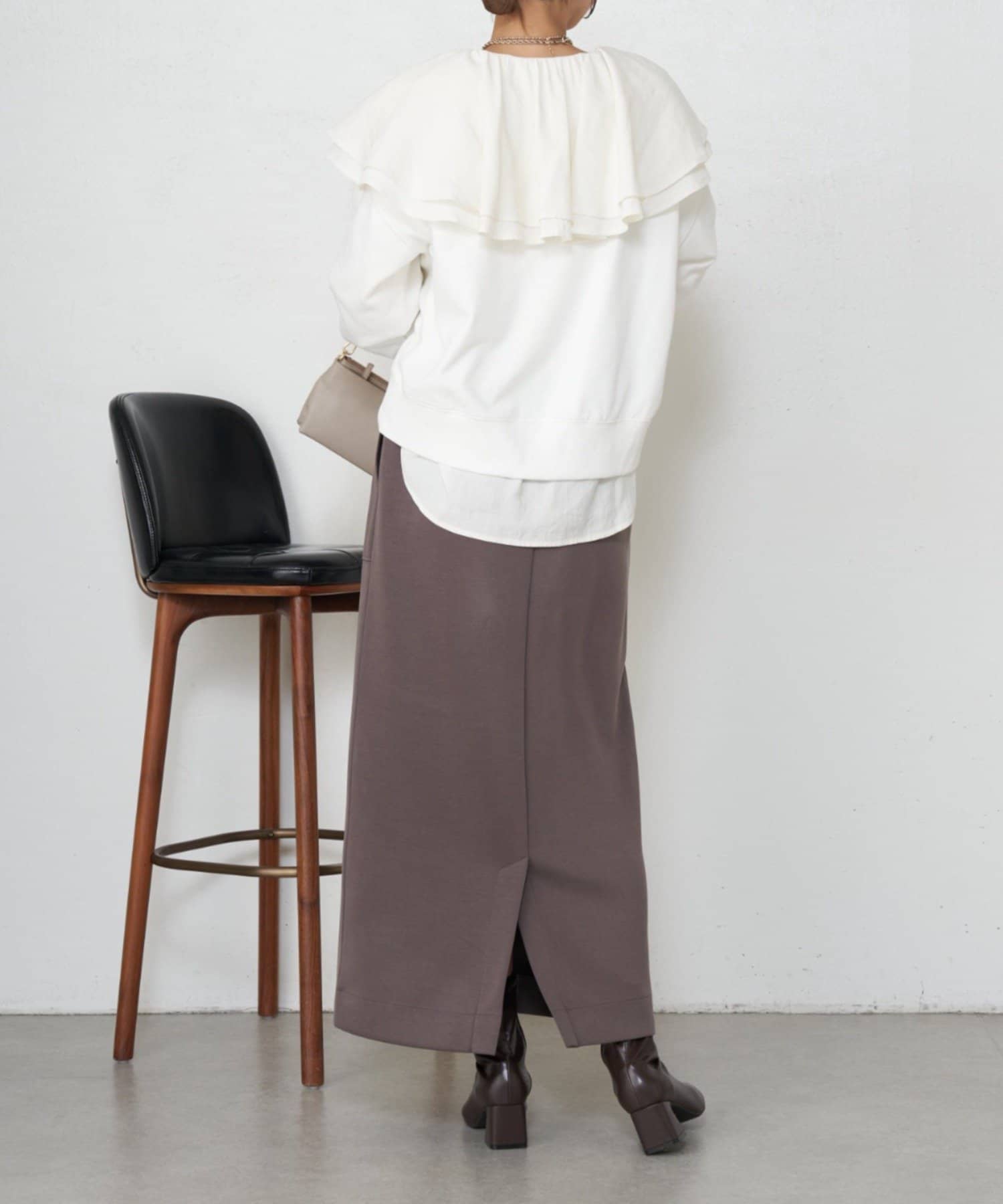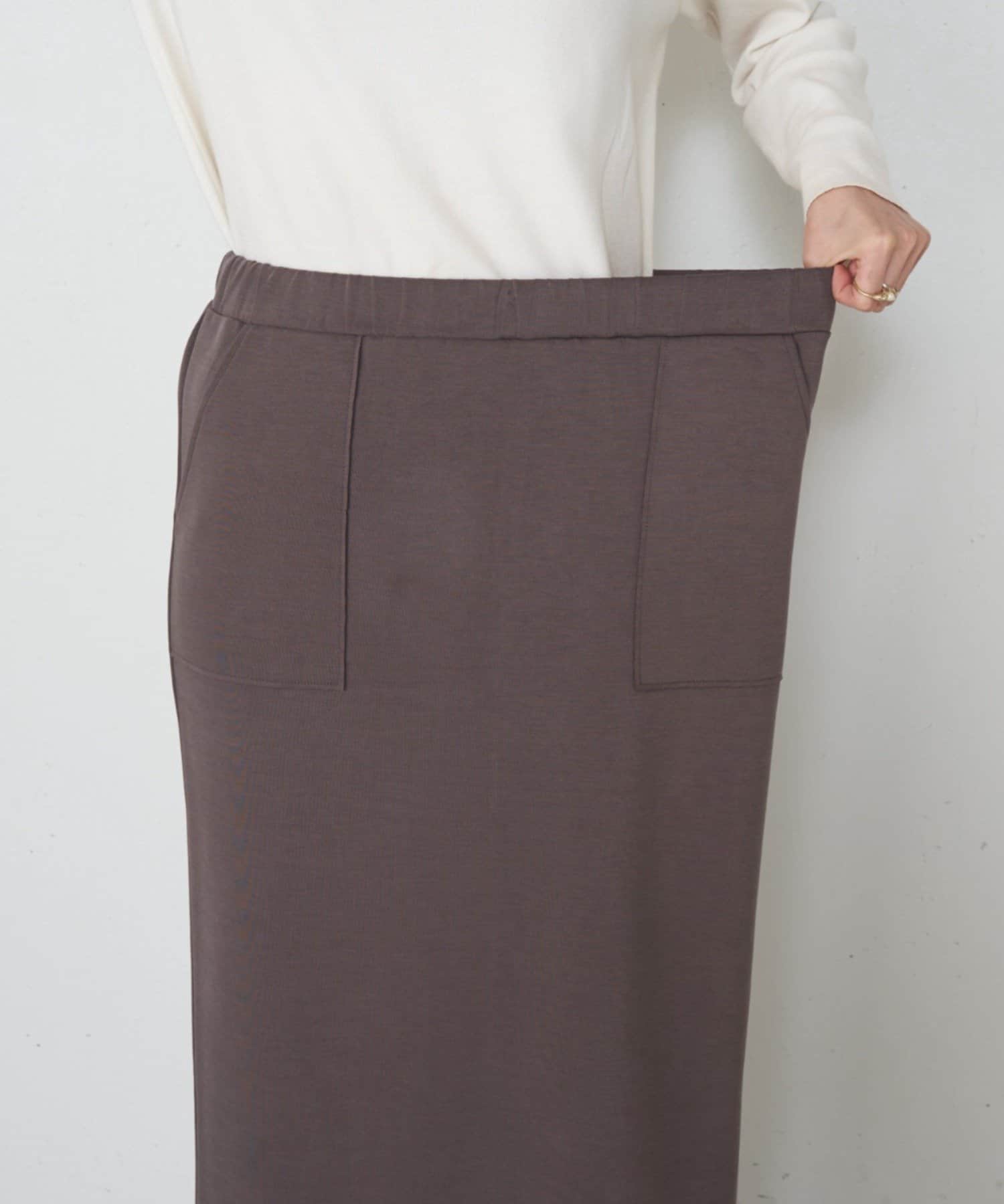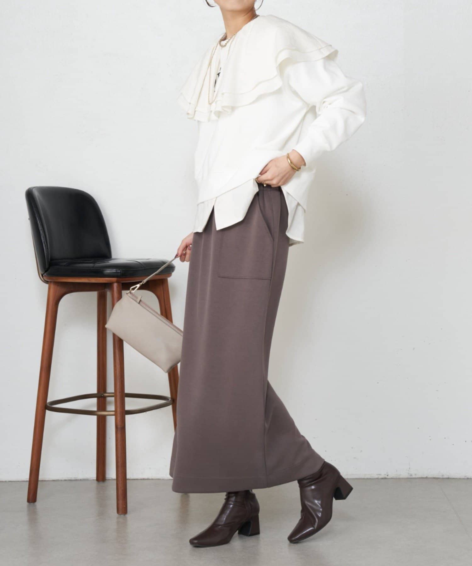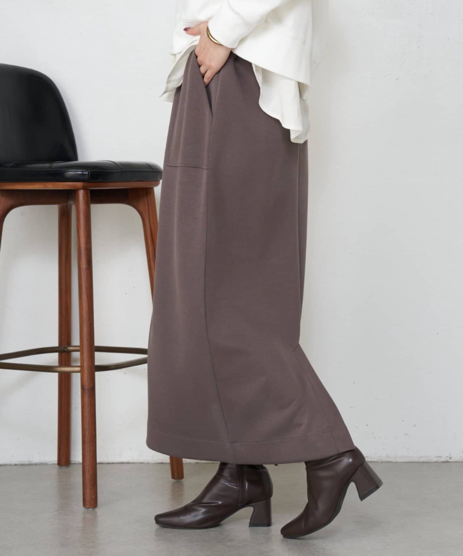 ・リラックス感がありつつ、ボンディングの滑らかな表面が上品見えするスカート。