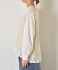 ・ベーシックなノーカラーシャツ×ニットベストのセットアイテムが登場。
