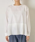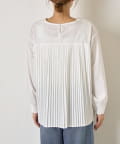 ・シャツには女性らしいプリーツデザインが施され、ベーシックながら遊び心ある一枚。