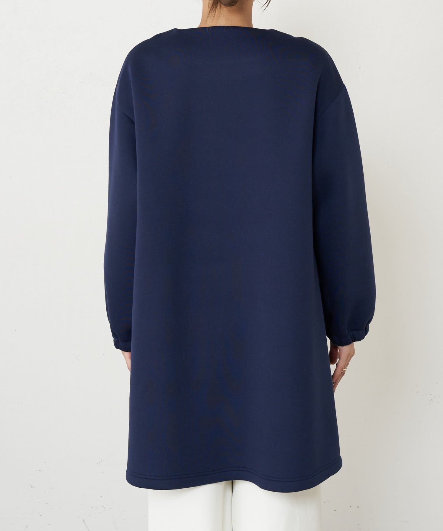 ・上品見えするダンボール素材で、程よいハリ感と快適な着心地を両立したロングコート。