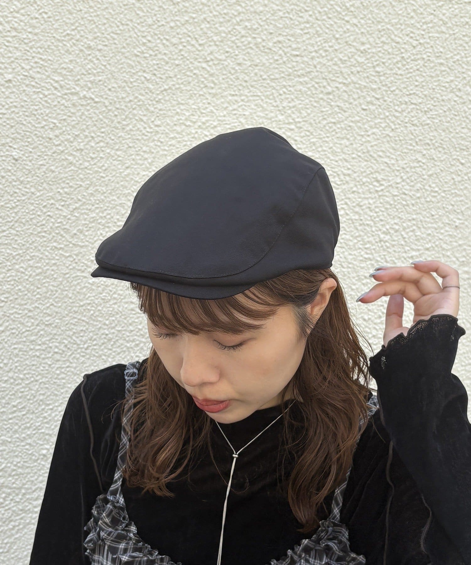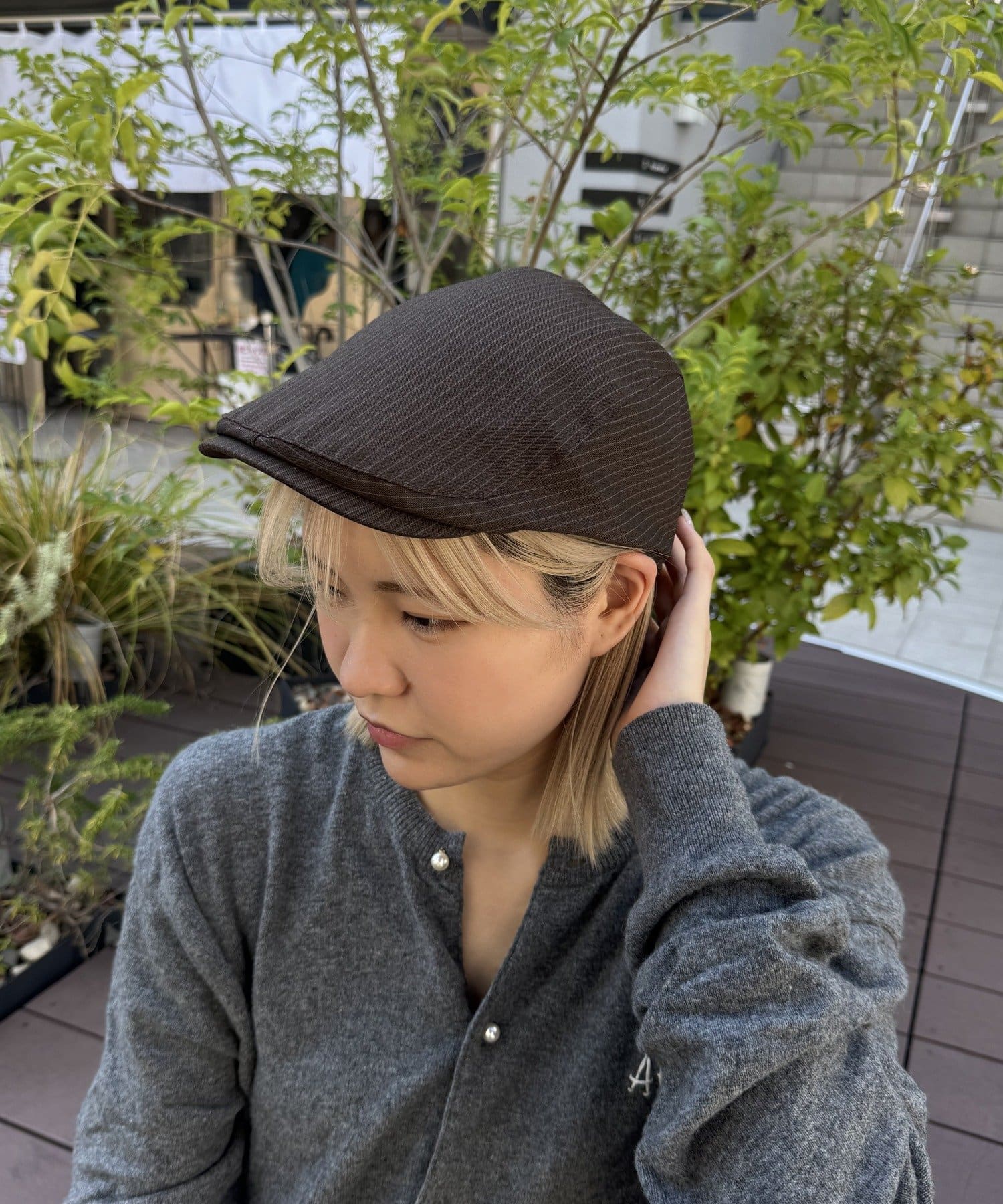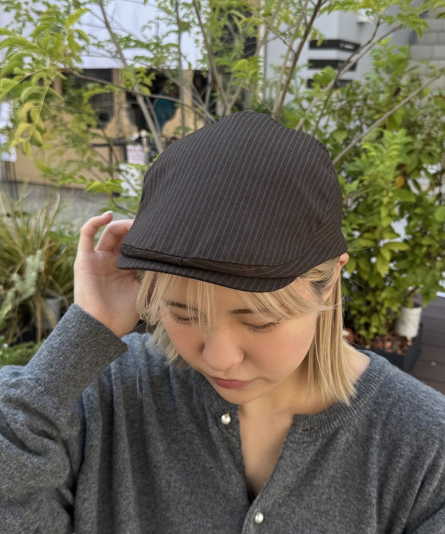 今季トレンドのハンチングキャップ。