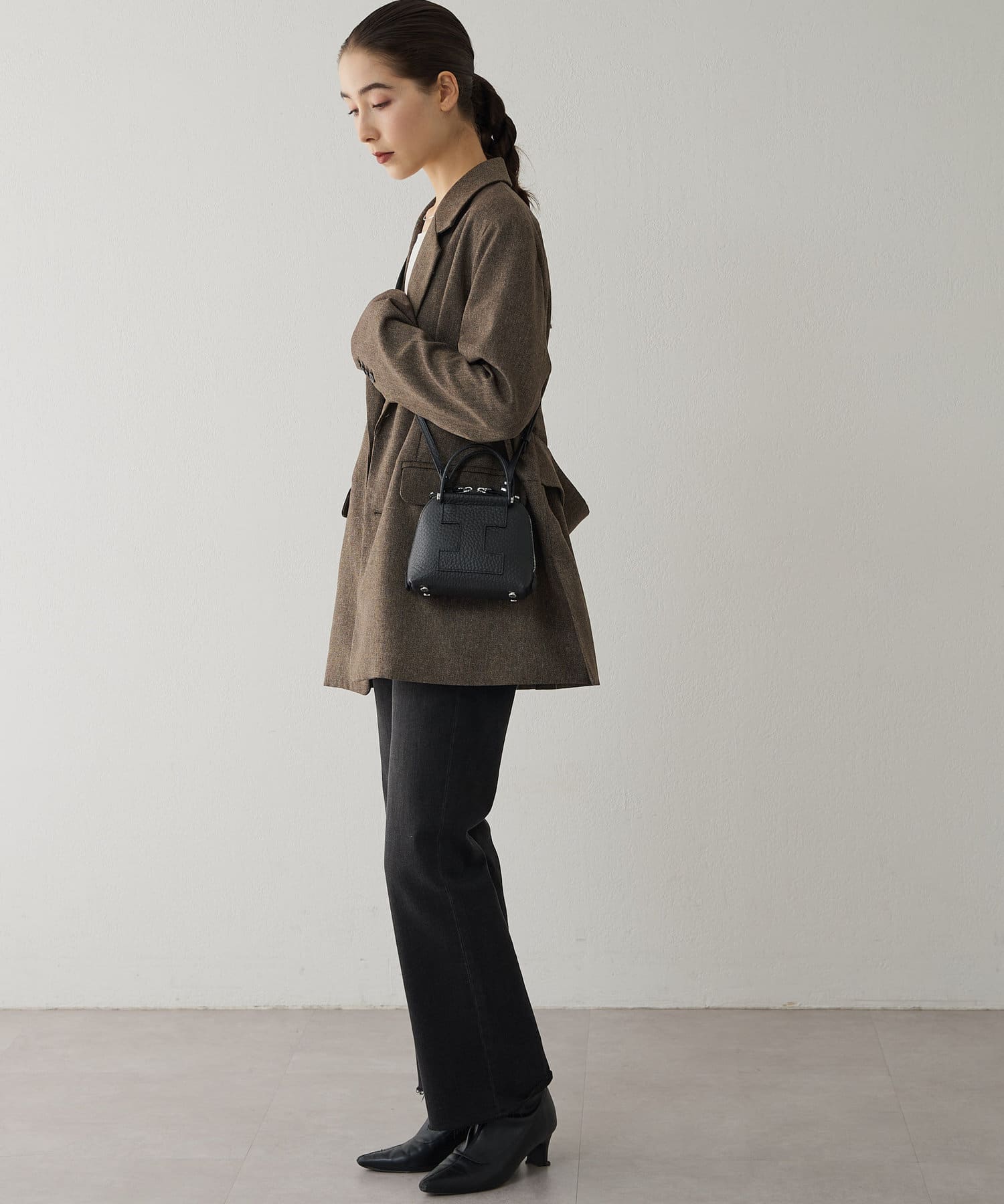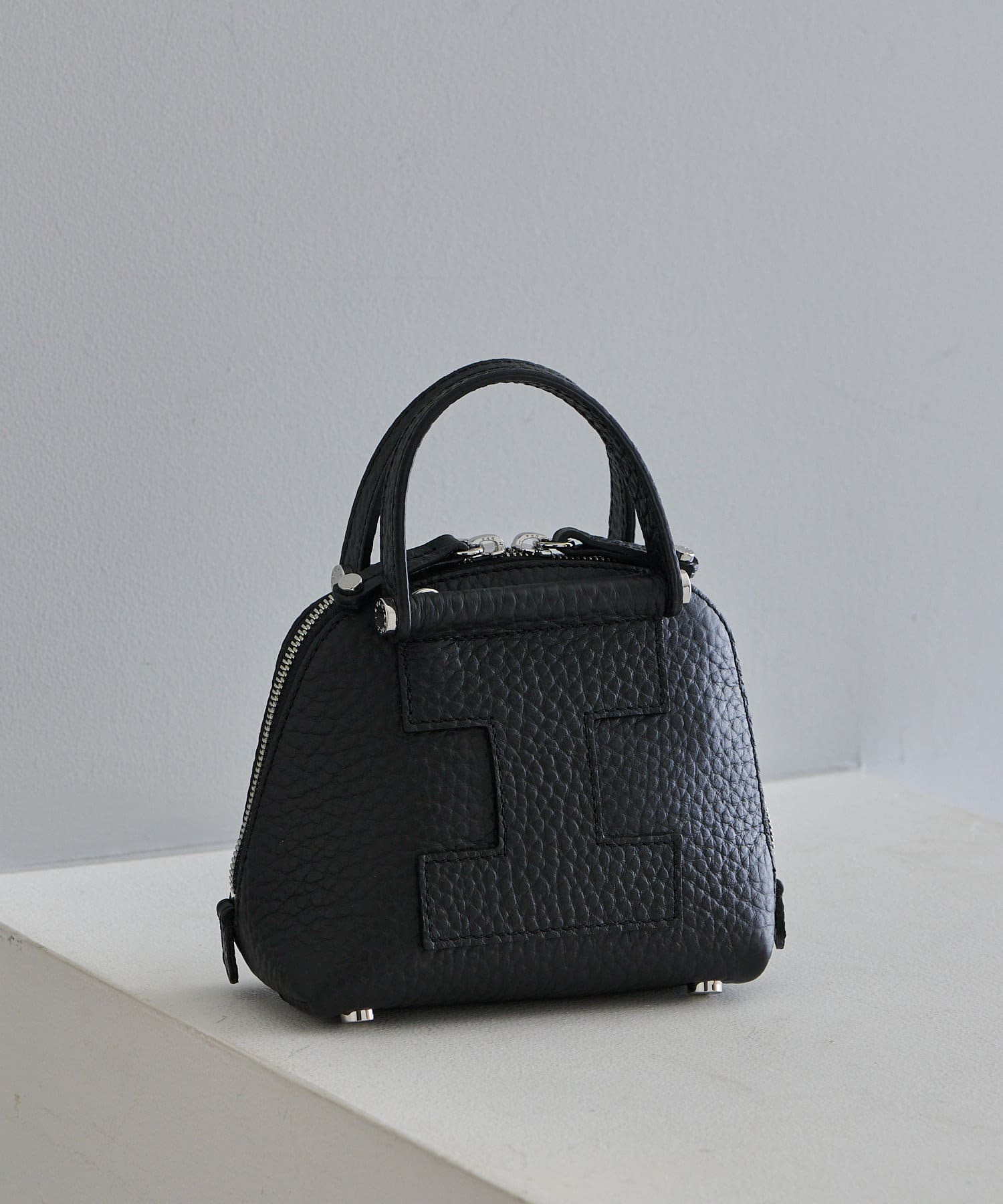 ミニサイズですっきり見えるシルエットながらも、広めのマチで見た目以上の収納力◎天ファスナーがサイドまでしっかりと開くので、バッグの中が見やすく出し入れもスムーズ。折りたたみマチもついているので、中身がこぼれにくく大切なお荷物も落ちにくくなっています。底は厚みを持たせることで荷物を入れても型崩れしづらく、底鋲付きと長くご愛用いただけるような細かな配慮も嬉しいポイント!