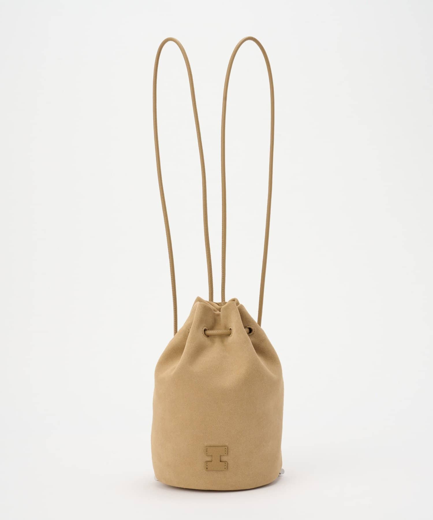 巾着型のラフなフォルムながらも、丸みを帯びたショルダーストラップや極力メタルを使わないミニマルさが大人の上品さを醸し出してくれます。フロントに配した同色の“I”モチーフのレザーパーツがさりげないアクセントに。2本のストラップをまとめて肩に掛けるスタイルが、ディレクターのイチ押しです。