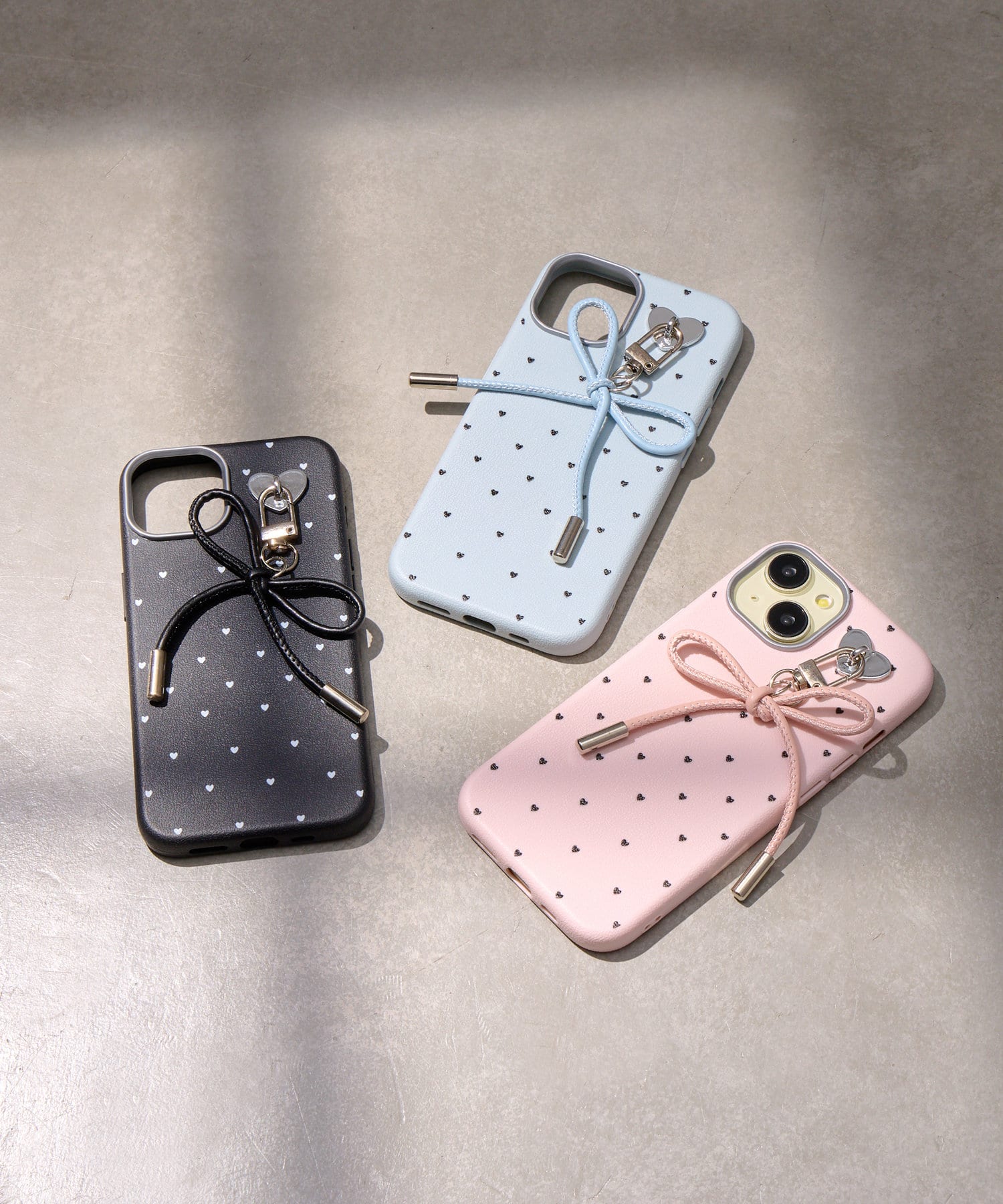Lattice(ラティス) リボンハートドットスマホケース(iPhone15)
