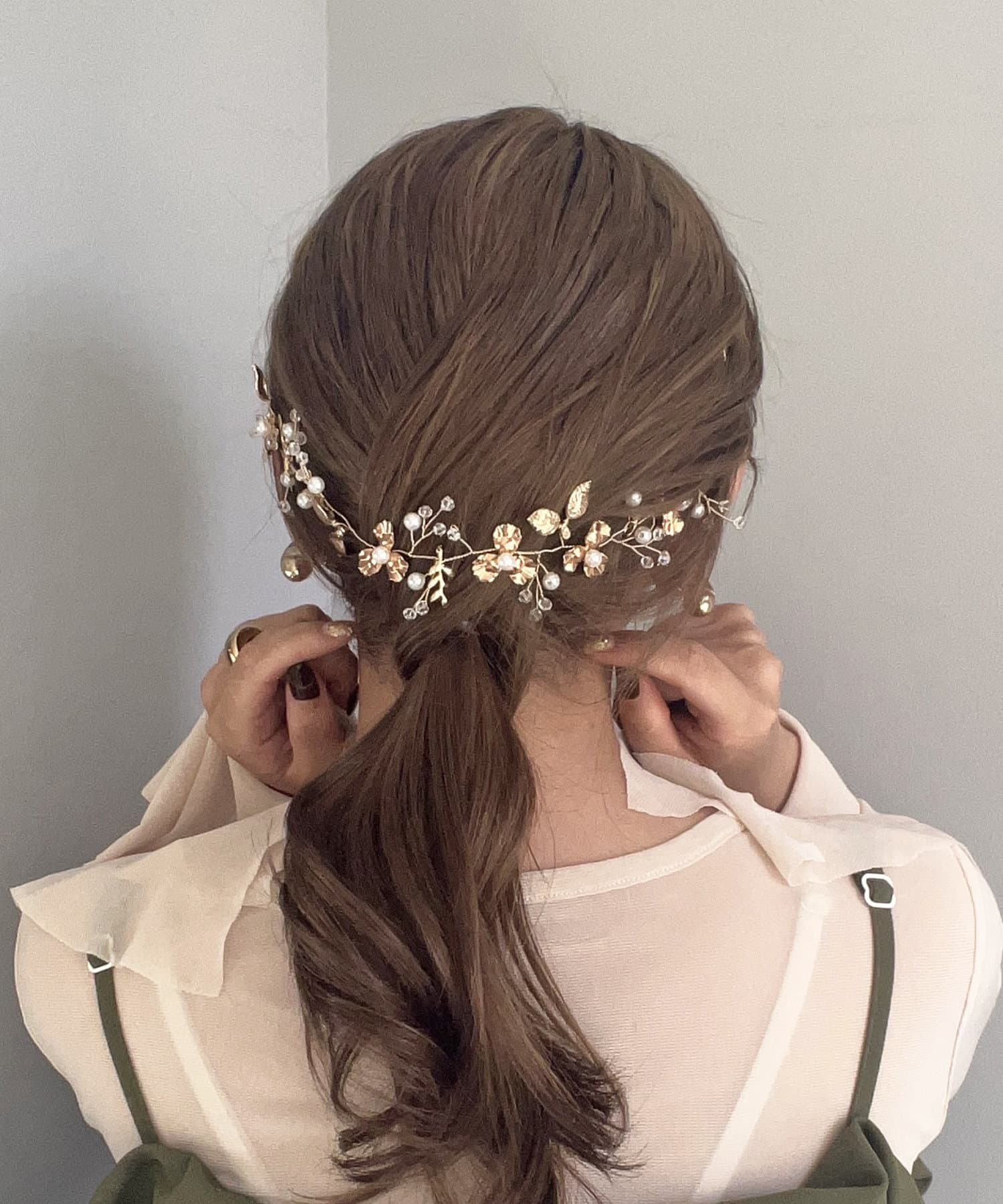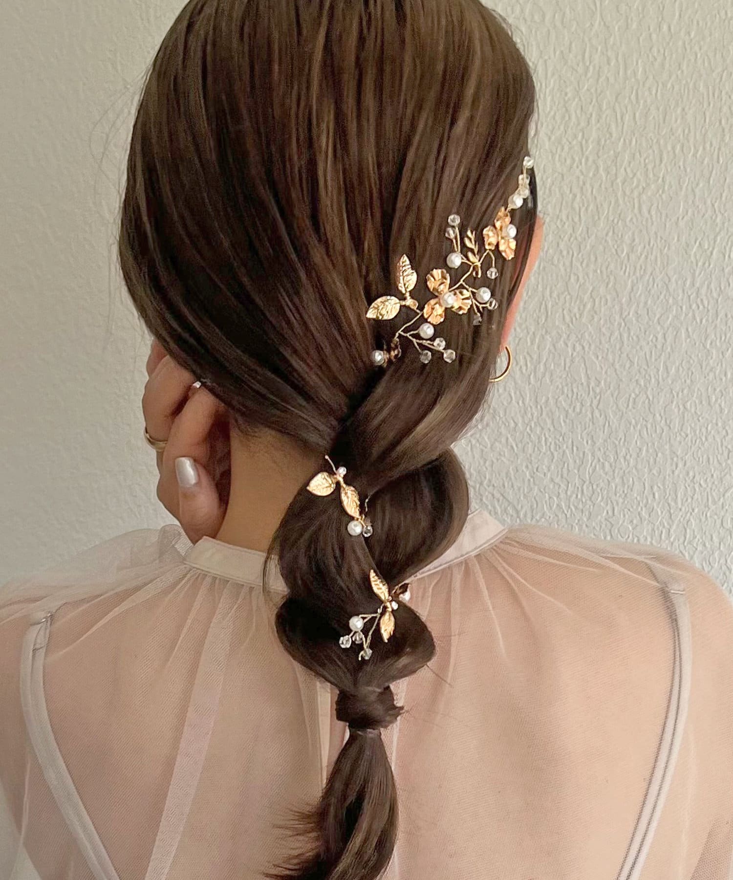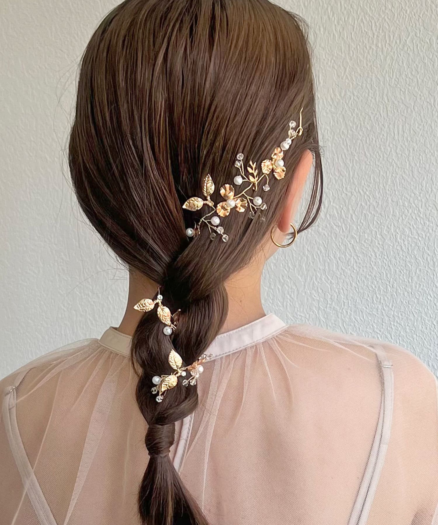髪に留めるだけで簡単に華やかヘアに仕上がります。