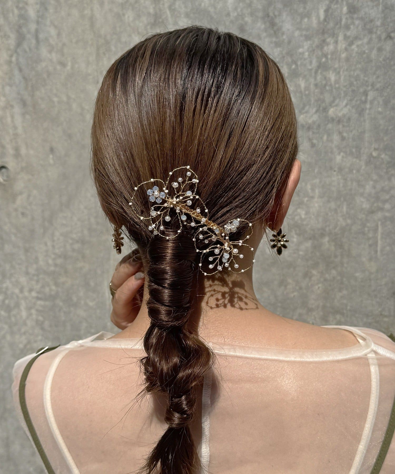 〇タイトなヘアアレンジに付けるのもおすすめ。
