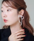 可憐なリボンモチーフをパールでかたどった、フェミニンムードたっぷりのイヤリング。