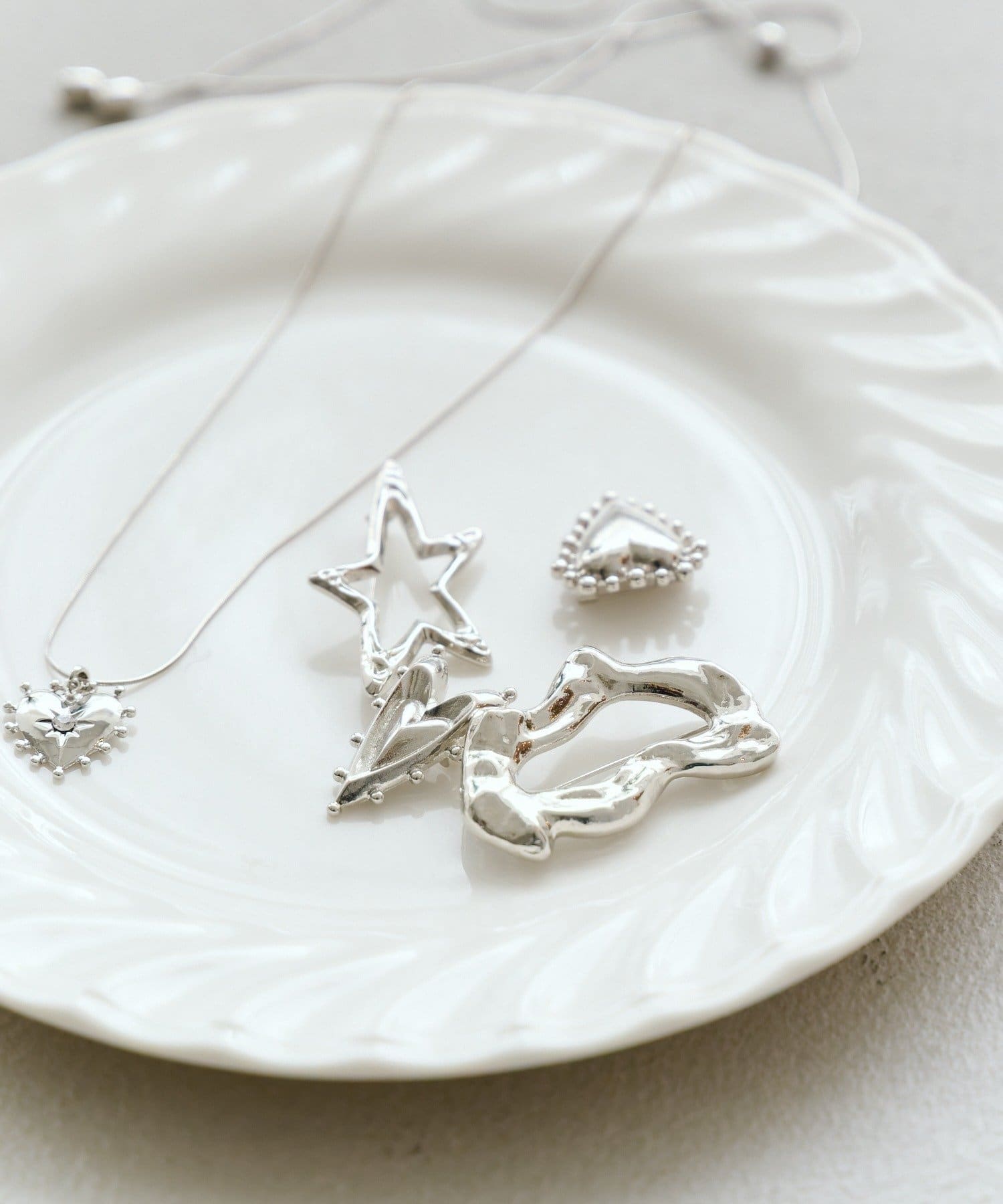 シルバーカラーがコーディネートに上品な華やかさをプラスします。