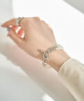ランダムな形状のパールとチェーンが組み合わさった個性的なデザインのブレスレット。