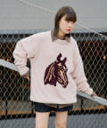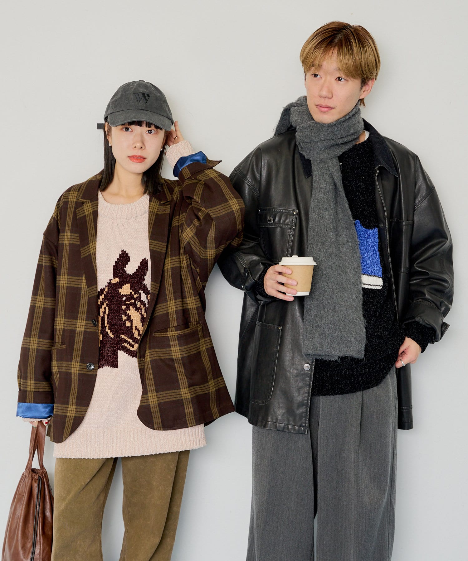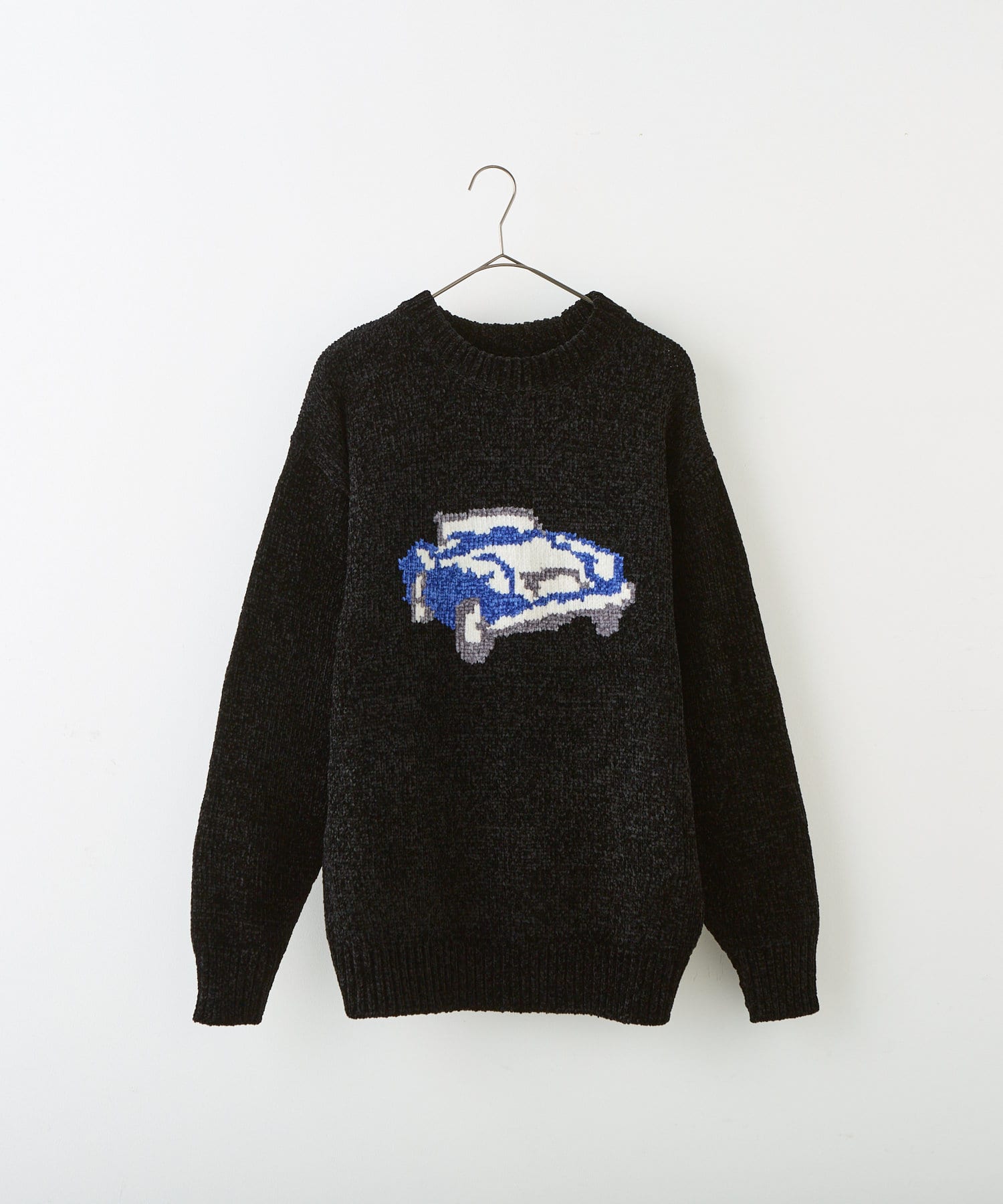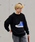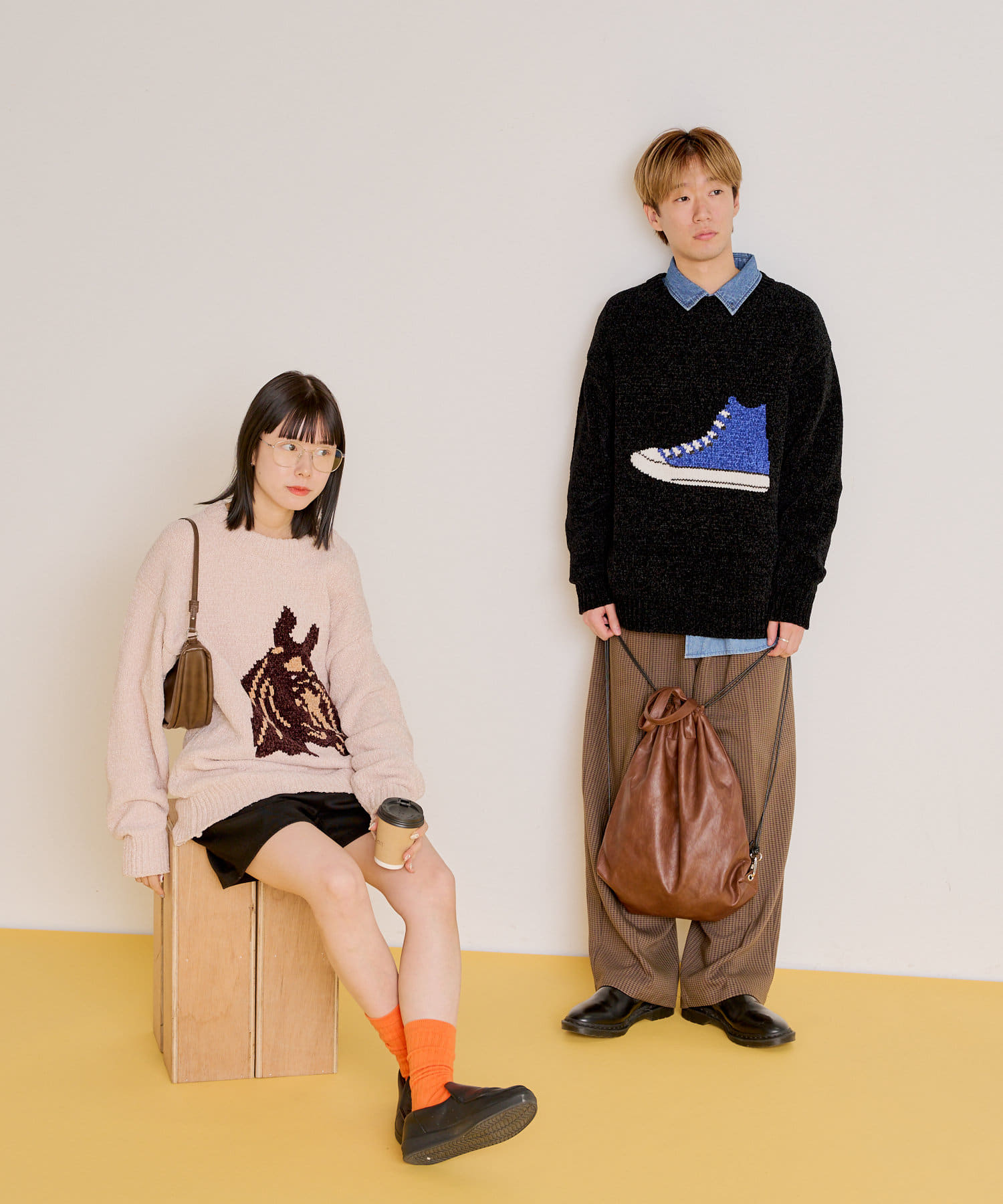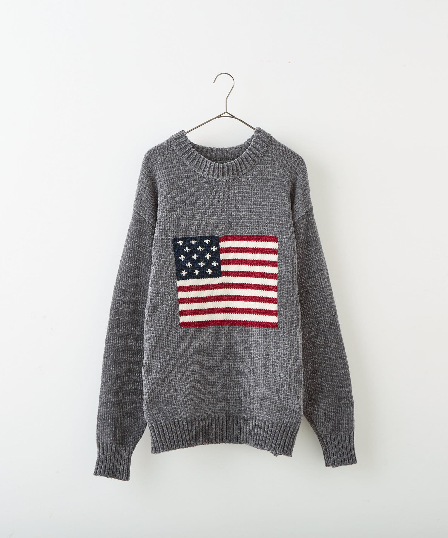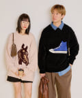 リラックスシルエットでヴィンテージニットにあるようなワンポイントロゴが特徴的なデザインです。