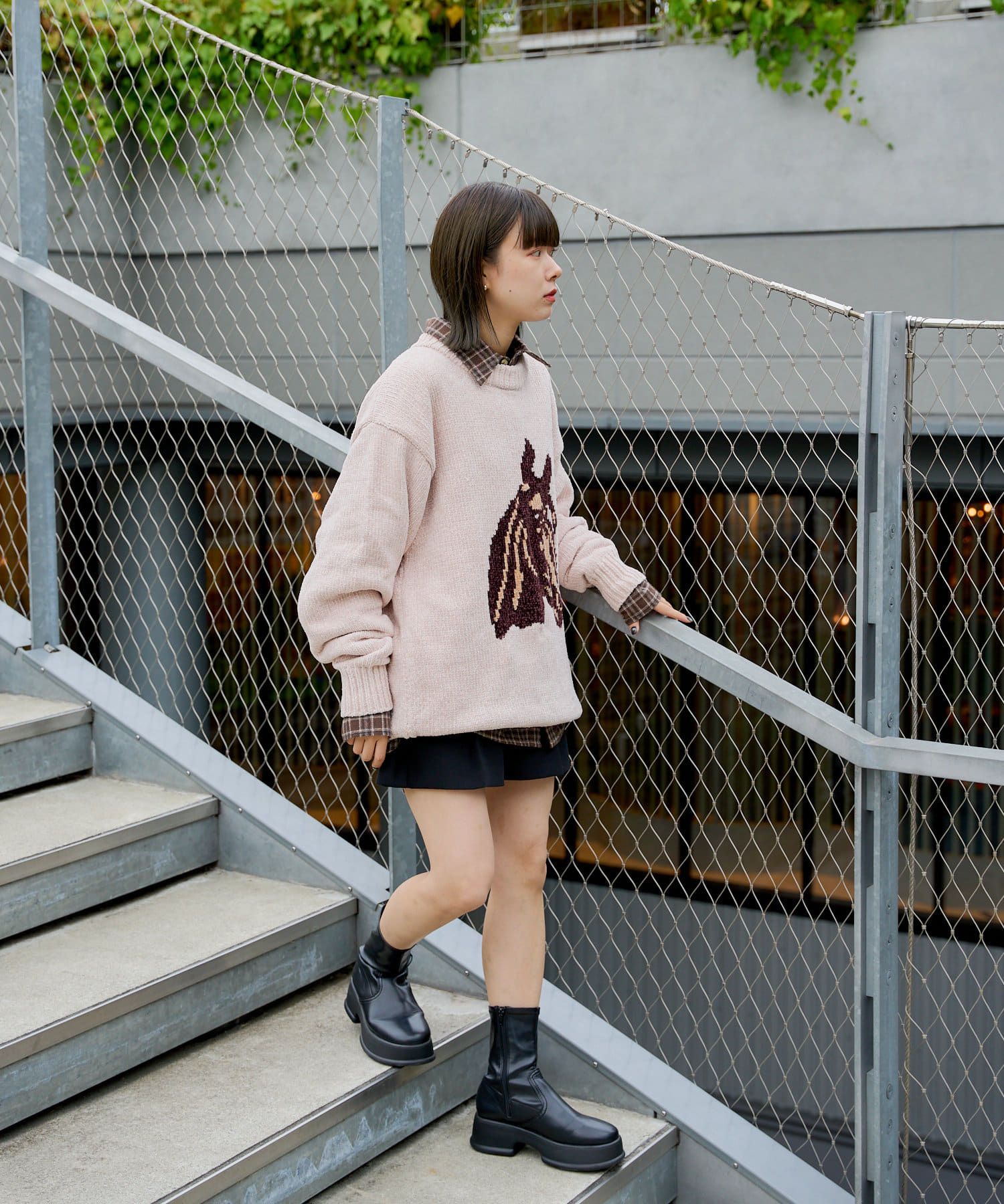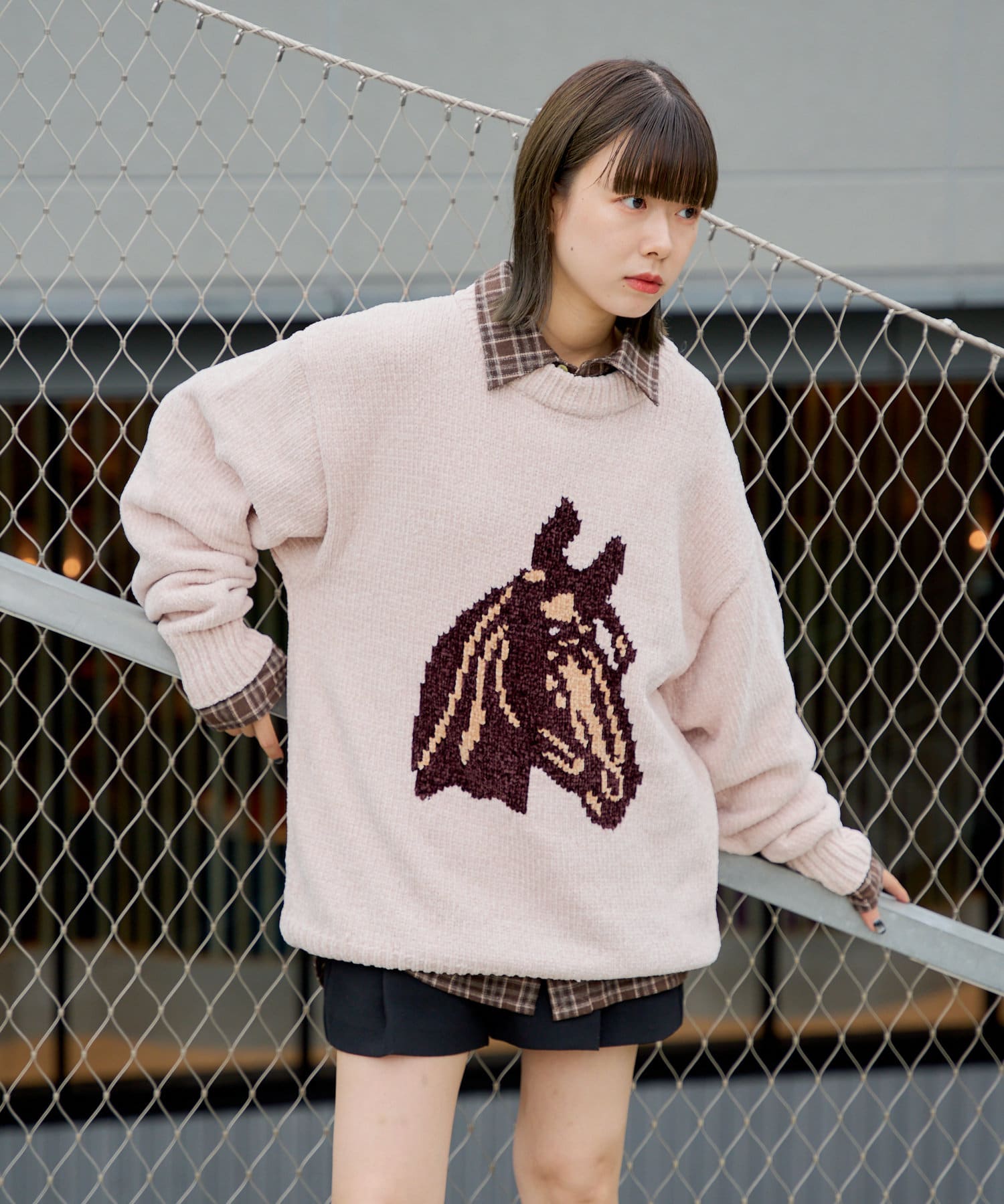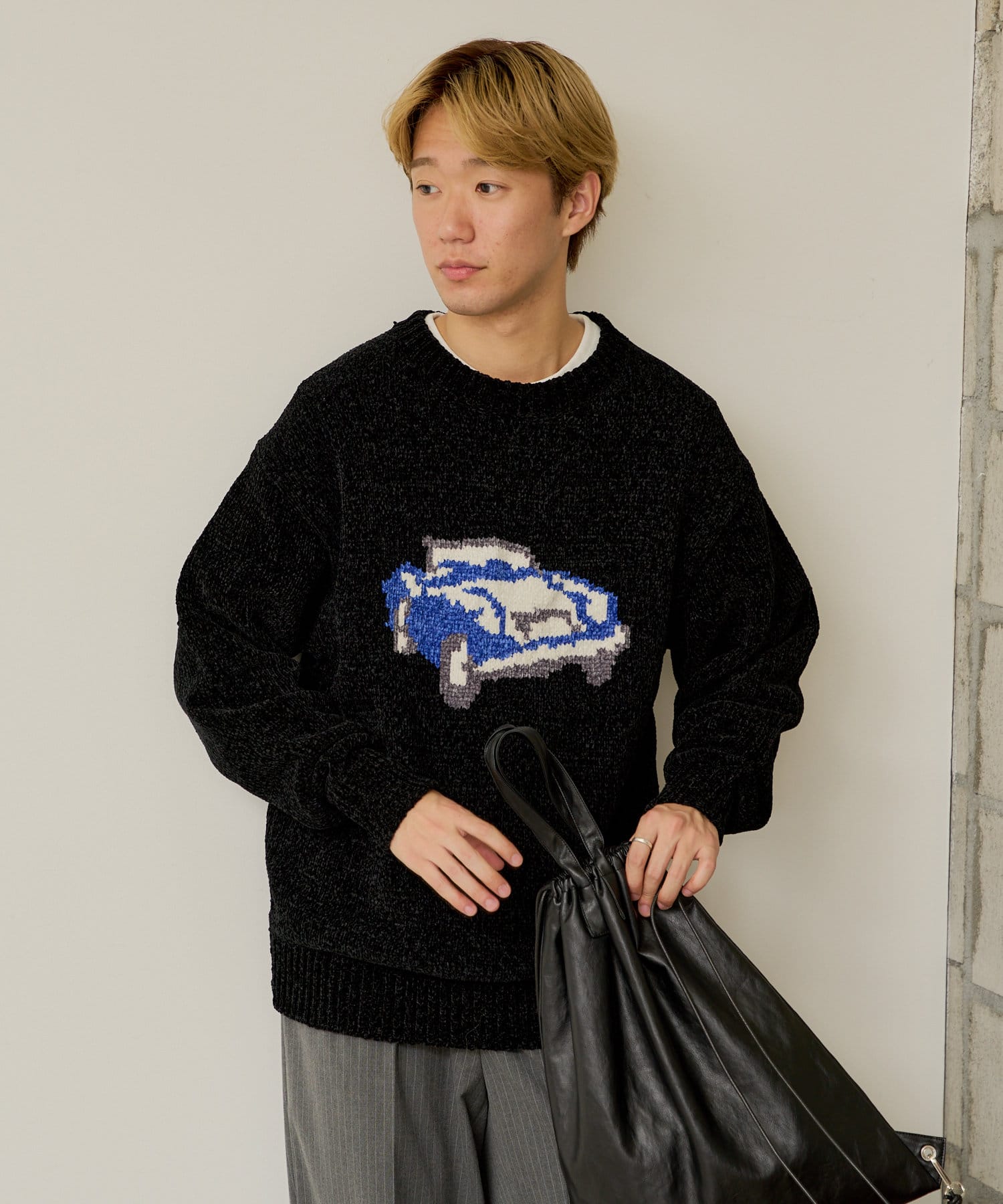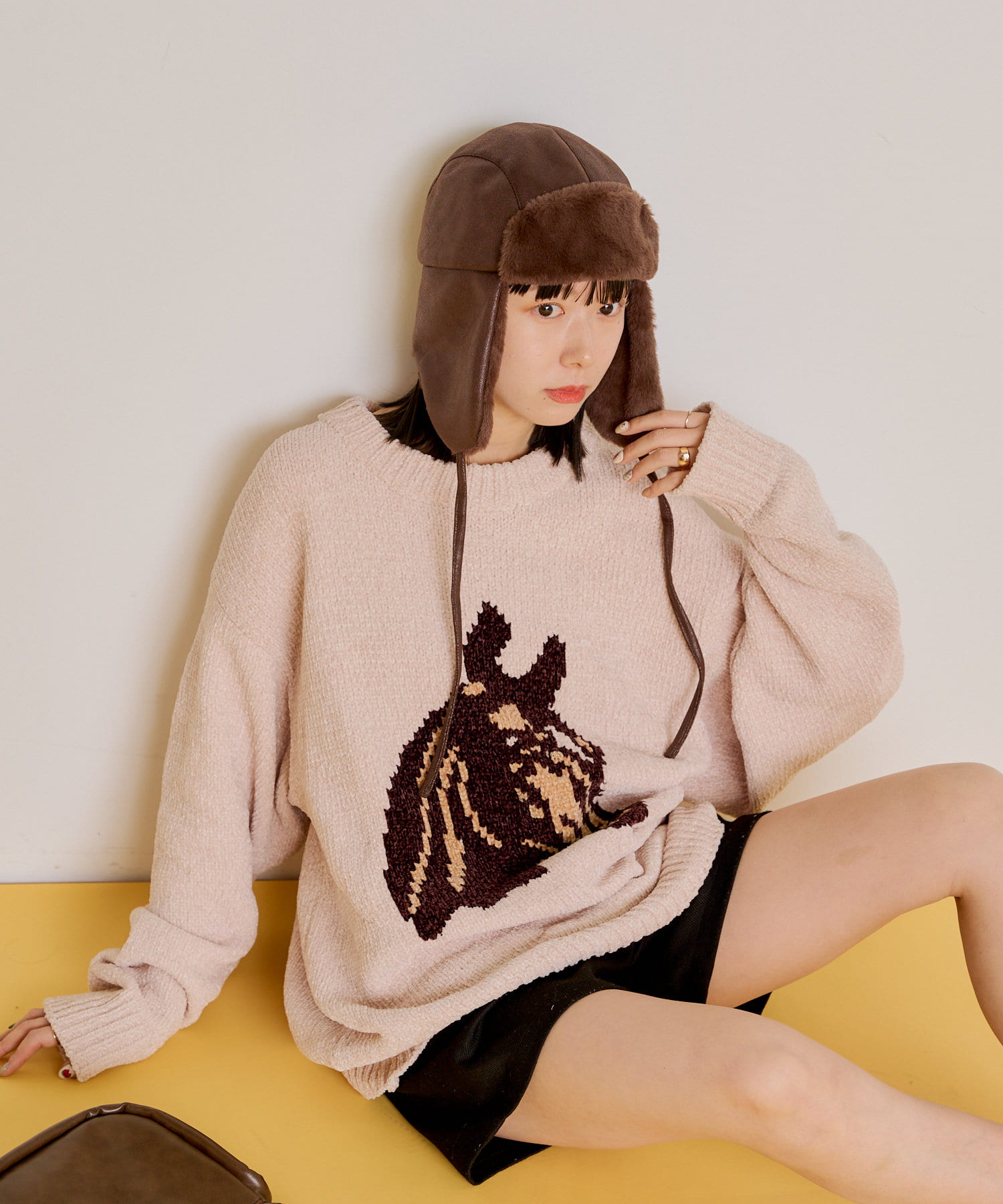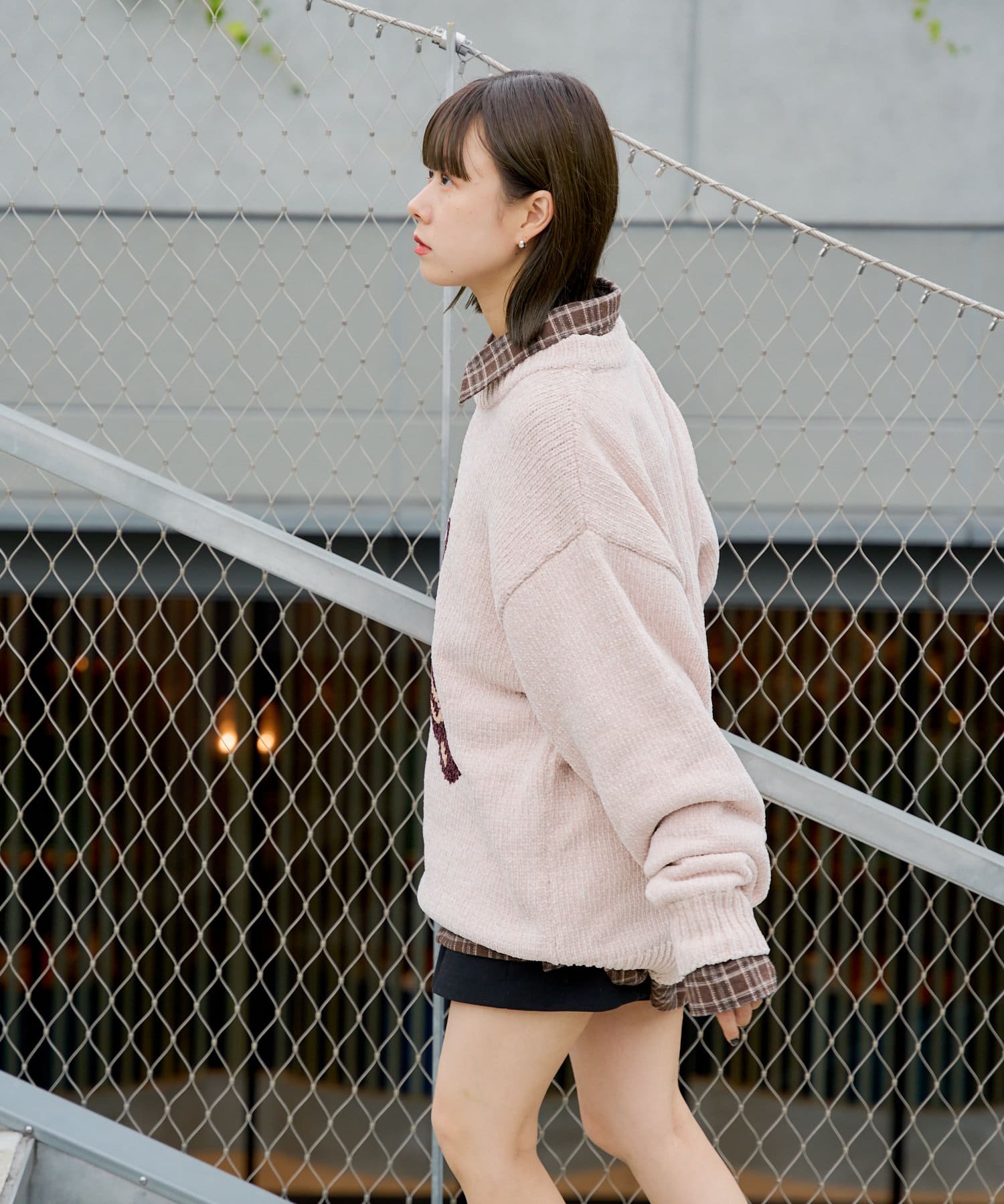 【WHIMSIC/新色追加】モールヤーンロゴニットプルオーバー
