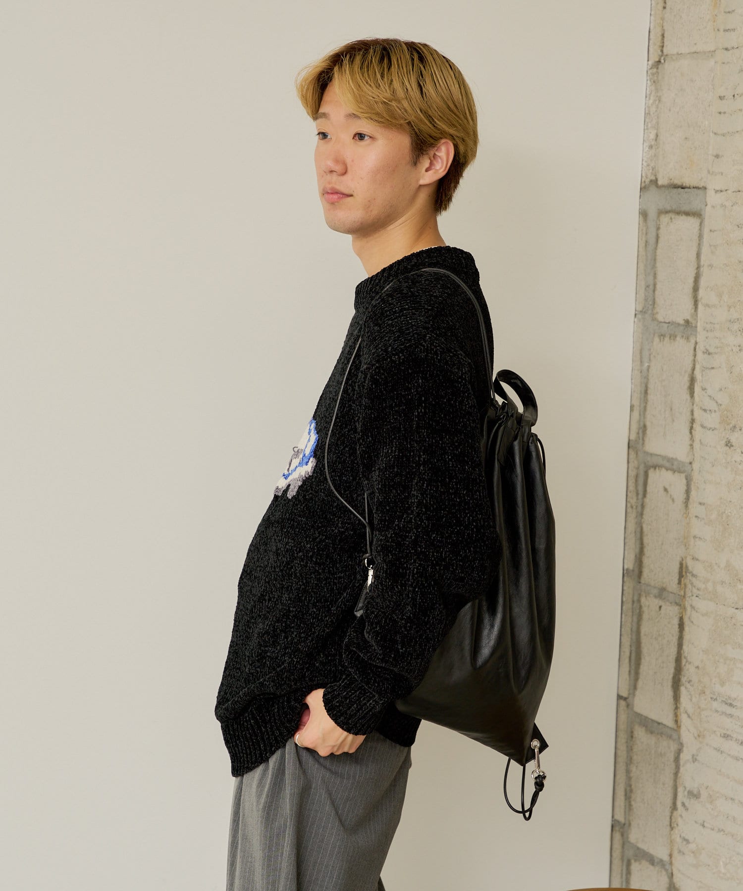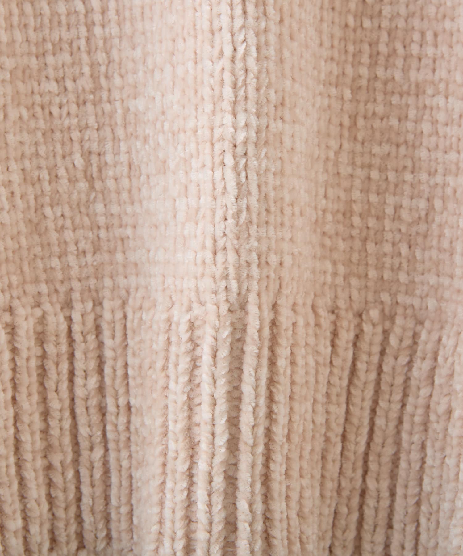 羽毛のような肌触りでふんわりとしたモール糸を使用したロゴニットプルオーバーです。