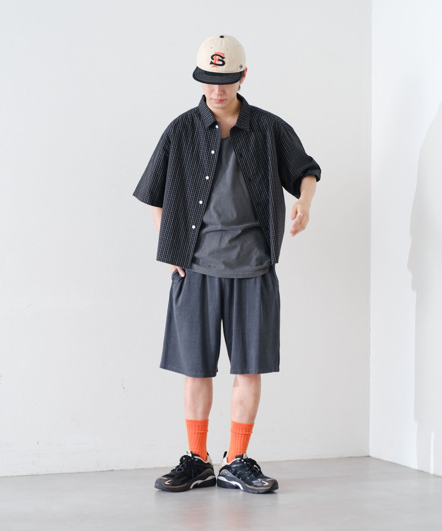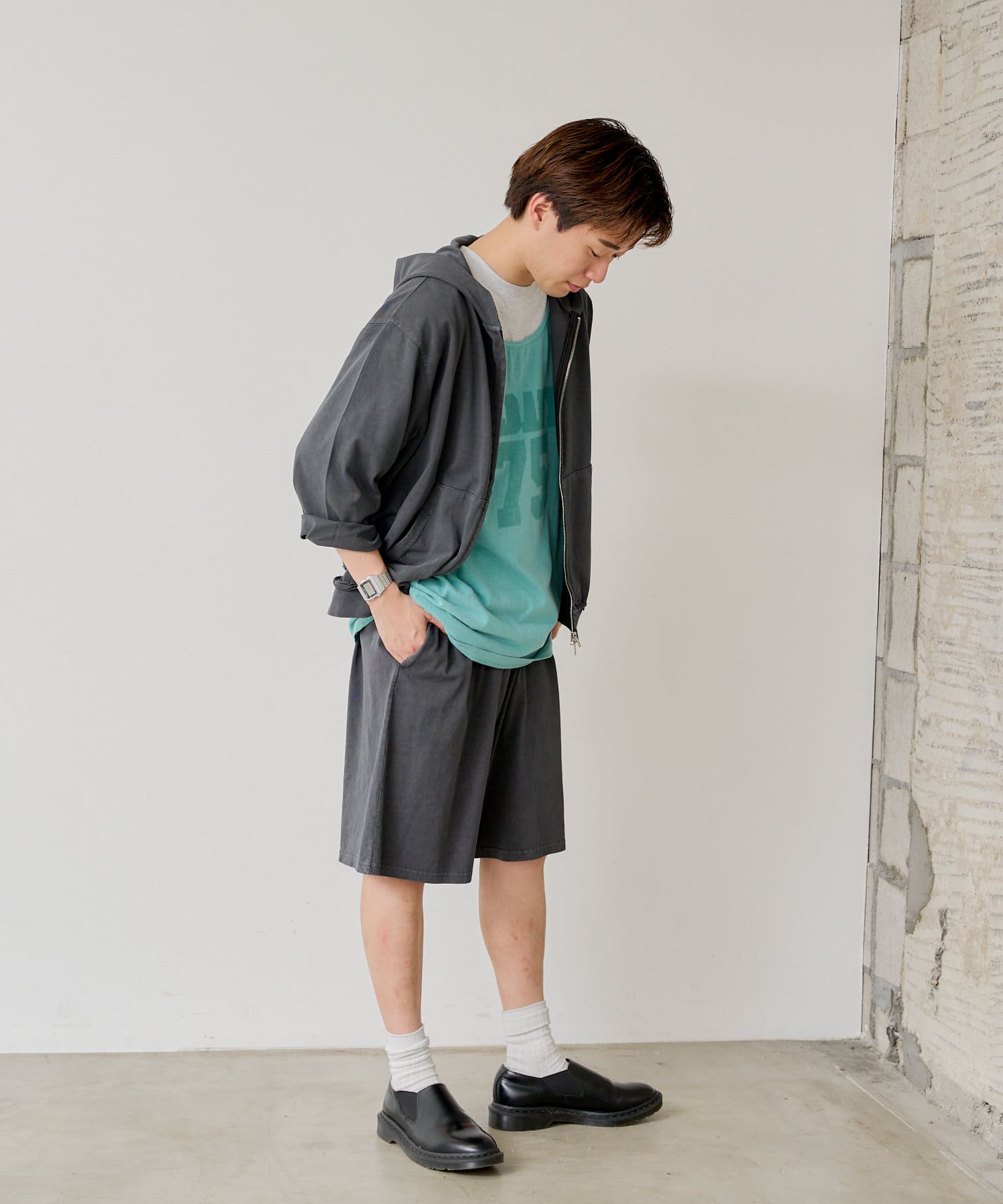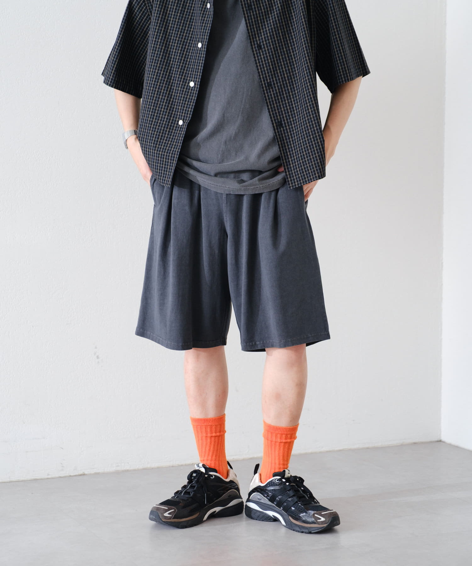 【UNISEX】PIGMENT DYE CUT SEW WIDE SHORTS