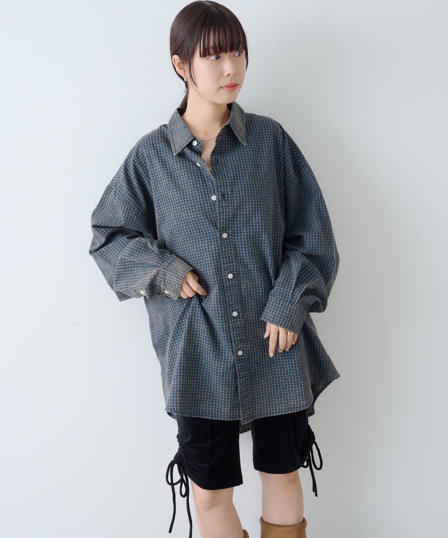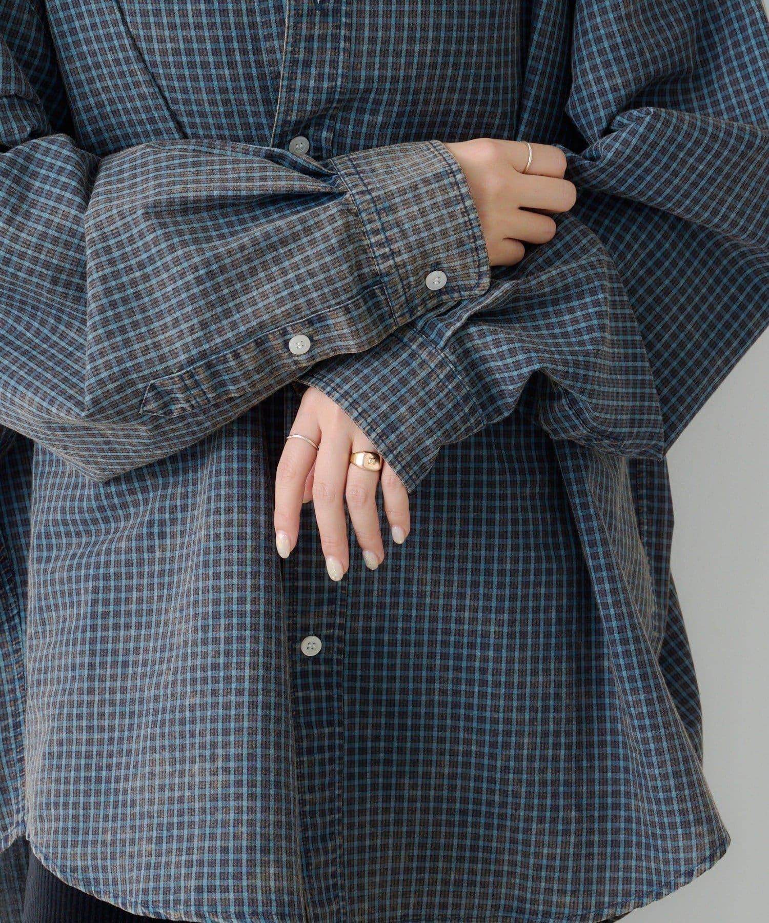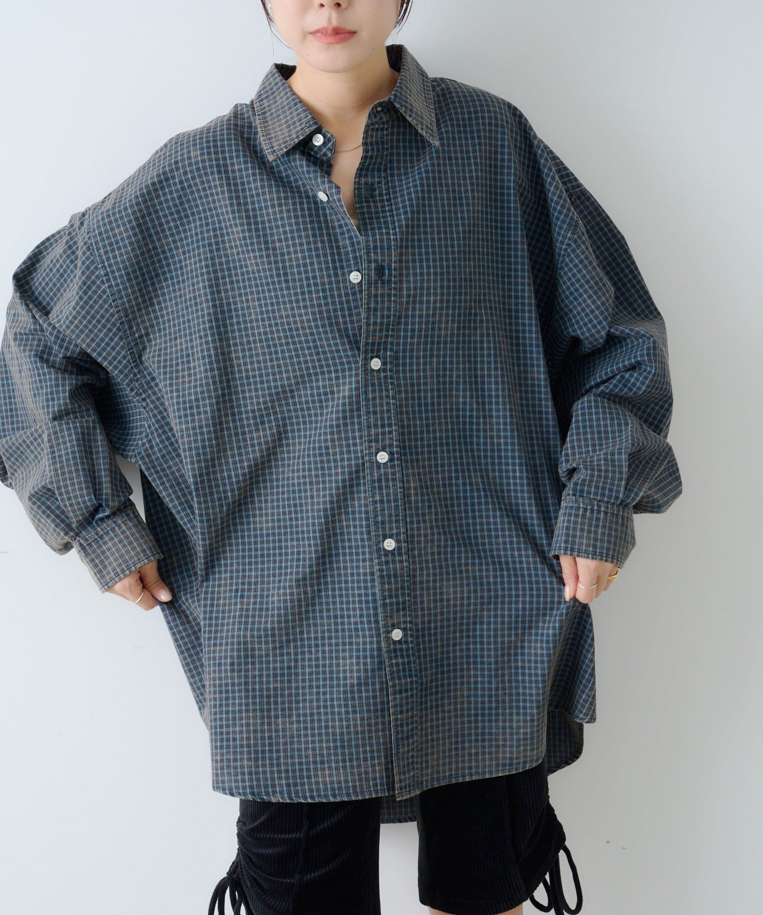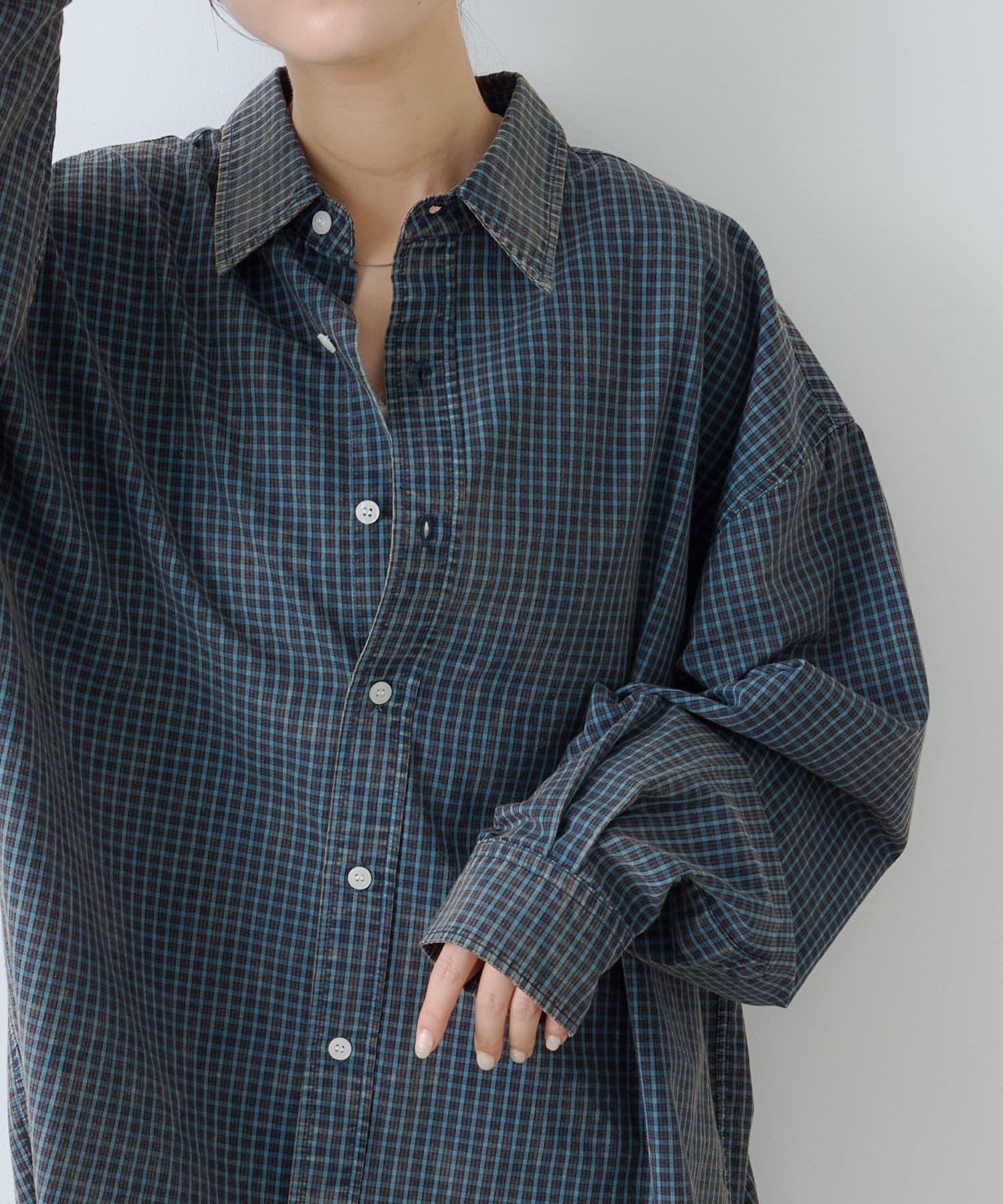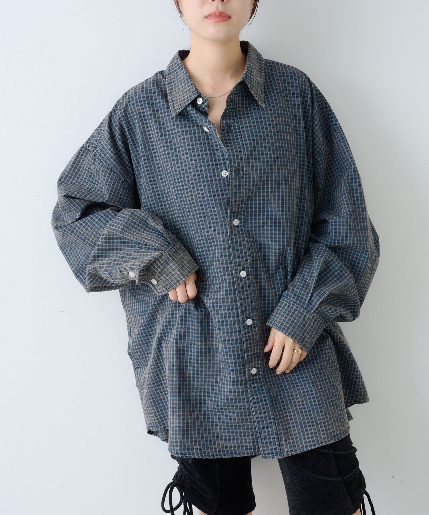 【WHIMSIC】アシッドウォッシュプラッドシャツ