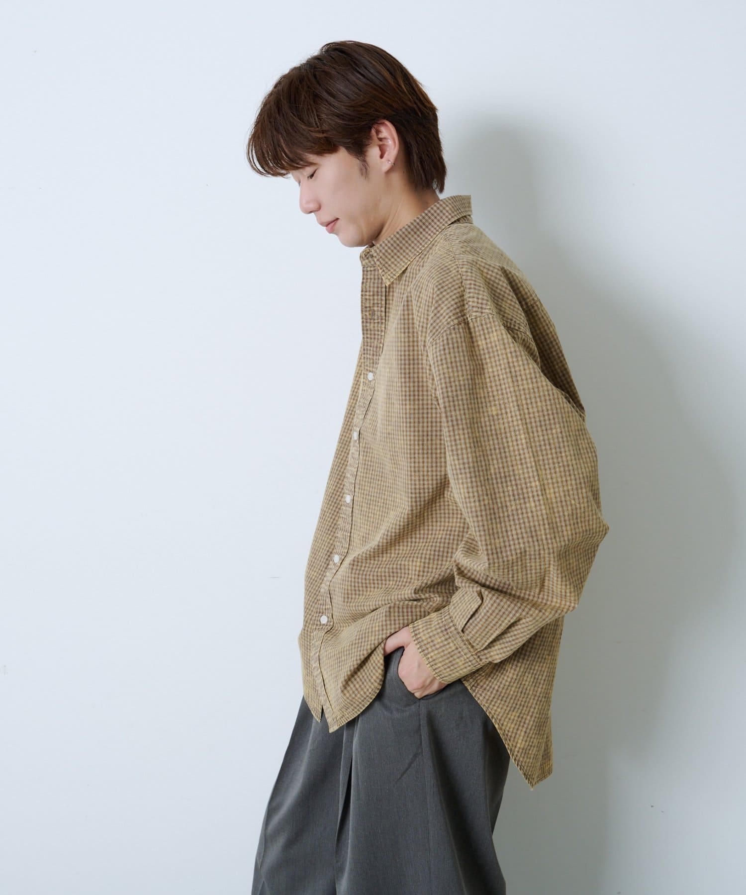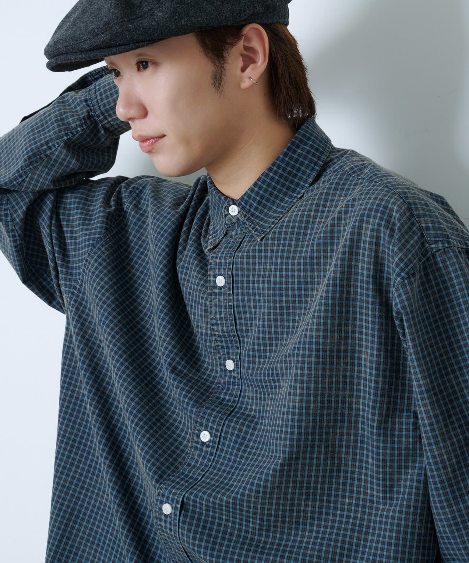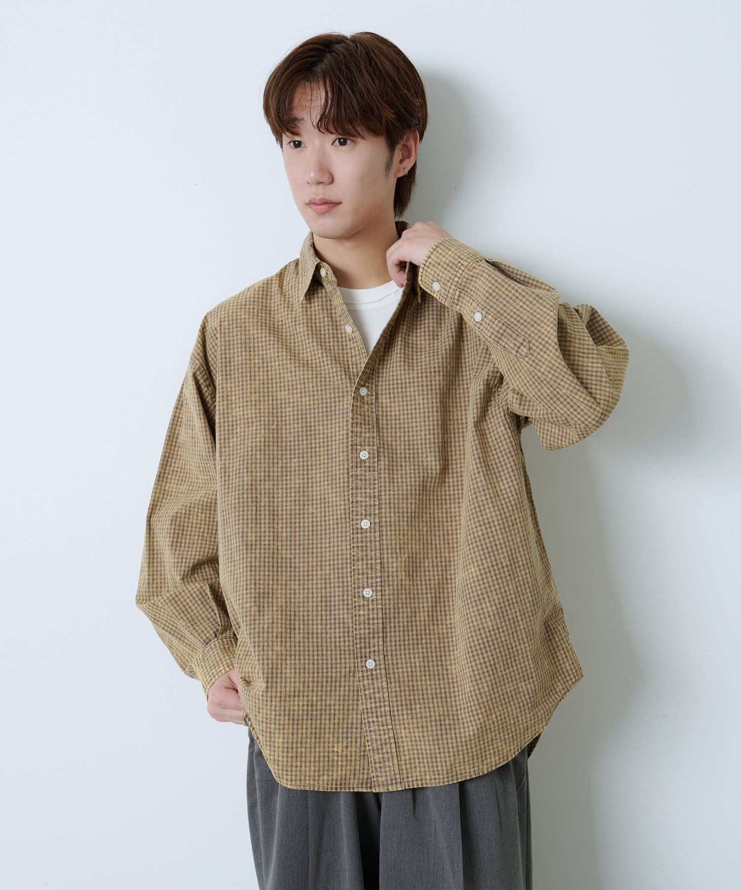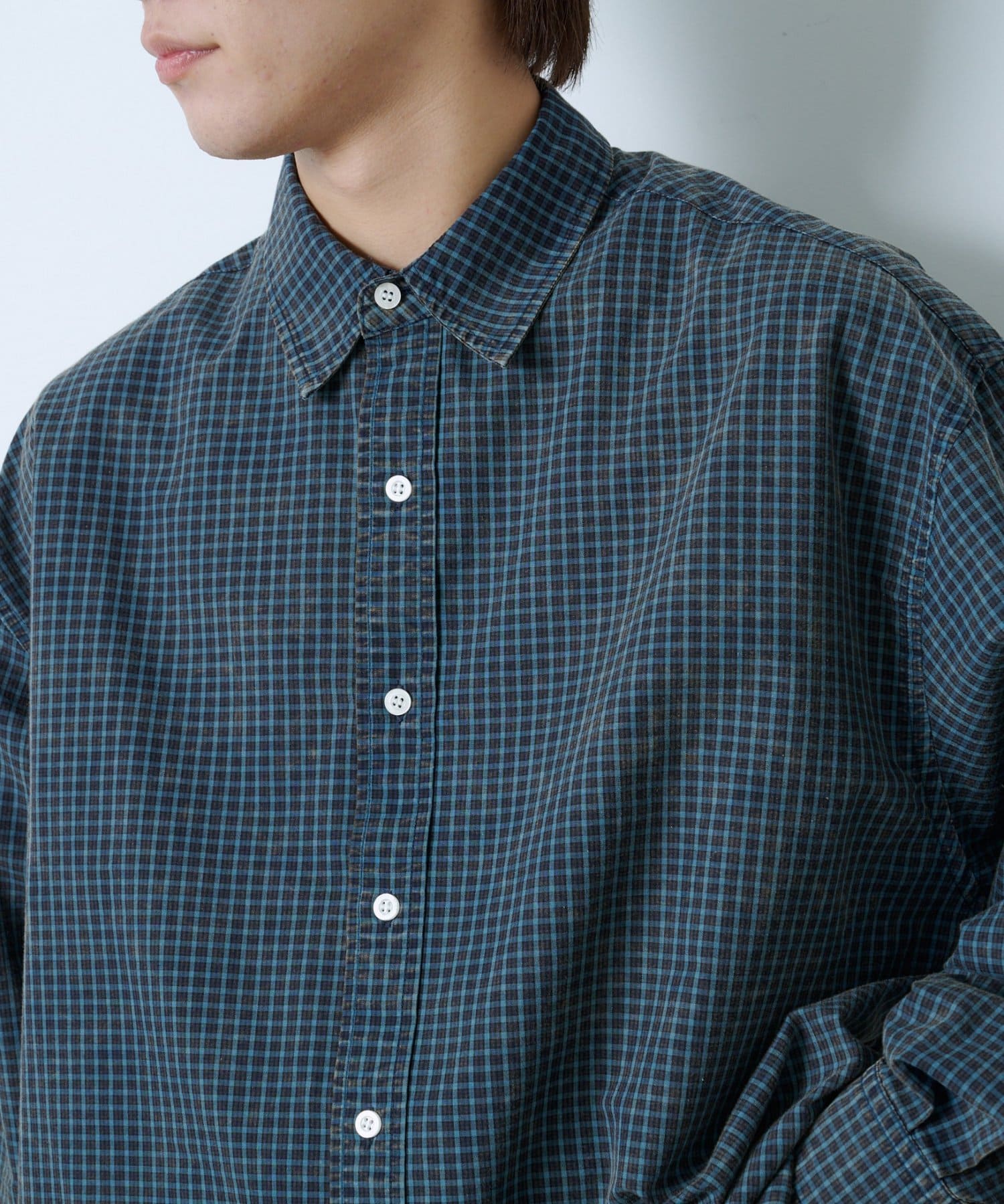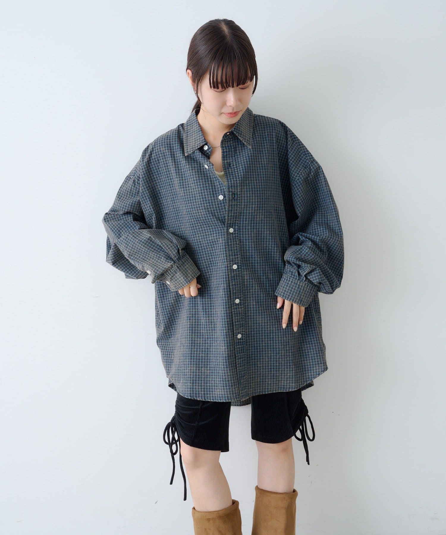 【WHIMSIC】アシッドウォッシュプラッドシャツ