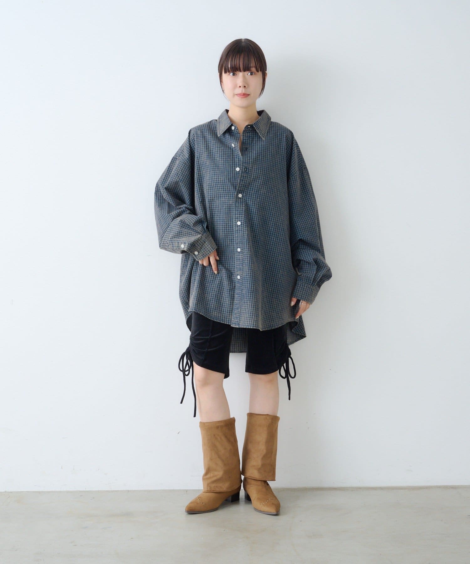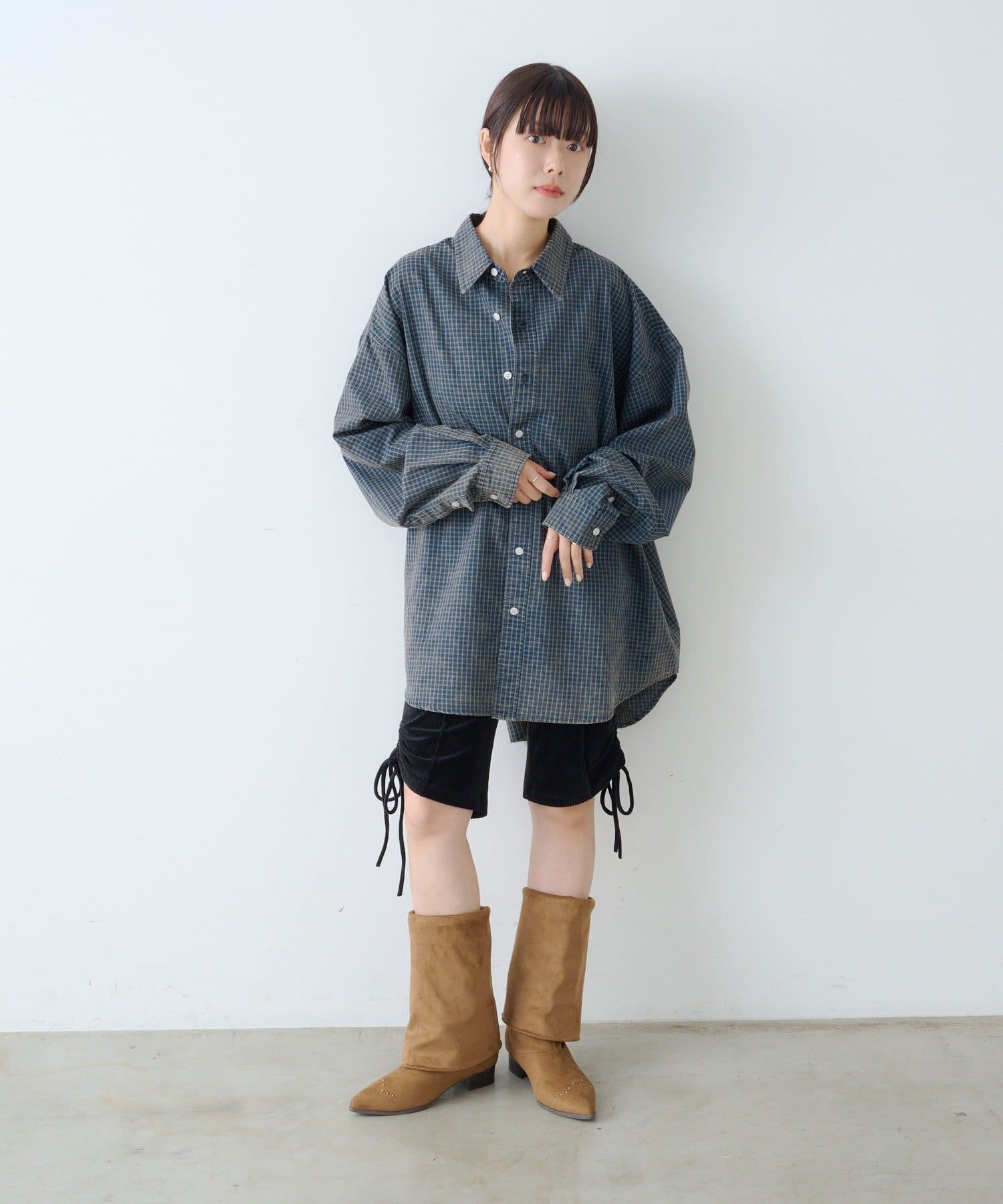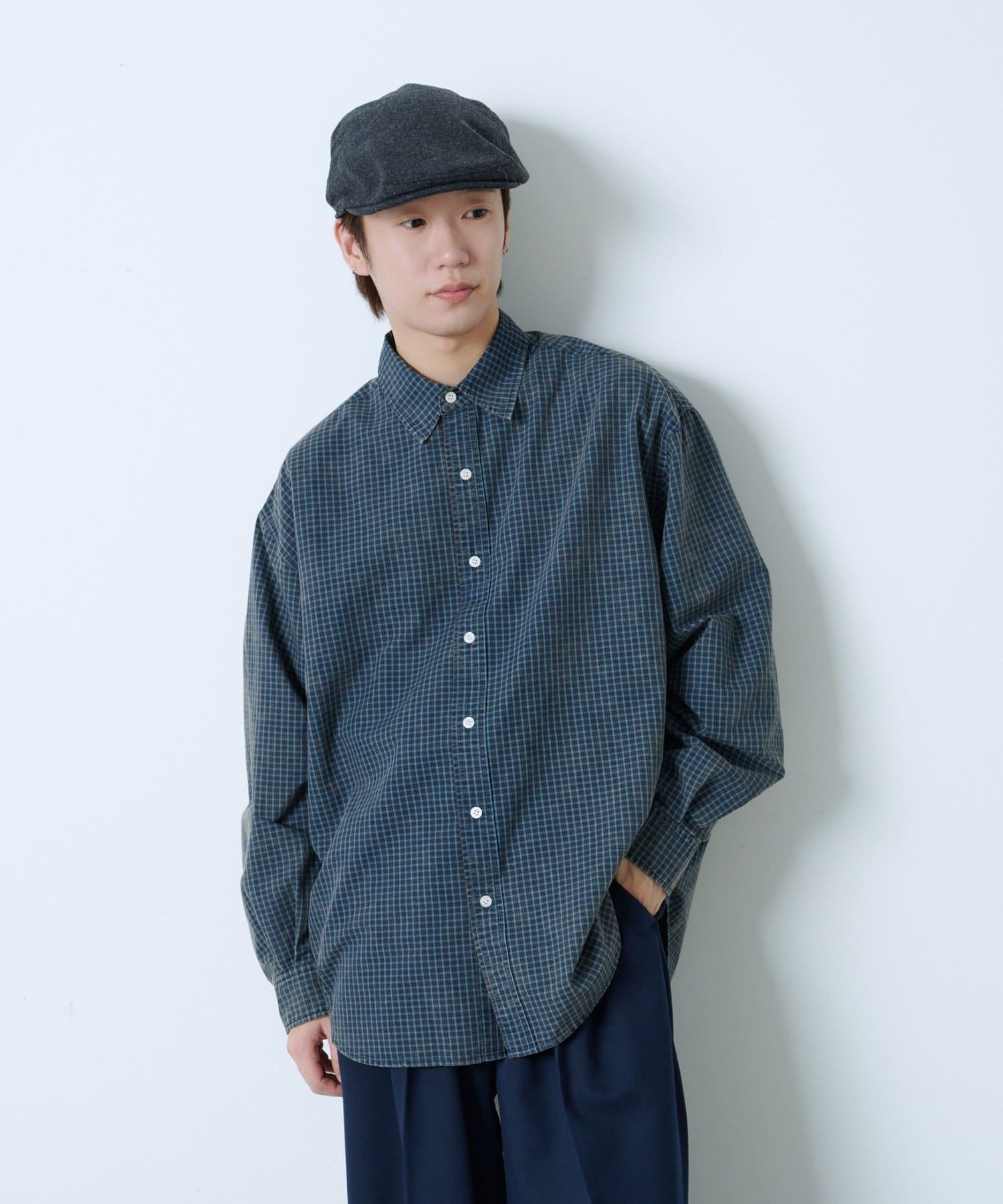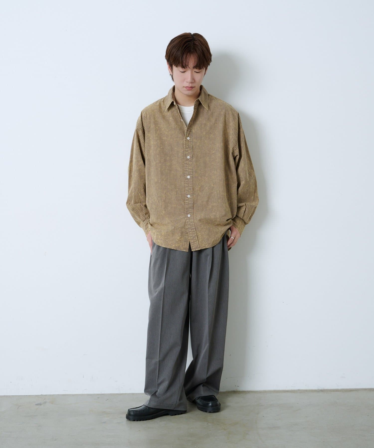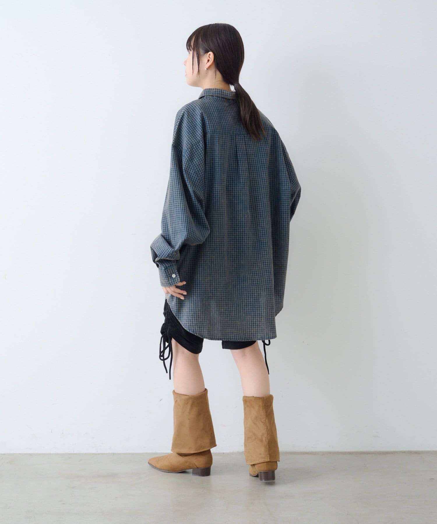 【WHIMSIC】アシッドウォッシュプラッドシャツ