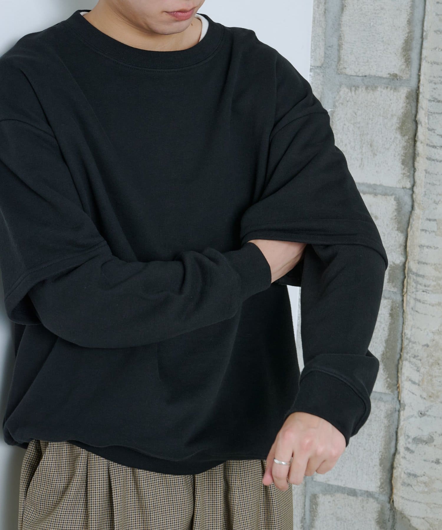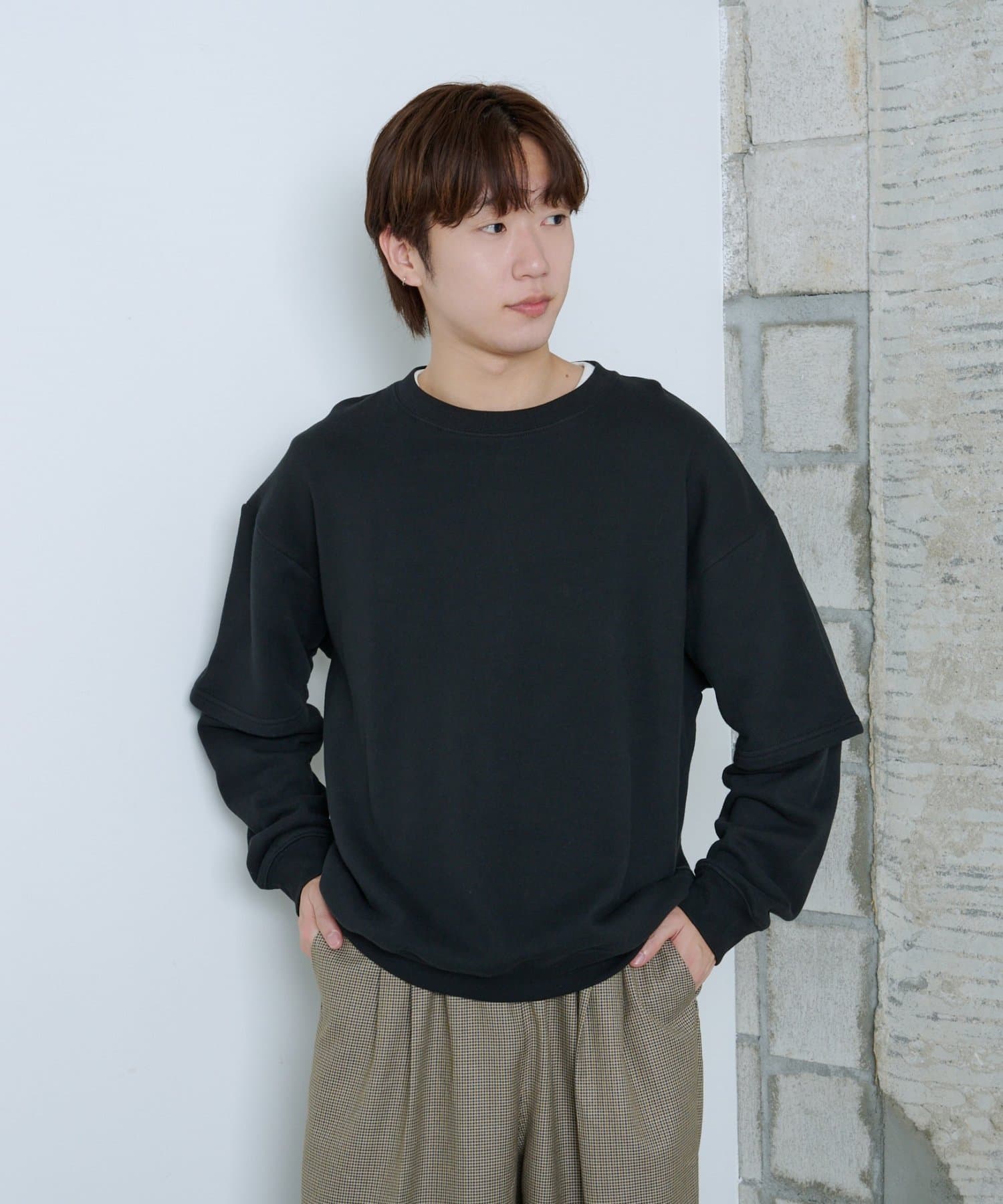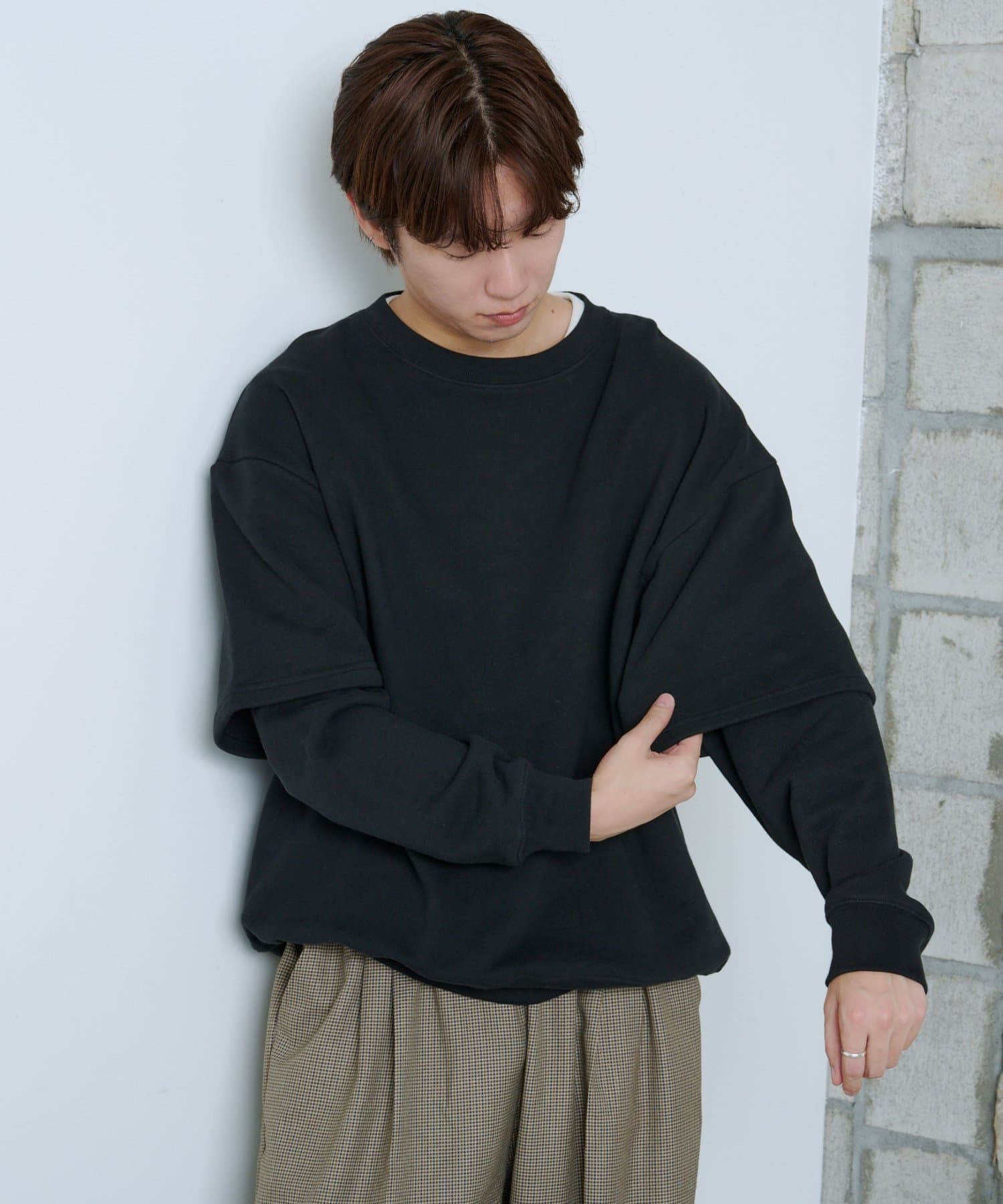 【UNISEX】LAYERED SLEEVE SWEAT SHIRT