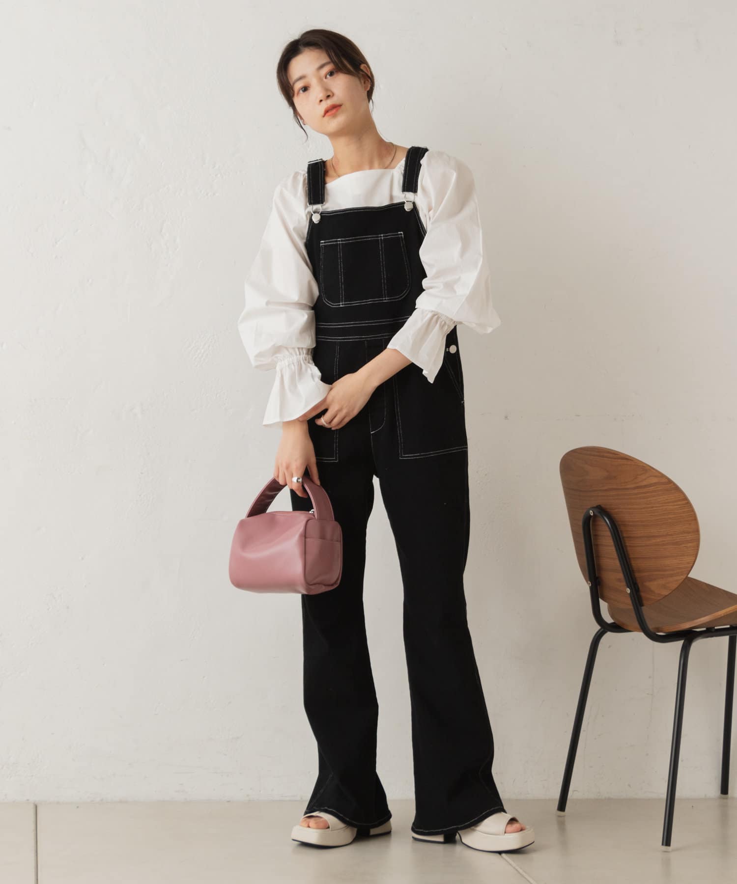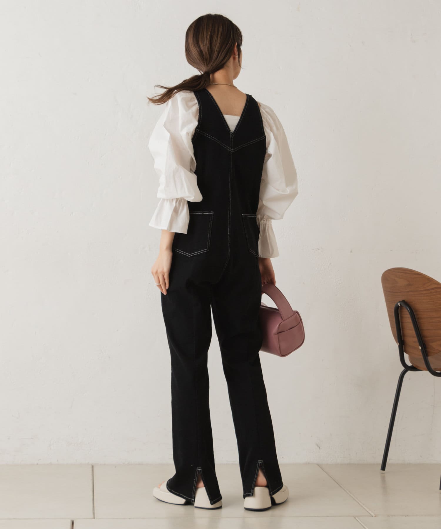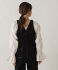 スクエア開きのブラウスなので、ボトムはパンツを合わせると程よくカジュアルに着て頂けます。