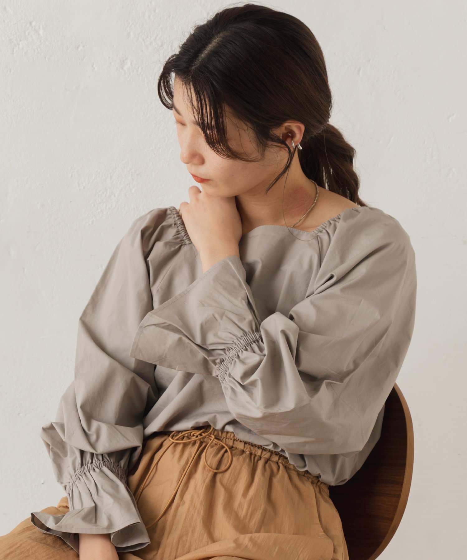 【22SSカタログ掲載アイテム】スクエアギャザーブラウス