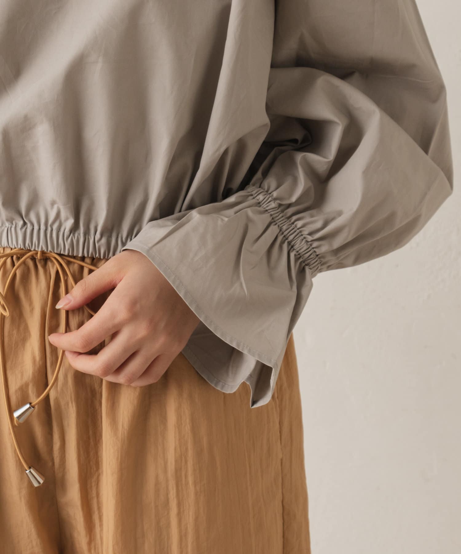 袖口はゴムが入ったベルスリーブ。