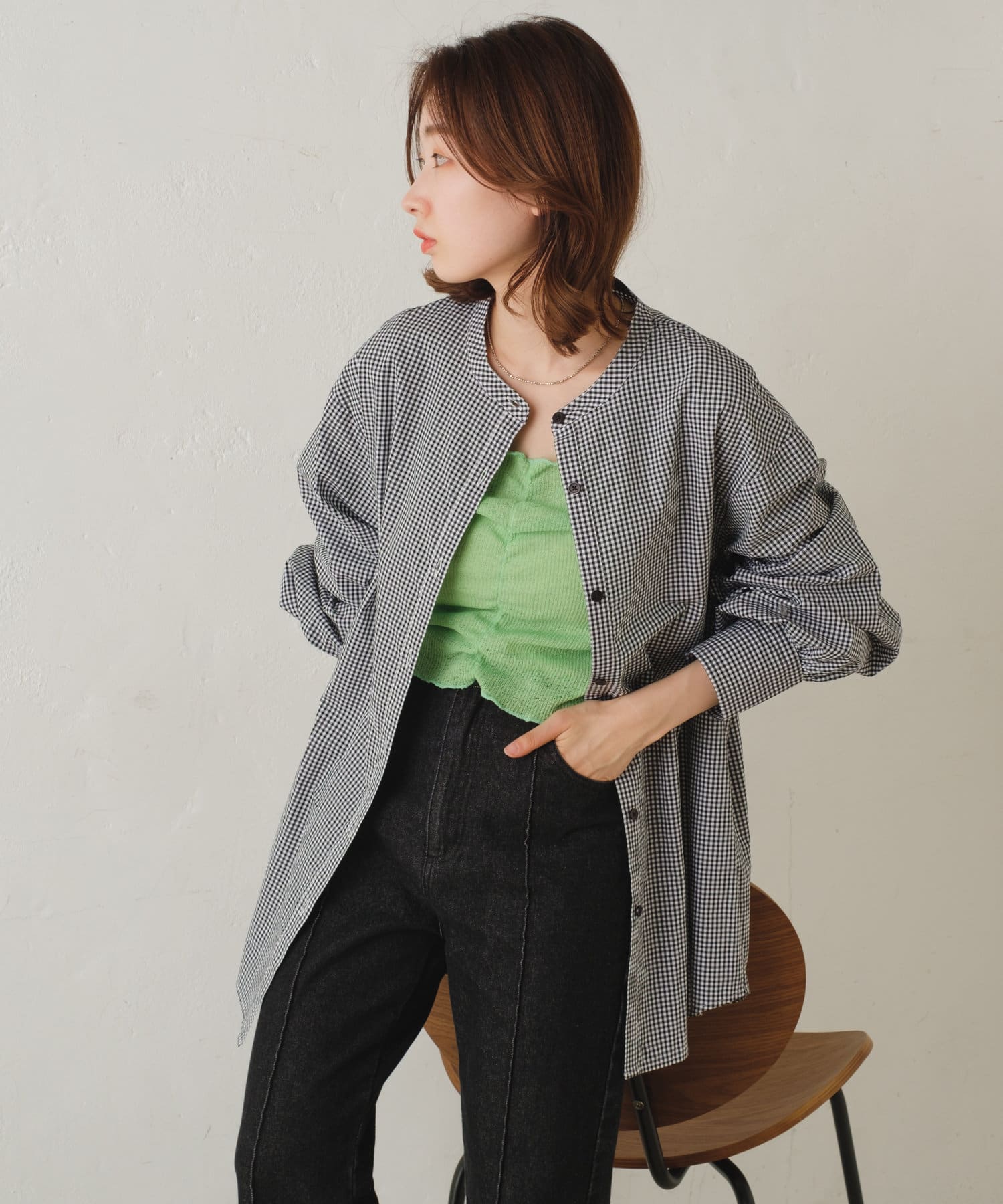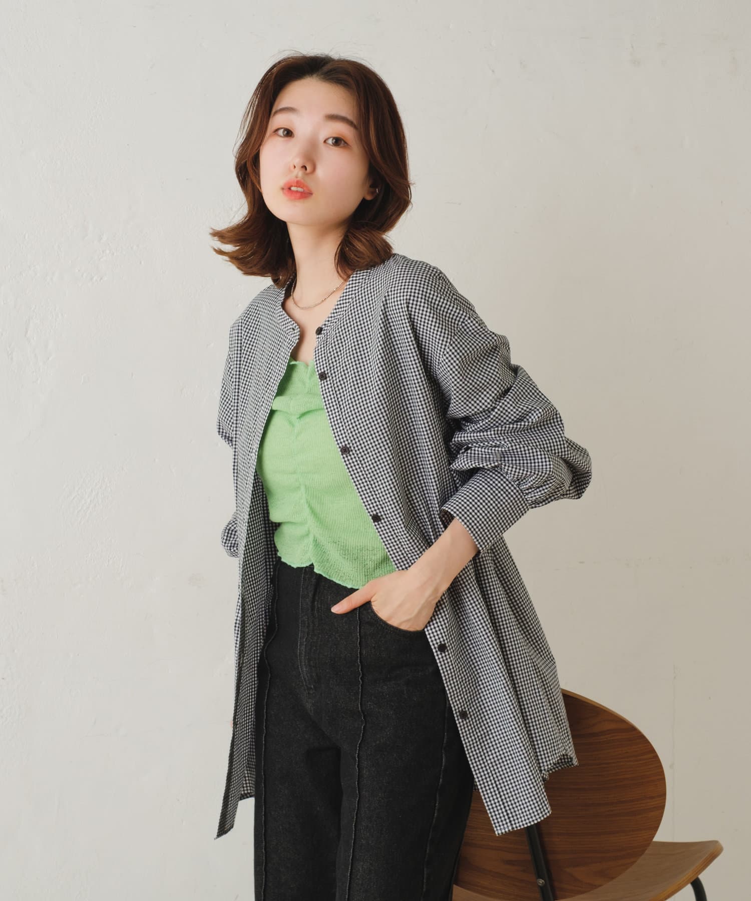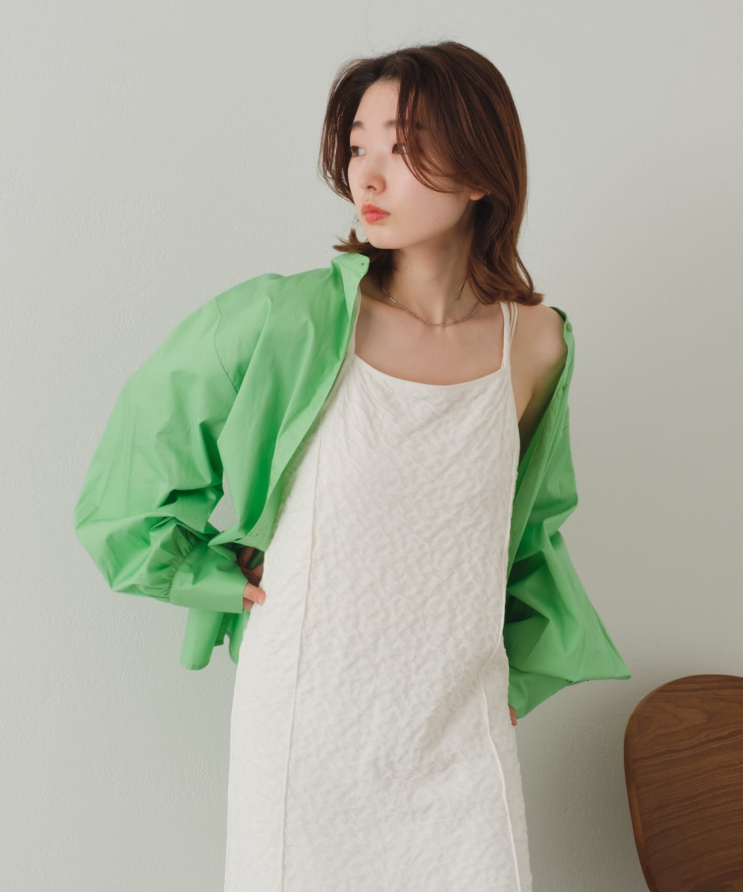 春から夏にかけては、Tシャツやキャミソールにサラッと羽織るのがオススメです。