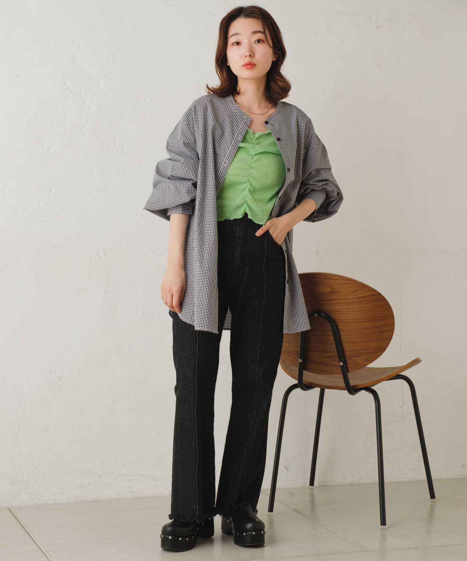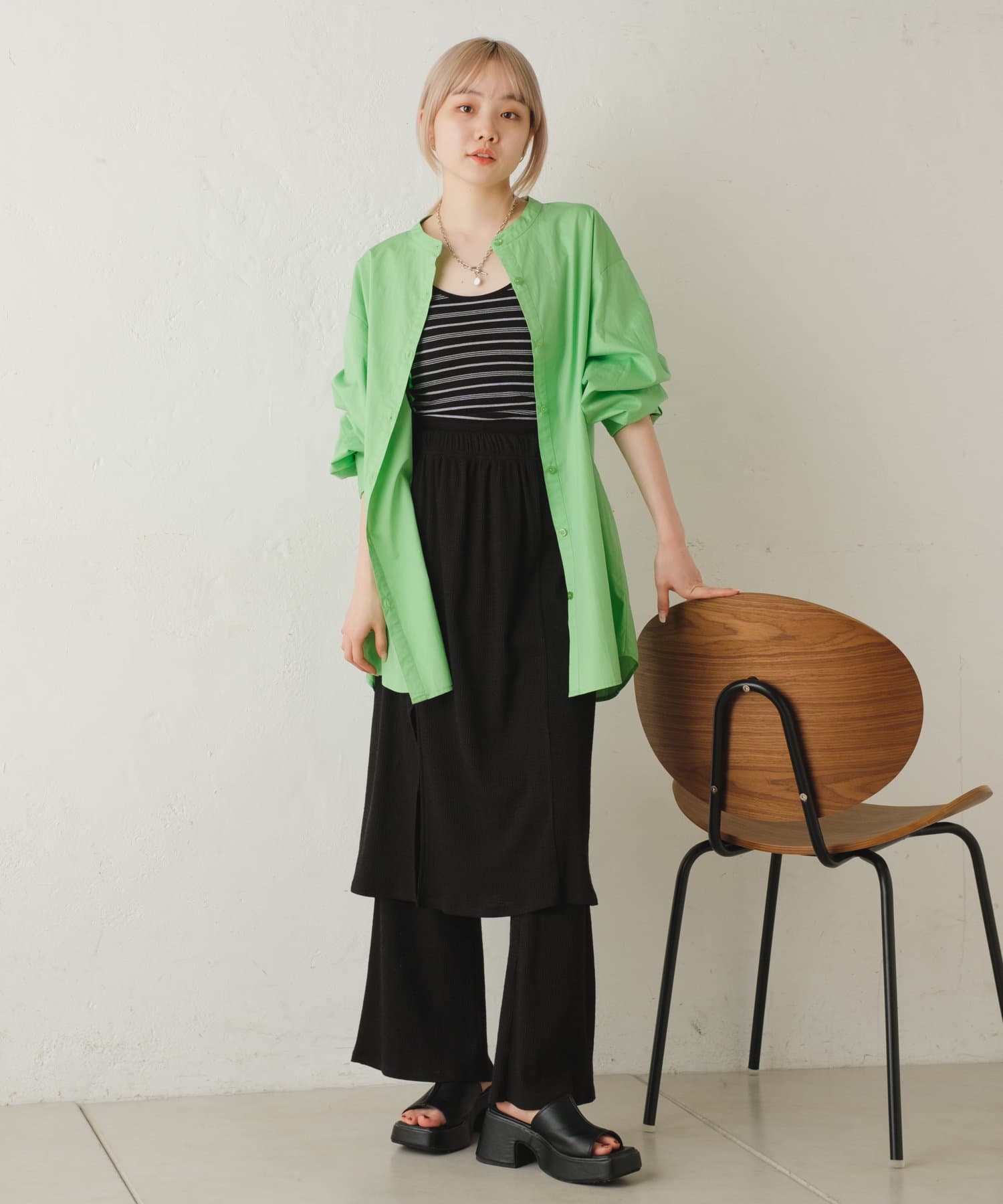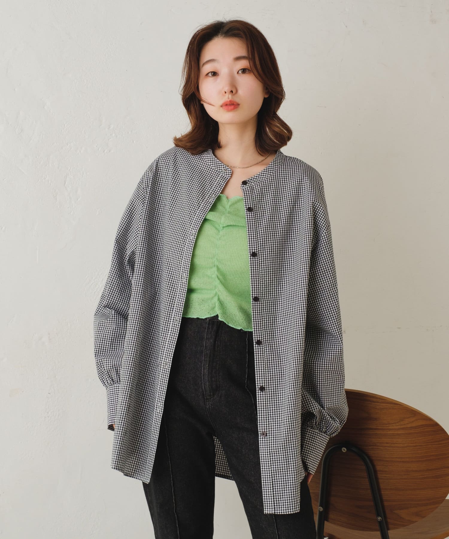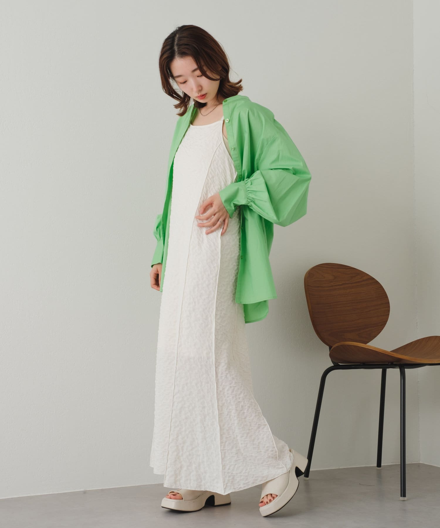 春から夏にかけては、Tシャツやキャミソールにサラッと羽織るのがオススメです。