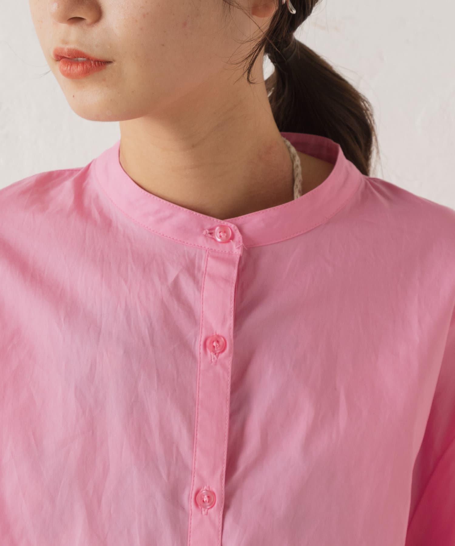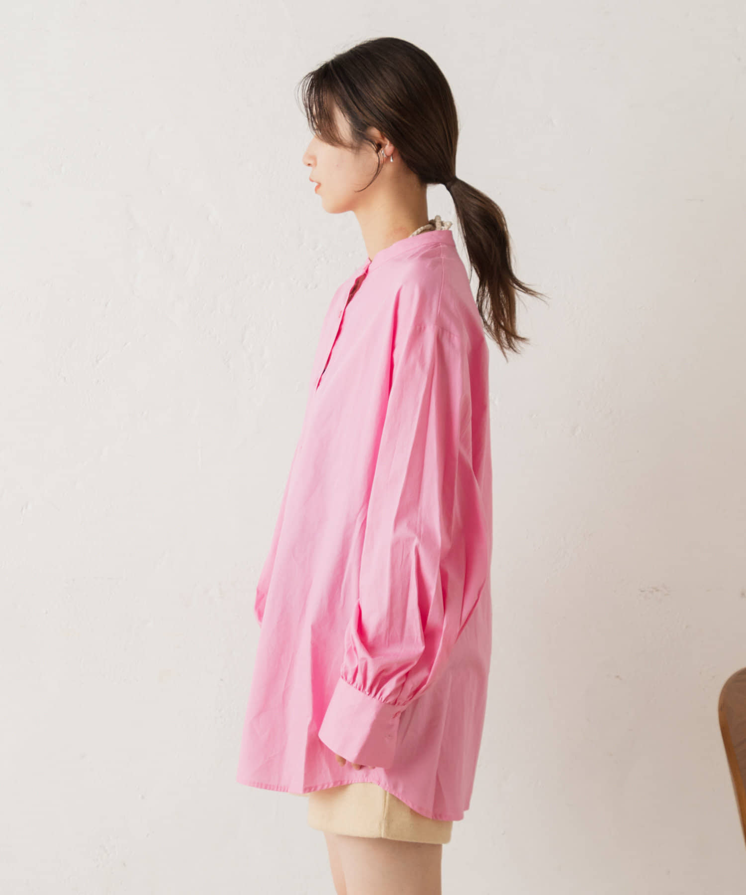 スタンドカラーのデザインなので、寒い日はハイネックを重ねて、