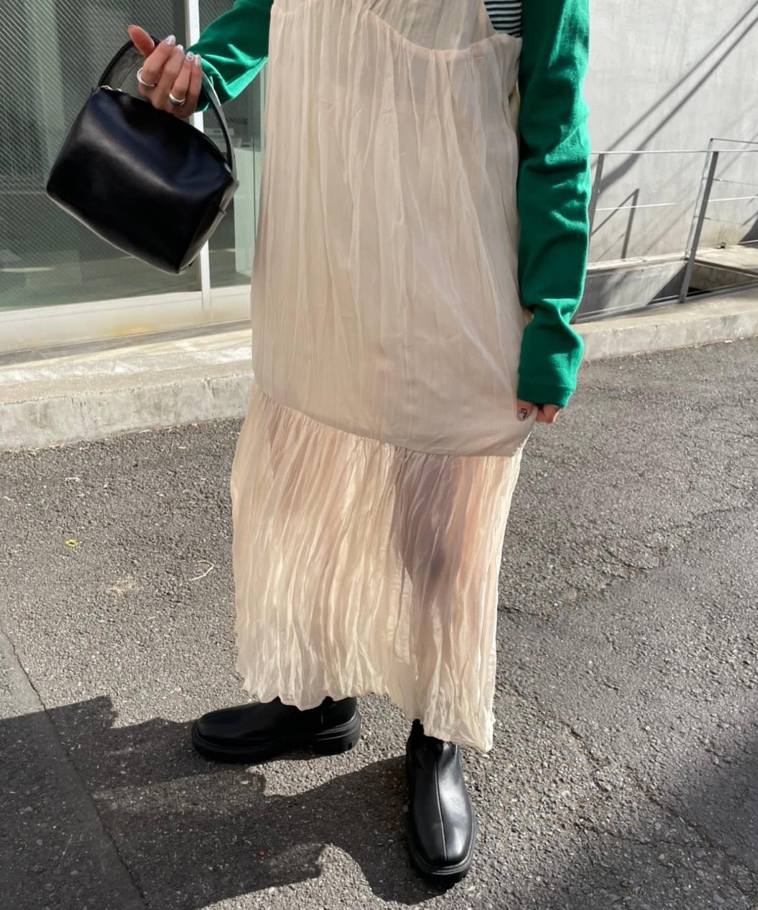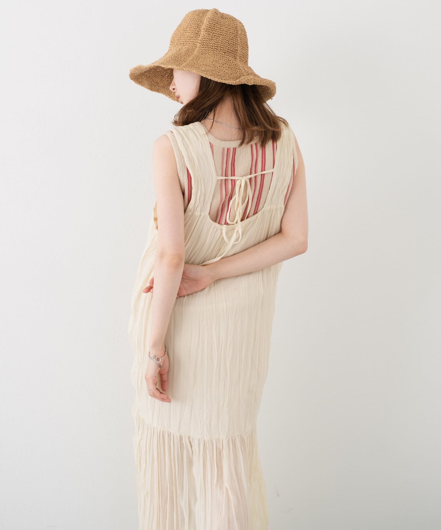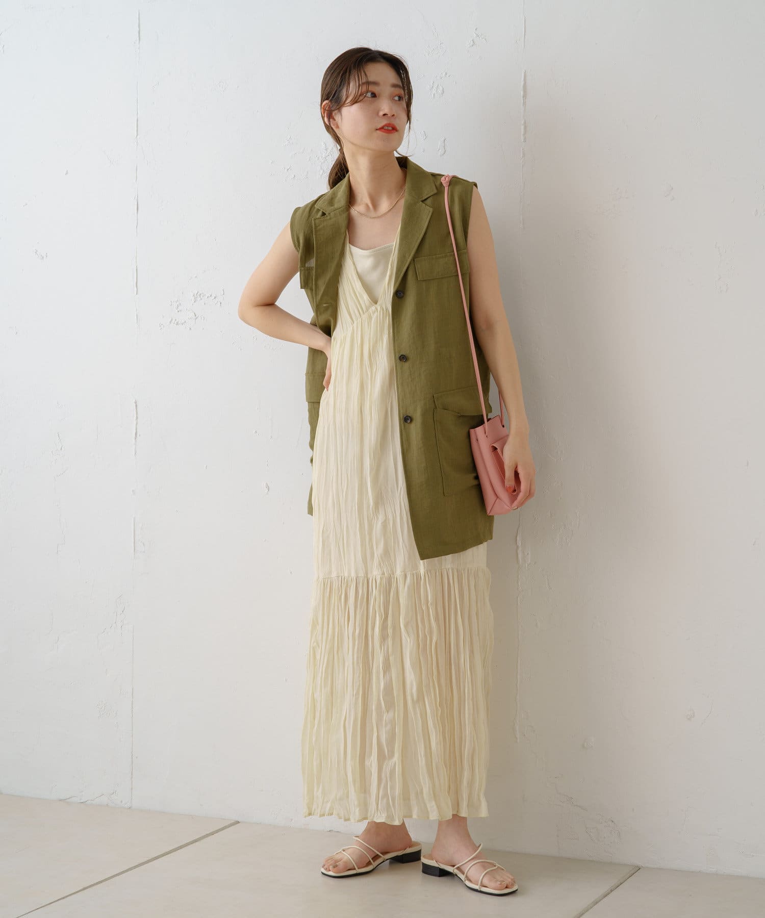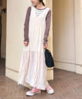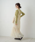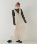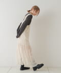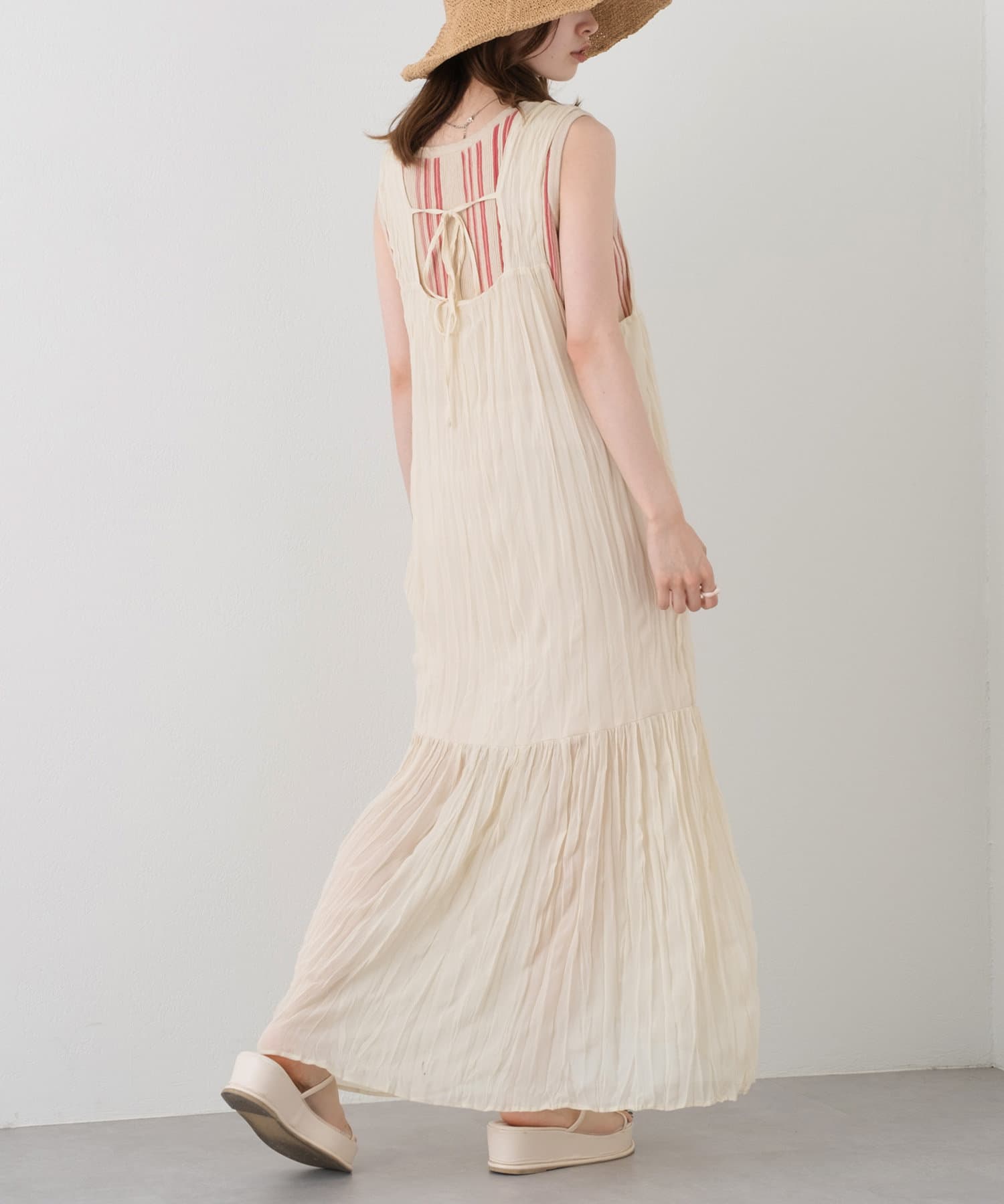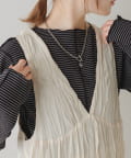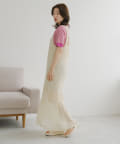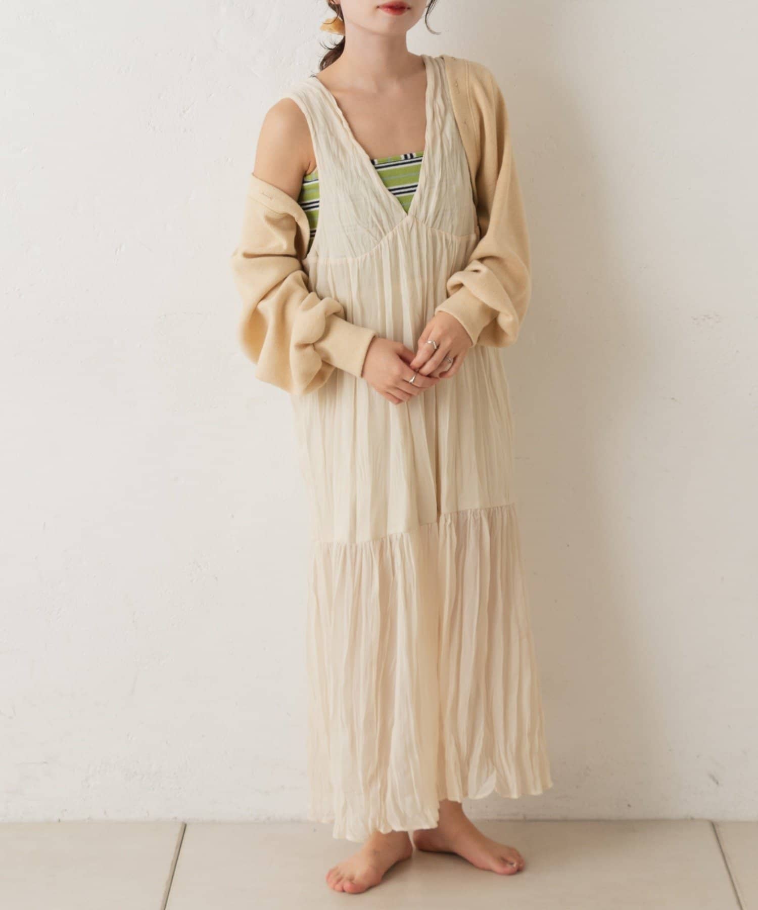 ティアード切り替えから裾にかけてはあえて裏地をつけず、透け感を出すことでマキシ丈でも軽やかに着こなせます。