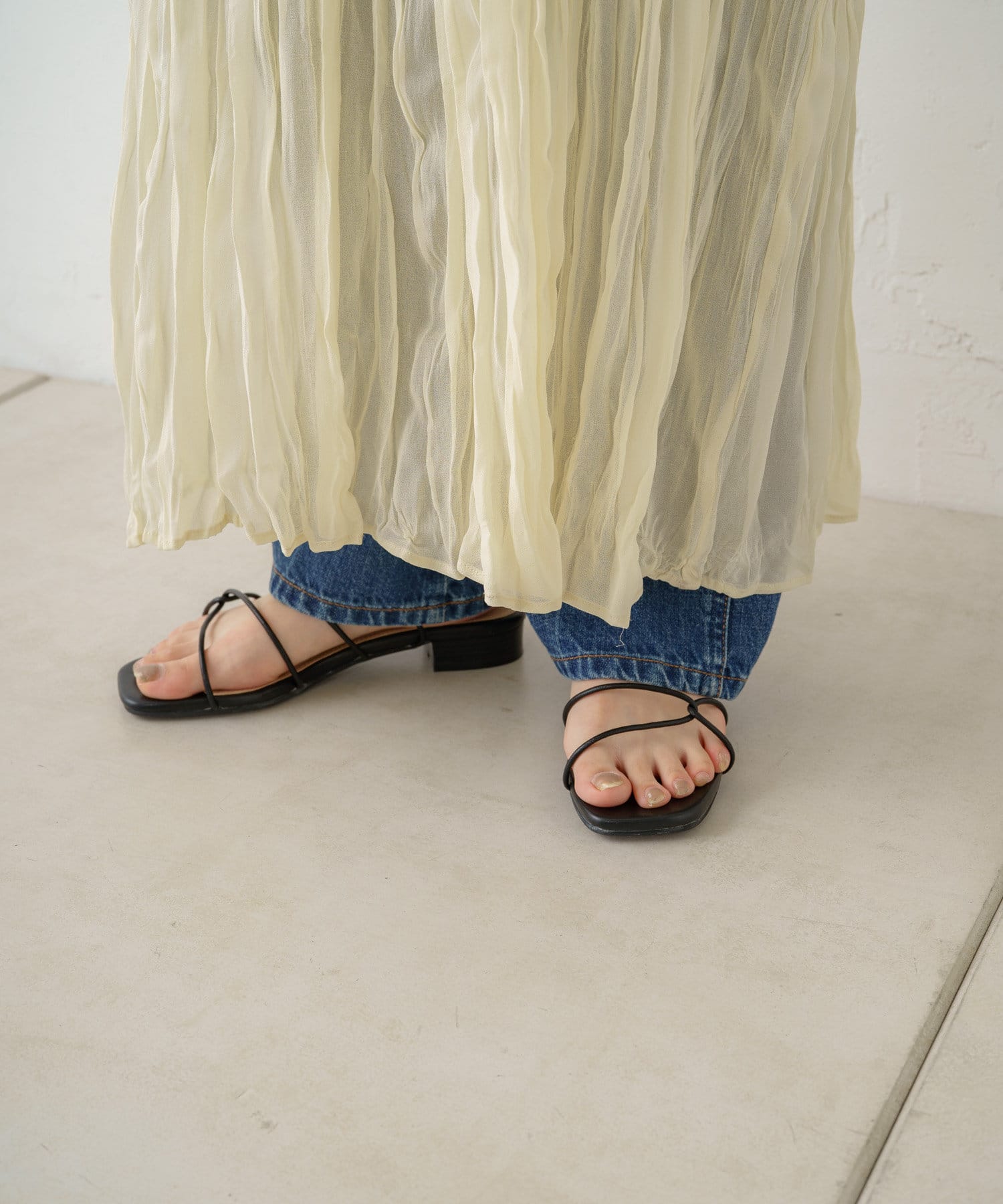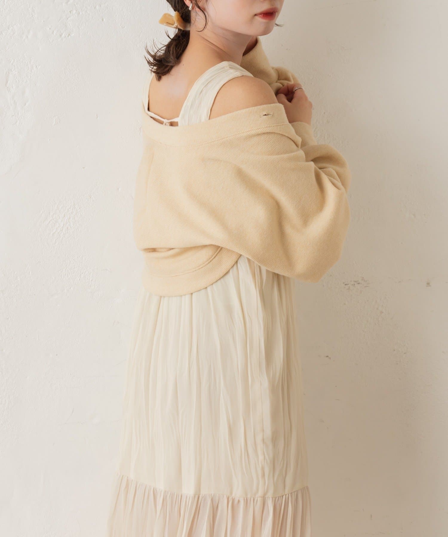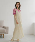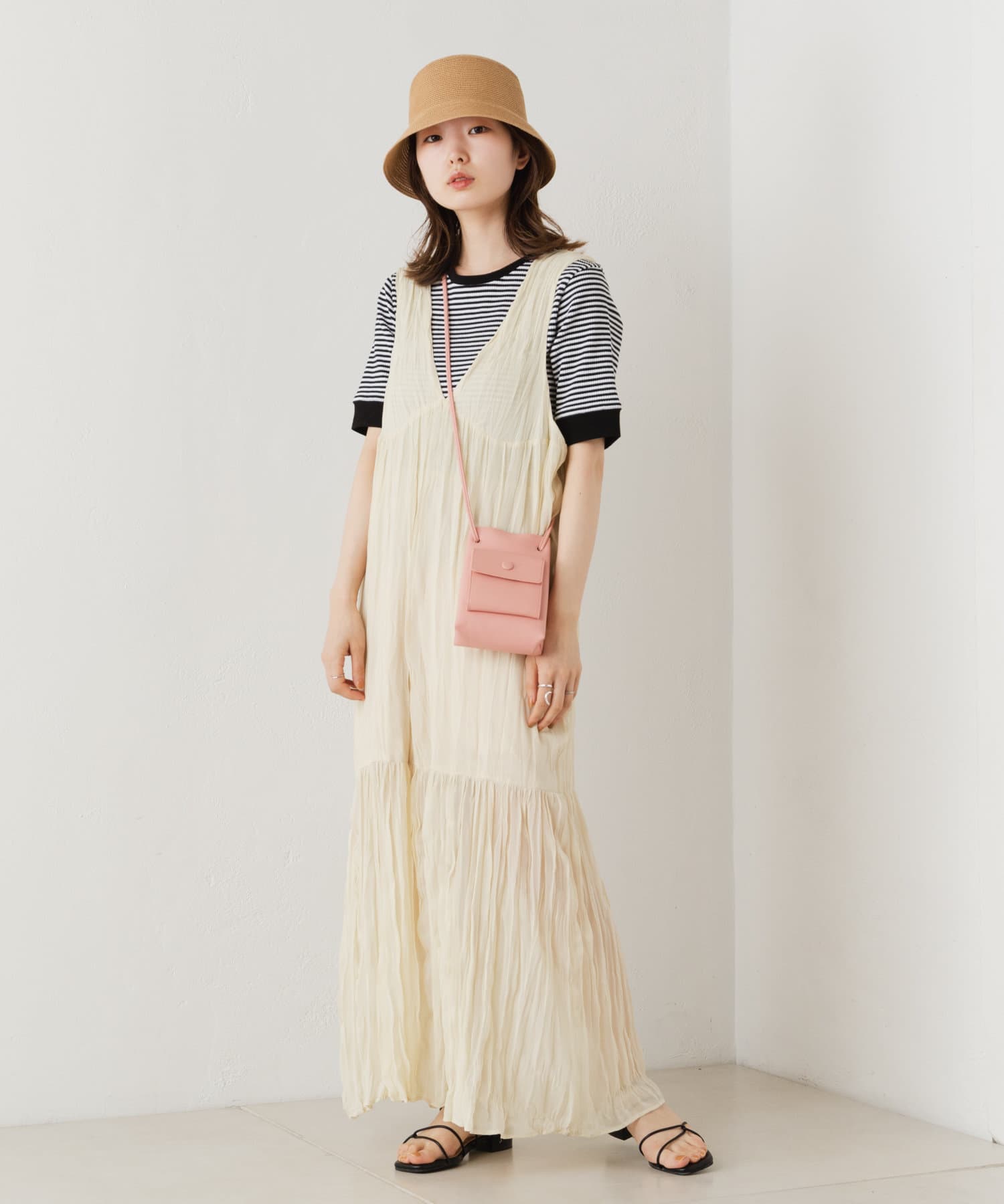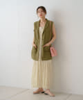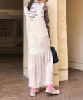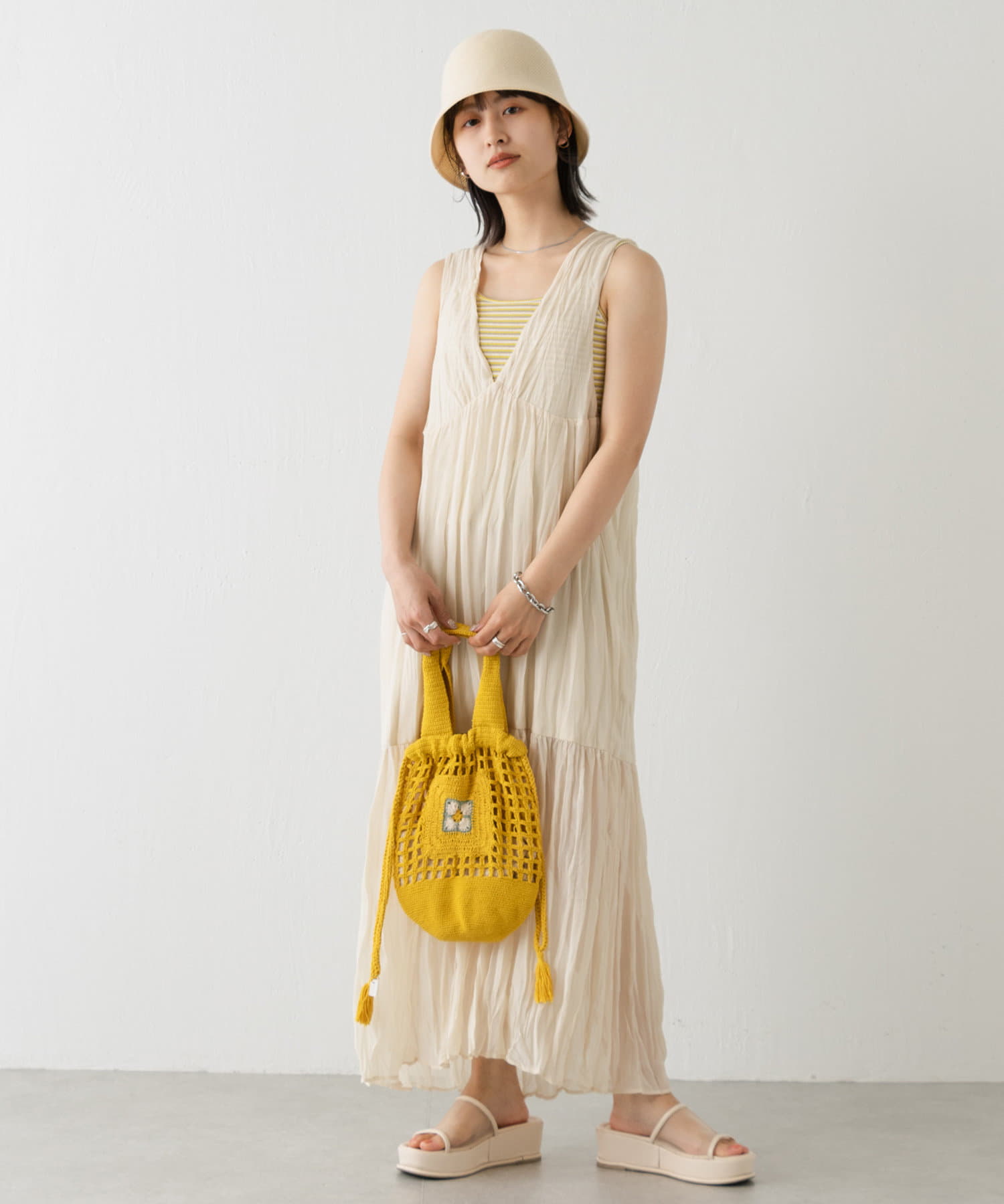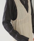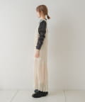 ティアード切り替えから裾にかけてはあえて裏地をつけず、透け感を出すことでマキシ丈でも軽やかに着こなせます。