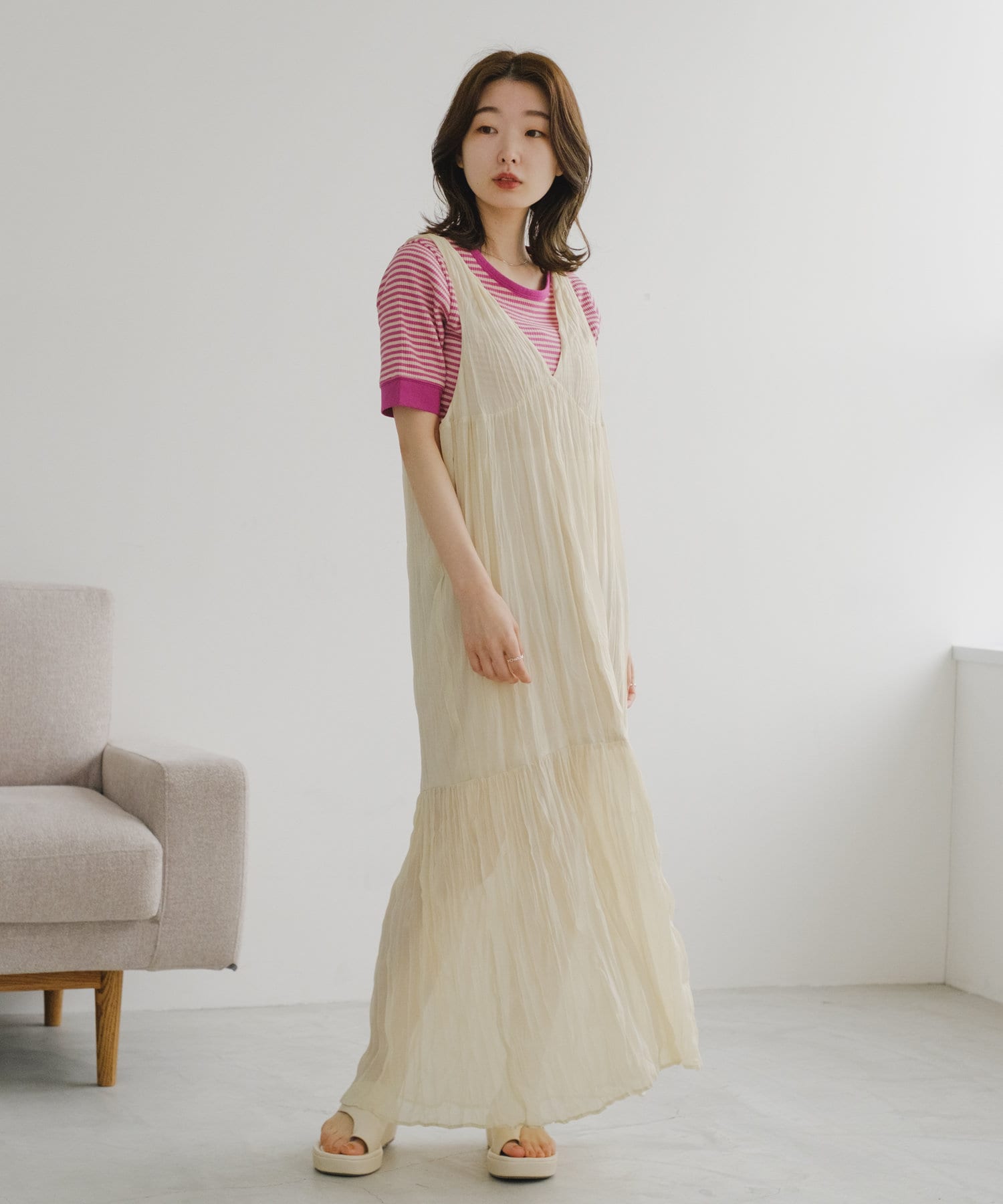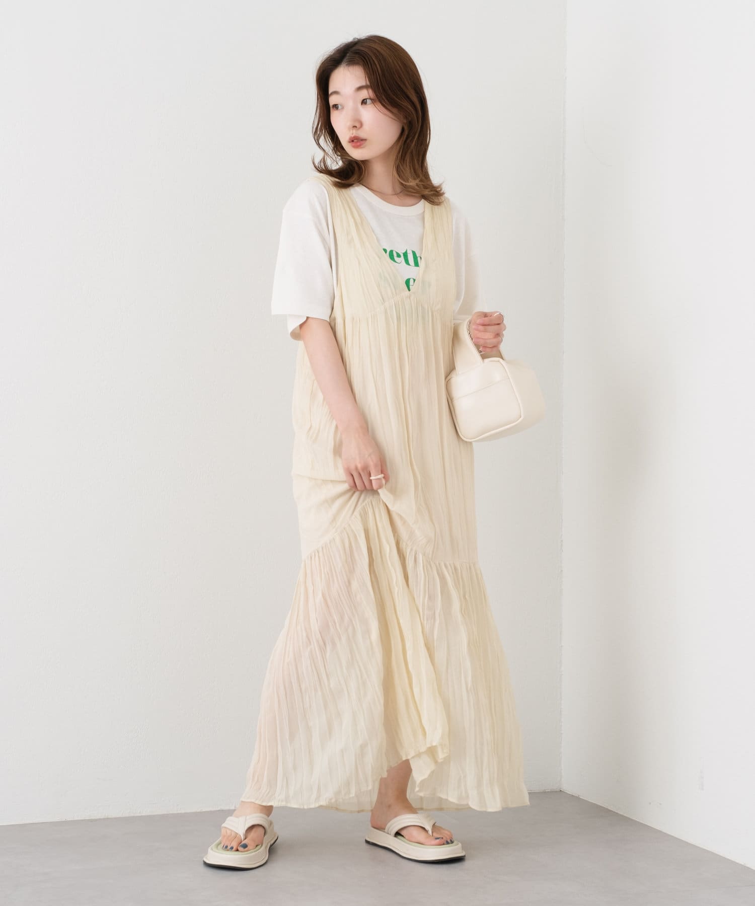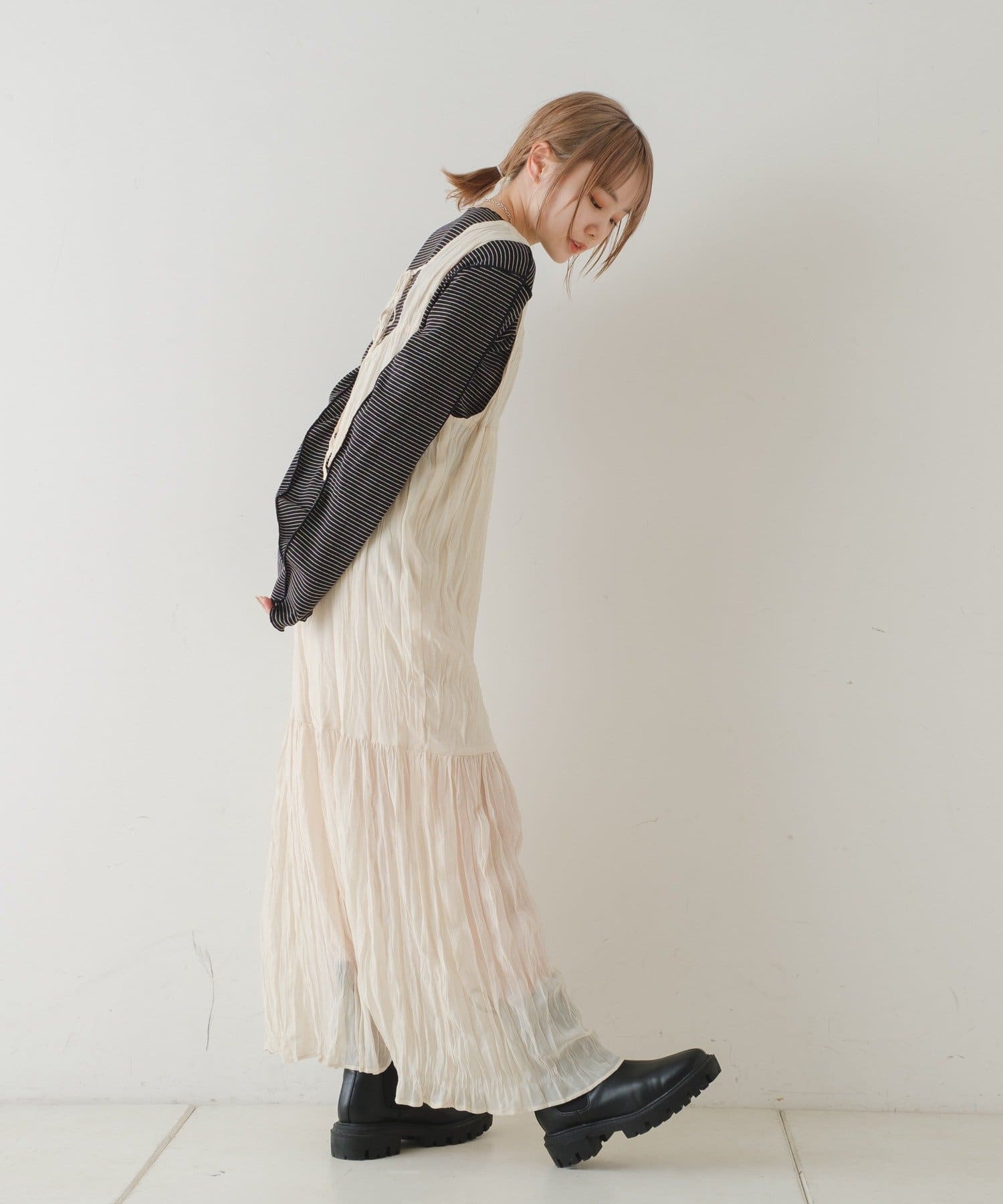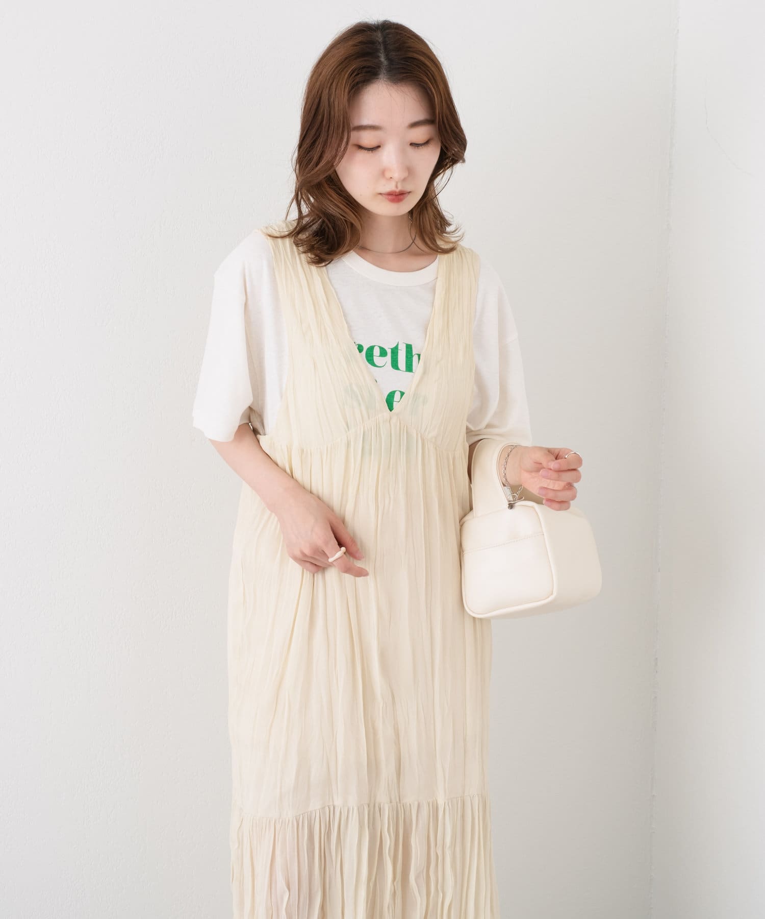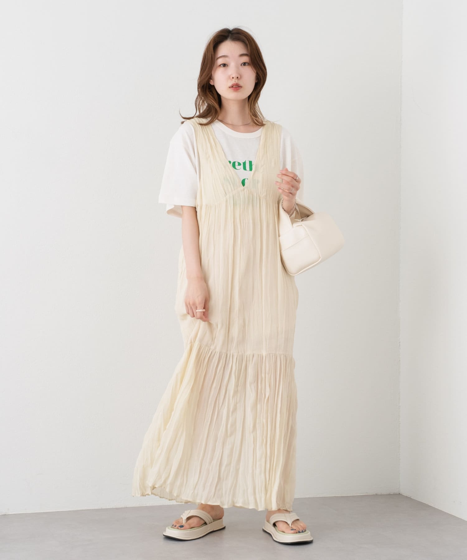 【WEB限定】ワッシャーシフォン無地ワンピース