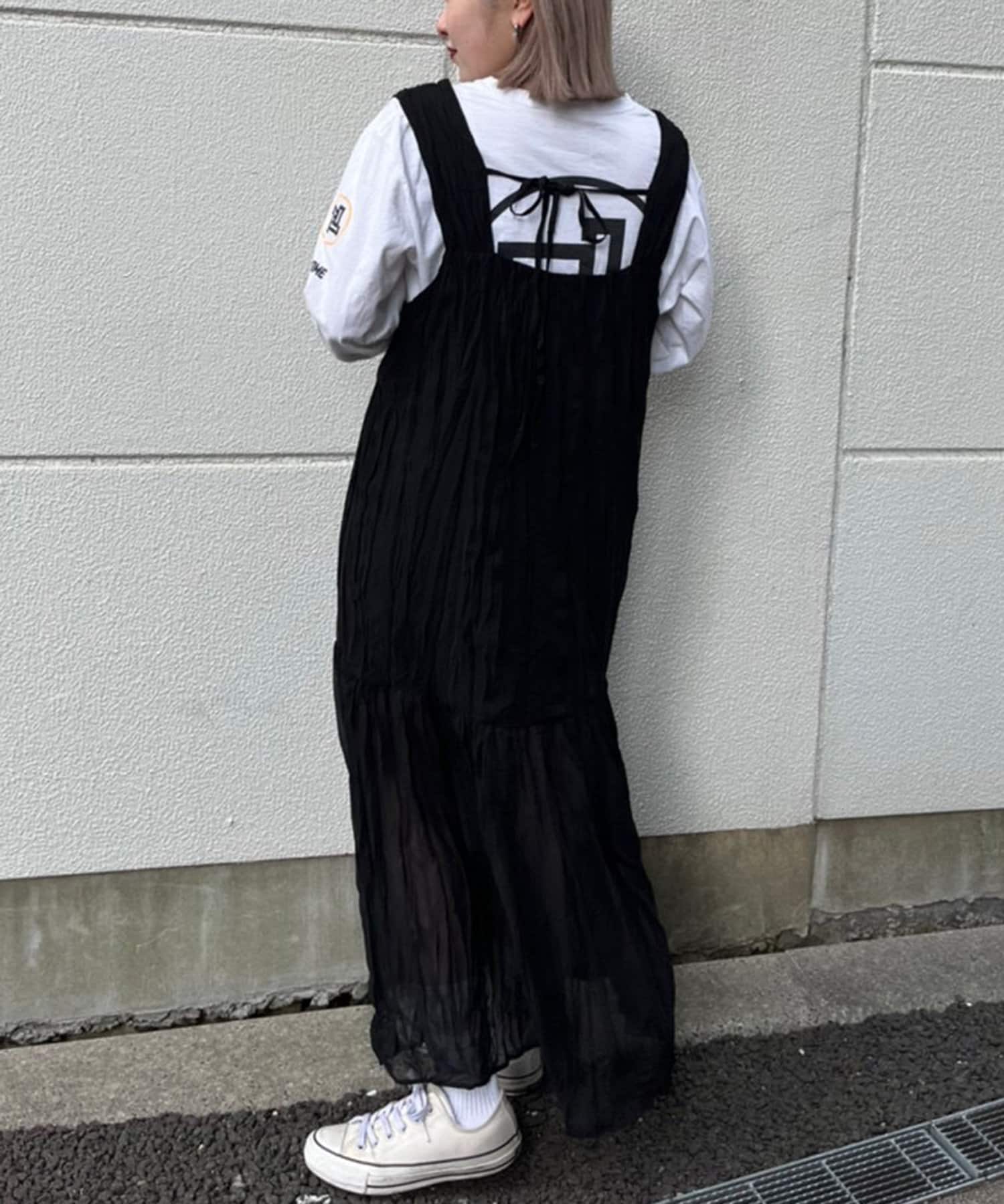 カジュアルスタイルを好む方や背中の露出が気になる方はTシャツ合わせも相性抜群なのでぜひお試しください。