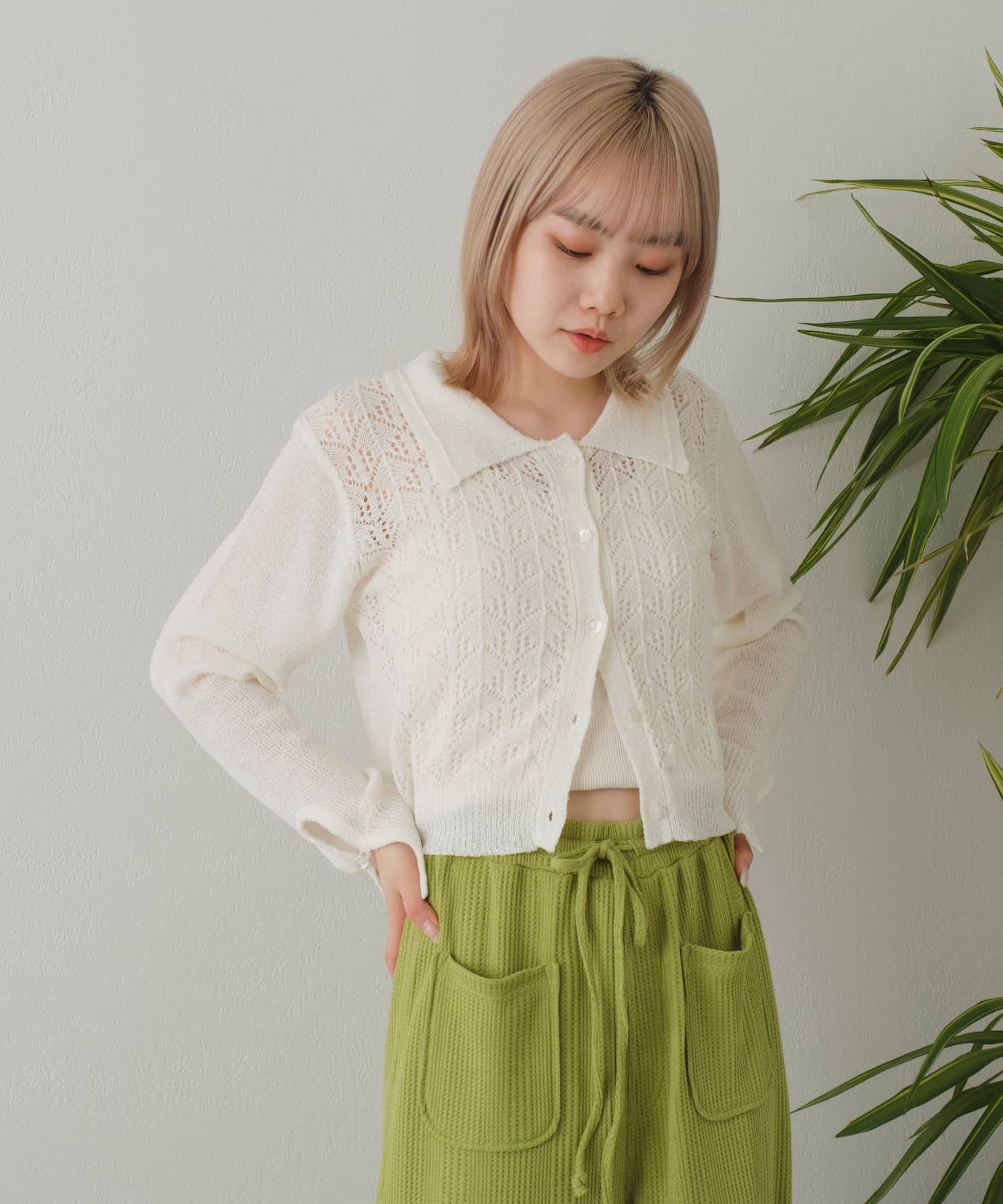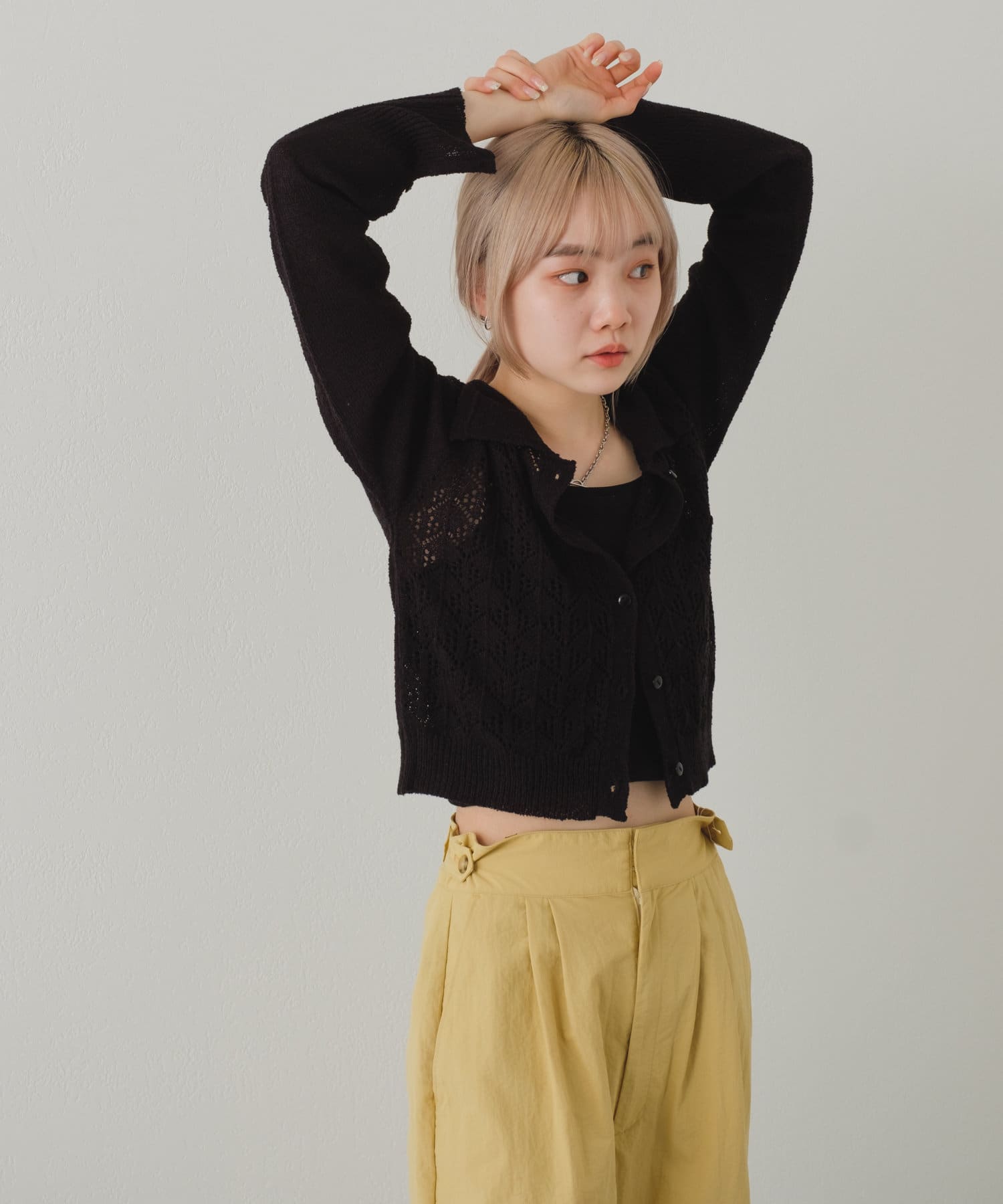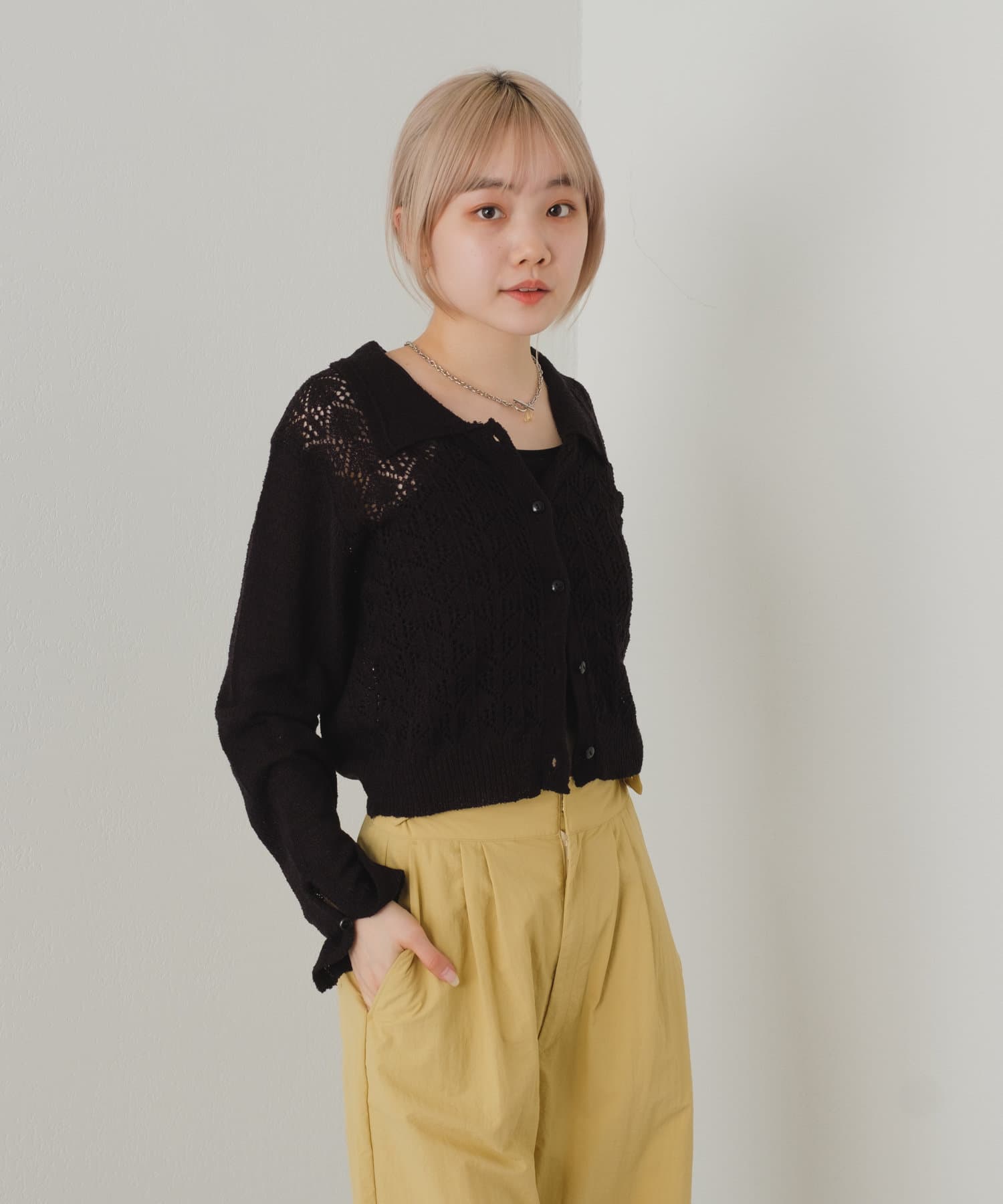 【22SSカタログ掲載アイテム】透かし編み襟付きカーディガン
