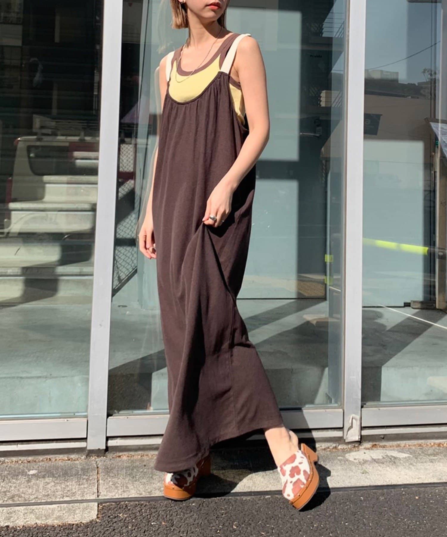 ワンピースのみの場合は、ロゴTでカジュアルに着て頂いたり、タンクトップでヘルシーに合わせるのもおすすめです。