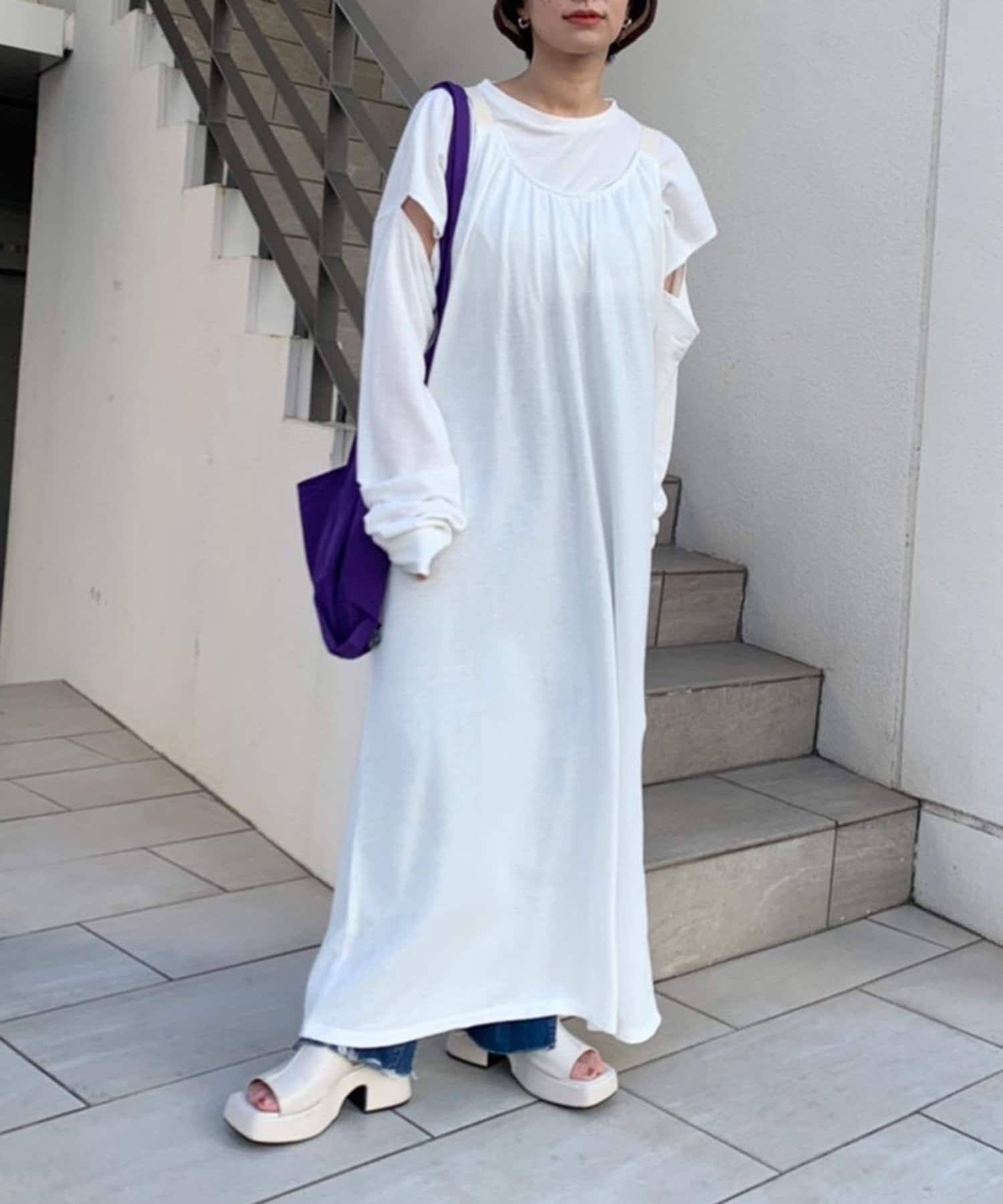 ロンTはワンピースのインナーとしても、上から被っても◎
